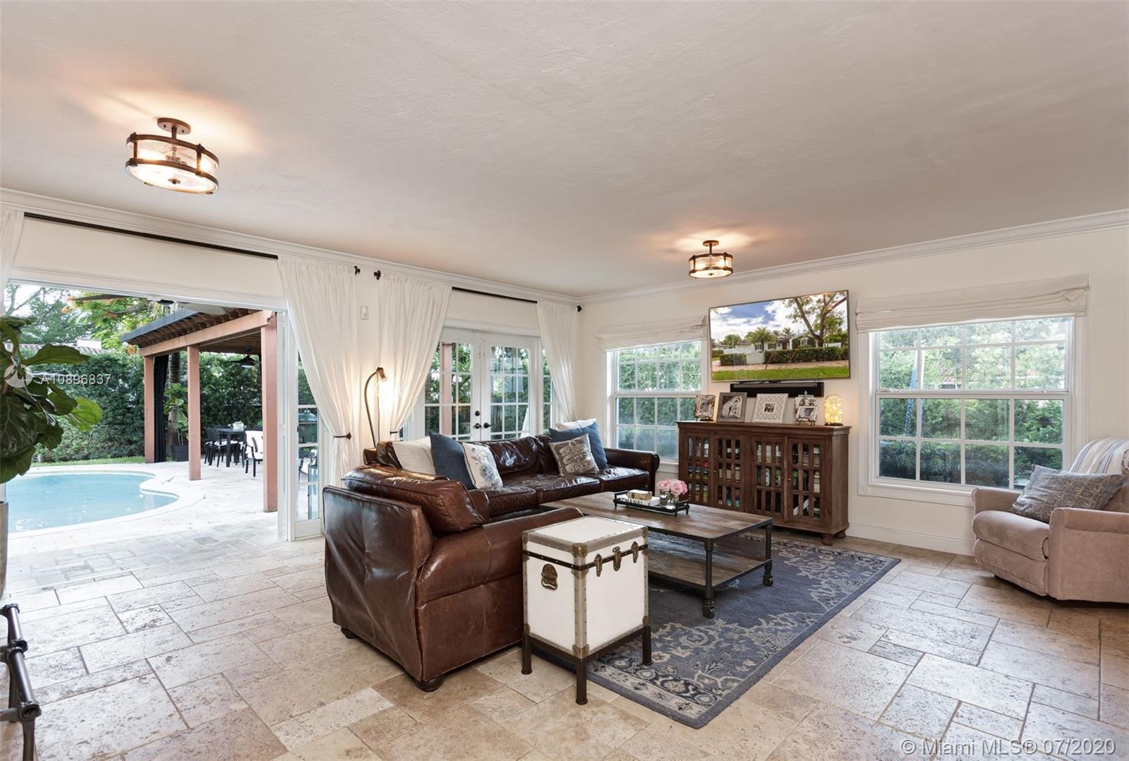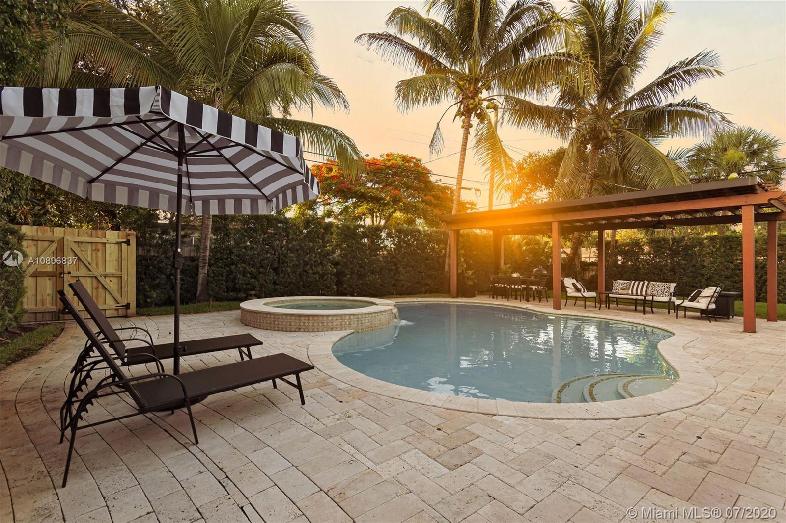 Step into luxury in this 3 bedroom, 2 bathroom + Office/Den home on a cul-de-sac in Miami Shores. Minutes from Miami Beach and the Design District, this home has been elegantly updated with designer finishes throughout. Enjoy open floor plan living in the spacious family room and oversized kitchen. Gourmet chefs will love the custom cabinetry, large island, Viking oven, wine fridge and convection microwave. The large master retreat includes a walk-in closet and bath with double sinks, claw-foot tub and shower. French doors lead to a tropical oasis with saltwater pool/Jacuzzi, covered pergola and sound system. Hall bath has custom tiles and Kallista fixtures. A new roof, impact windows, hardwood floors as well as Restoration Hardware lighting, window treatments and paint complete the home.