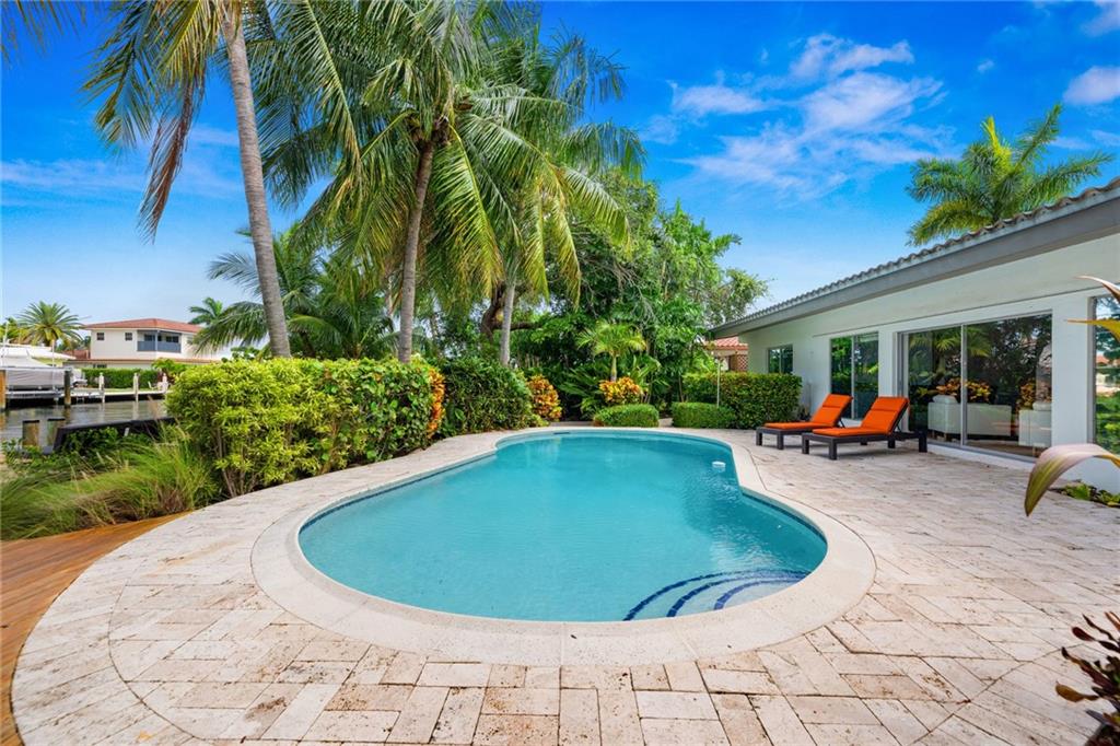 Please watch virtual tour! This waterfront home is the perfect retreat to live your luxury lifestyle in the popular Las Olas Isles! The open floor plan has vaulted ceilings in the living areas that make the home airy and bright. Additional features include a focal point fireplace in the living room, remodeled contemporary kitchen, updated bathrooms and a split floor plan. Overlooking the deep-water Rio Coral canal is the sunny backyard, a tropical oasis with heated swimming pool flanked by palm trees. The Intracoastal Waterway, only 3 houses away, and the nearby ocean inlet provide easy access from the 75 foot dock. Shopping, dining and more on Fort Lauderdale Beach and Las Olas Blvd are within walking distance.