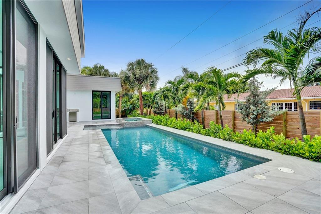 NEW CONSTRUCTION, JUST COMPLETED, two story pool home in Old Coral Ridge. 5,169 sf under roof. Open floor plan with Family/Living/Dining/Kitchen having views and access to the saltwater pool/spa, patio & BBQ areas. 5 Bed+loft/5 1/2 Bath & 3 car garage. Chef's kitchen with imported cabinetry and quartz countertops. Appliances include Wolf range and Sub-Zero refrigerator. Fabulous ground floor master suite with two walk-in closets. Generator & car charger ready. One of four new homes being built in east Ft. Lauderdale by PMG Construction.