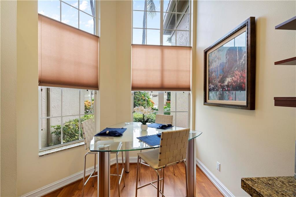 2/2 Townhouse in prestigious Boca Golf Club. Ground floor, NO STAIRS, open floor plan with laminate flooring throughout w/14 ft ceilings. Eat-in kitchen w bay window overlooking serene garden. Cherry wood cabinets with accent lighting, 2" granite counter tops/ back splash and S/S appliances. Large family room has custom built-in Entertainment center. Glass doors across entire back of room opens to a brick patio and large, private courtyard. Glass doors to the right open to a spacious screened patio connecting to owners suite with custom closets. Updated baths feature Expresso cabinetry, granite counter tops, & 18x18 ceramic tile. Guest bedroom converts to den/ office with a cherry wood Murphy Bed. Whirlpool Duet W/D & granite top in Laundry room. Pet friendly. Pool nearby, 24-hr gate.