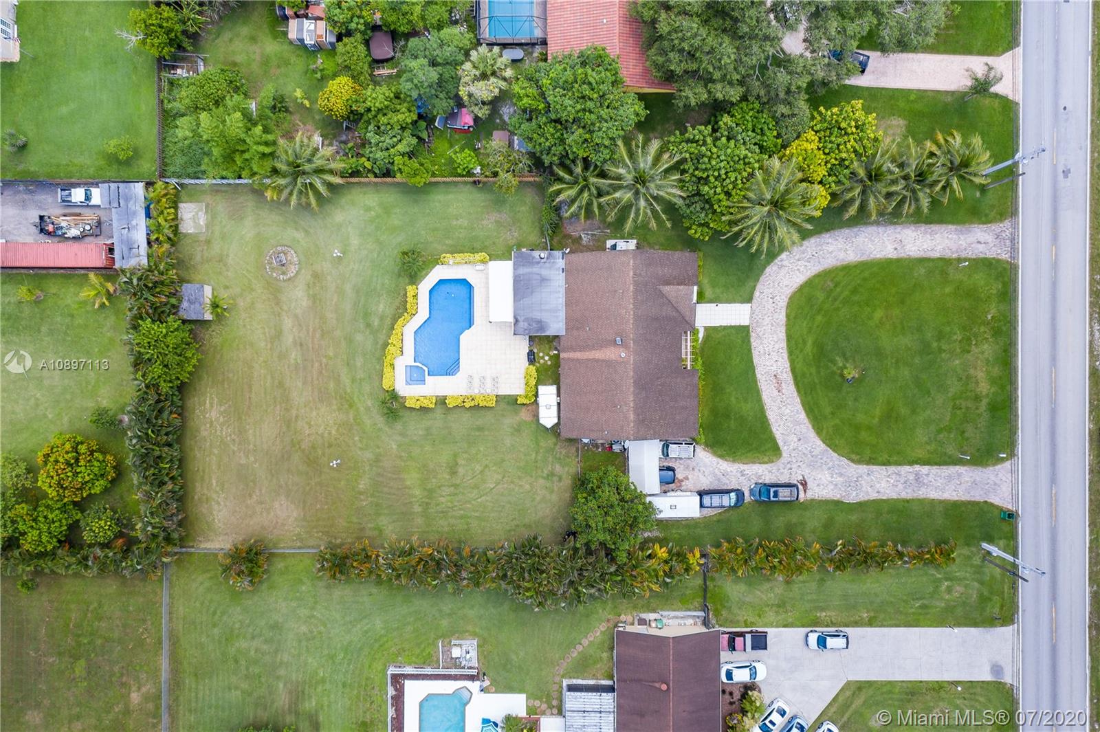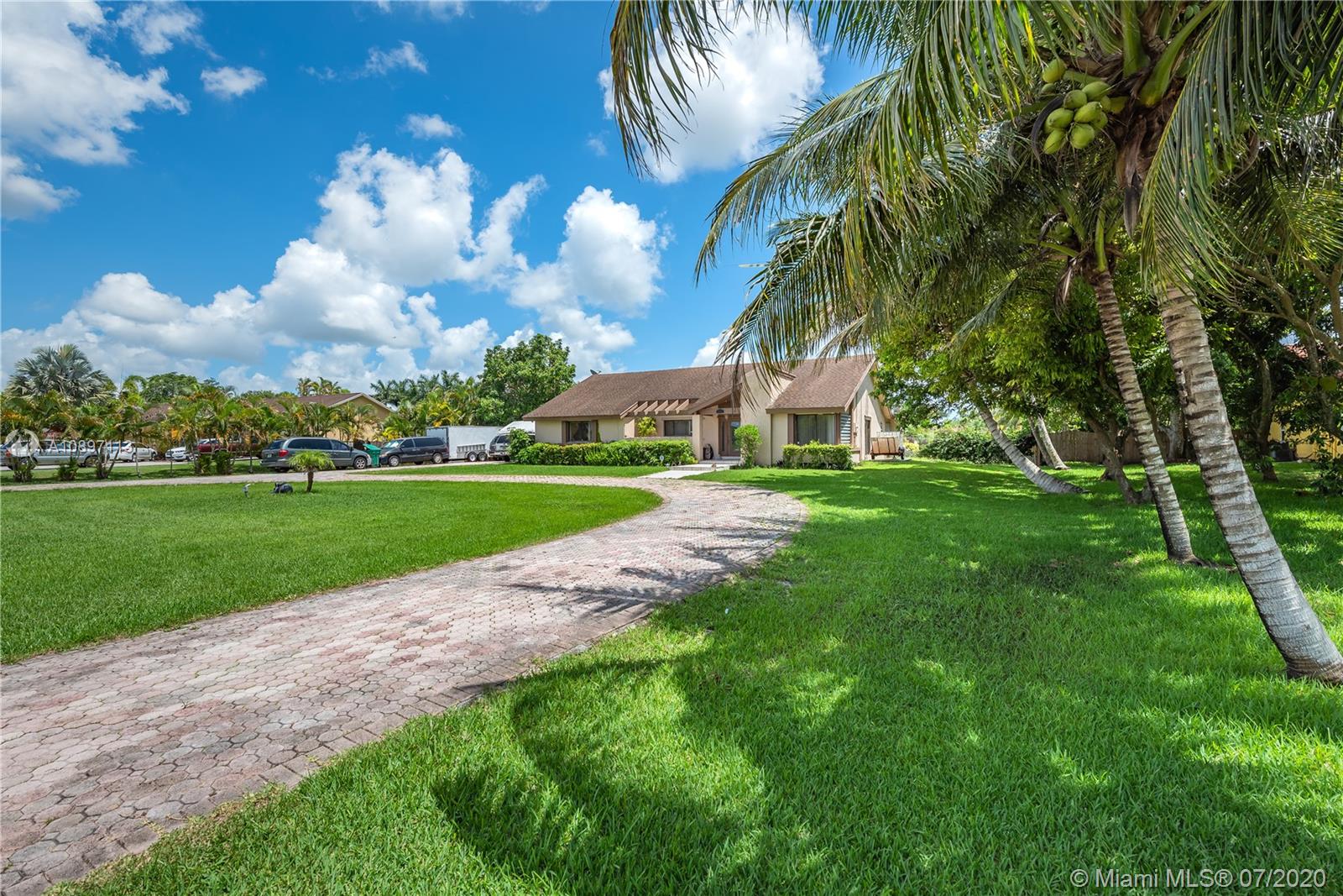 Great house with plenty of land for a homeowner that enjoy outdoor living. Home is sitting on a builder's acre boasting a tranquil pool with lush green everywhere with spacious areas for entertaining. Open and bright living and dining area with high ceilings. 3bed/2bath + an additional room from converted garage. Ceramic tile throughout living areas. New stainless steel appliances and granite kitchen counters tops. New A/C. Large circular drive way with plenty of room for lots of cars. Deep well. New pool pump. Hurricane shutters. Extra insulation. Prime Davie location. No HOA. A rated schools. Just need your personal touch to be an amazing place to call home!!!