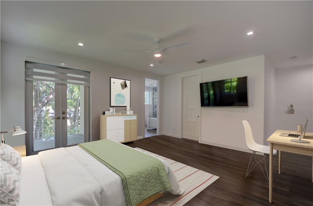 Stunning, modern Smart Home with impeccable finishes! All bedrooms are en-suite w/walk in closets & 2 have private balconies. Lg landing at the top of the stairs - perfect for an office or sitting area. Features include: custom blinds, impact windows, porcelain & wood flooring, 2 a/c units with linear diffusers, solid core doors, contemporary floating staircase, 2 car garage, built in bar area and Lutron LED lighting. The kitchen features quartz counter tops, custom quality cabinets, Jenn-Air appl & a cooking island w/counter seating. Enjoy the outdoors w/ a large covered patio, private splash pool w/waterfall & lush landscaping. Great location w/expansive views of Holiday Park, close to shopping, restaurants, beach & the airport. An amazing home to call your own!