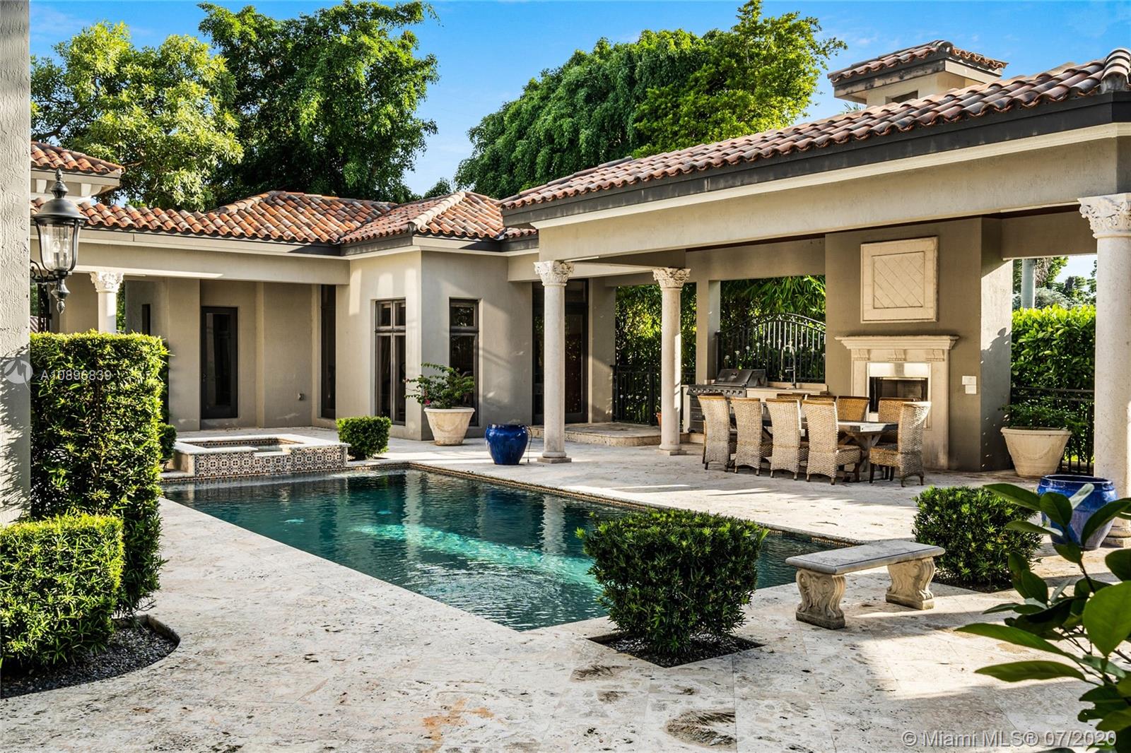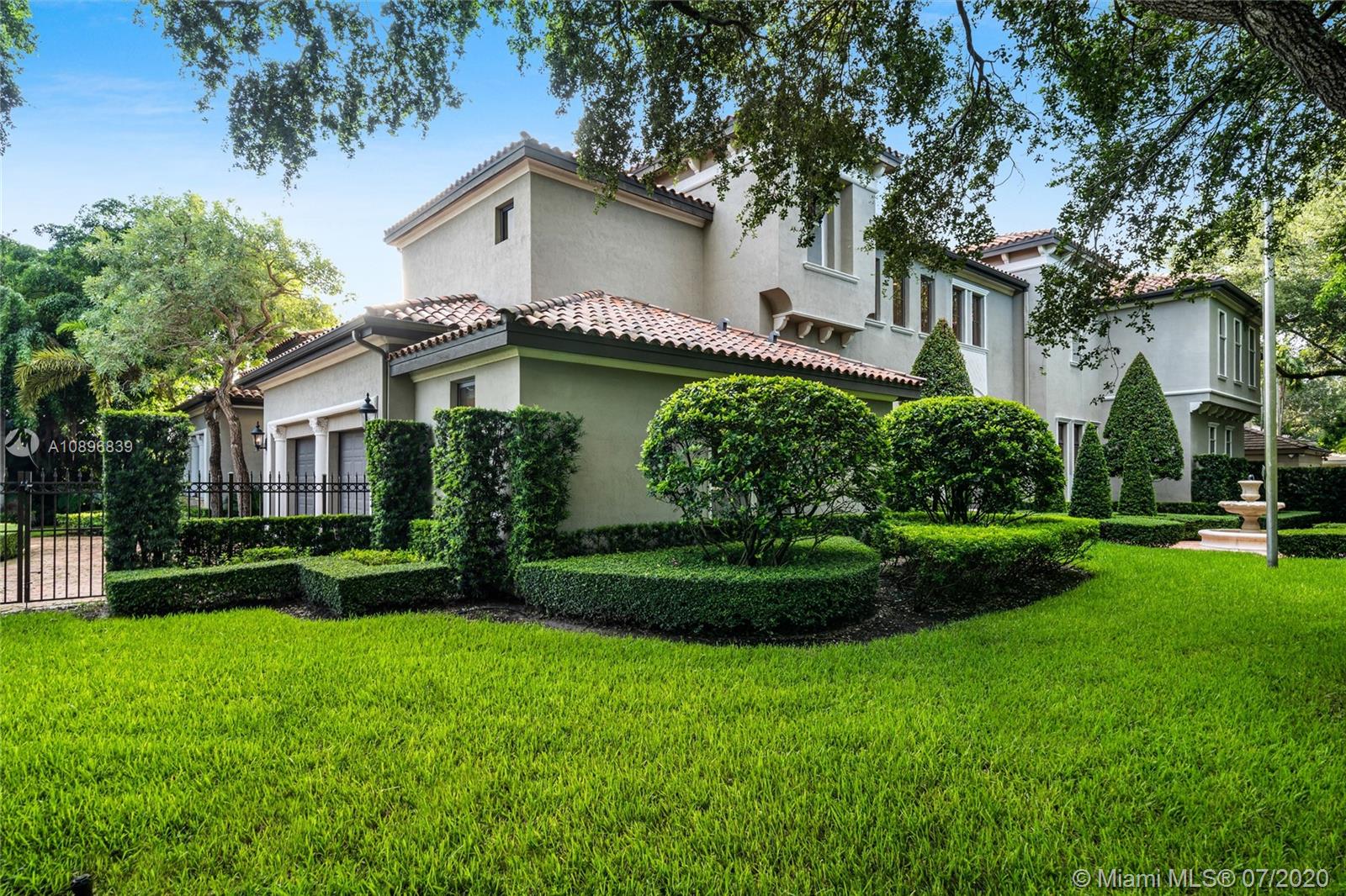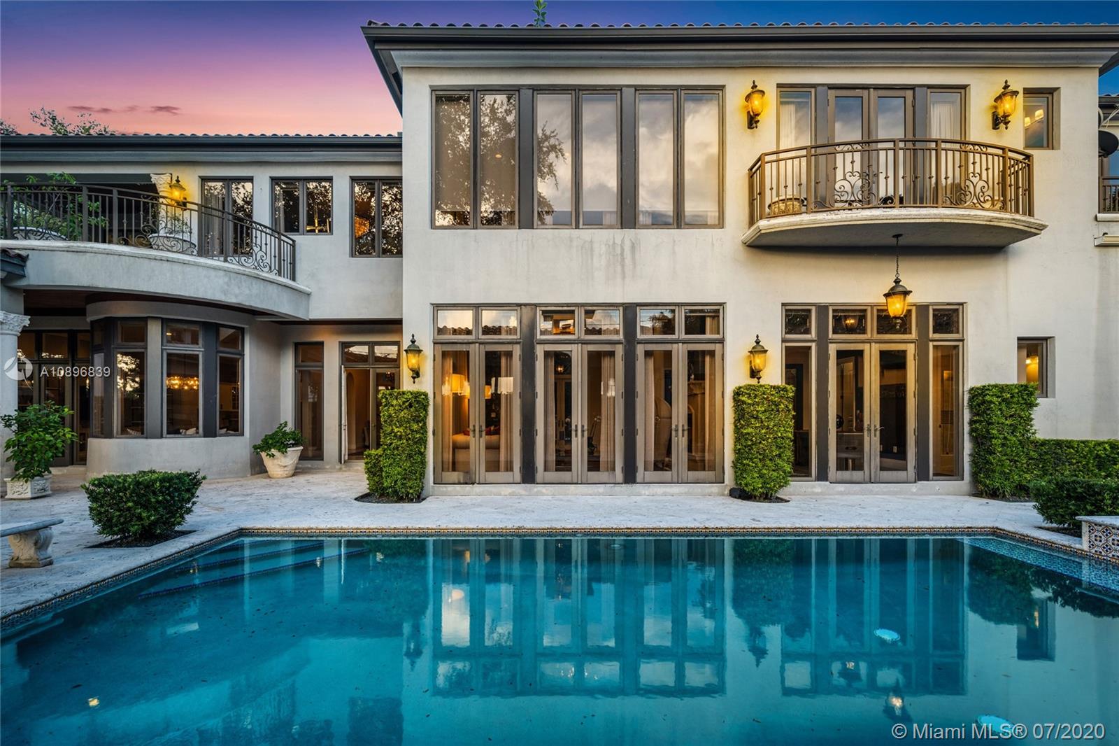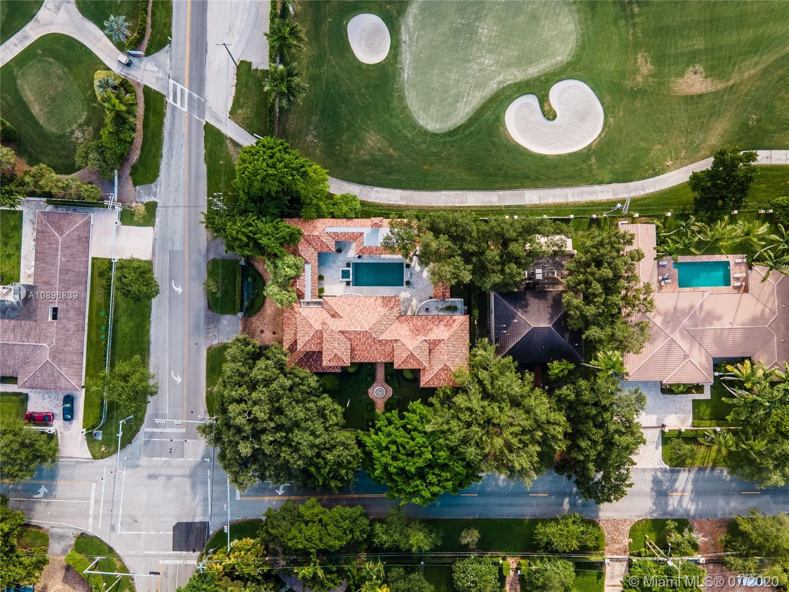 Built in 2008 and designed by Architect Thomas Benedict, this charming Estate Home is located in the heart of the Gables set directly in front of the 5th hole of the Riviera Golf Course. With more than 5,800SF of living space this home has 6 bedrooms, 6.5 bathrooms, formal dining with adjacent wine cellar, fireplace, elevator, eat-in gourmet kitchen with family room, high ceilings, upstairs sitting area, surround sound system and more. Enjoy a private outdoor oasis with a covered patio surrounding the heated pool and spa, Summer kitchen with outdoor fireplace and a separate 1 bedroom, 1 bathroom pool house all overlooking the Riviera Golf Course.