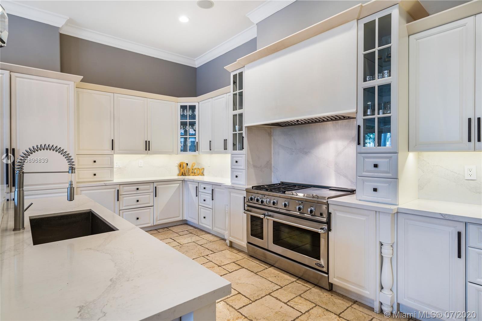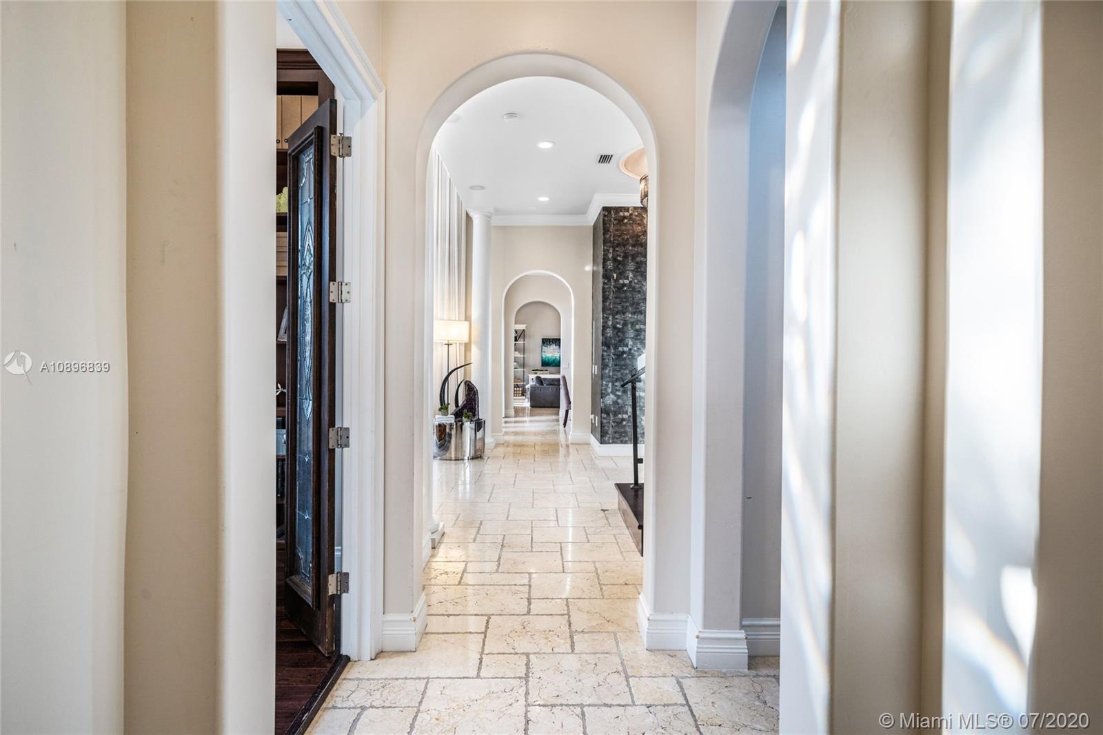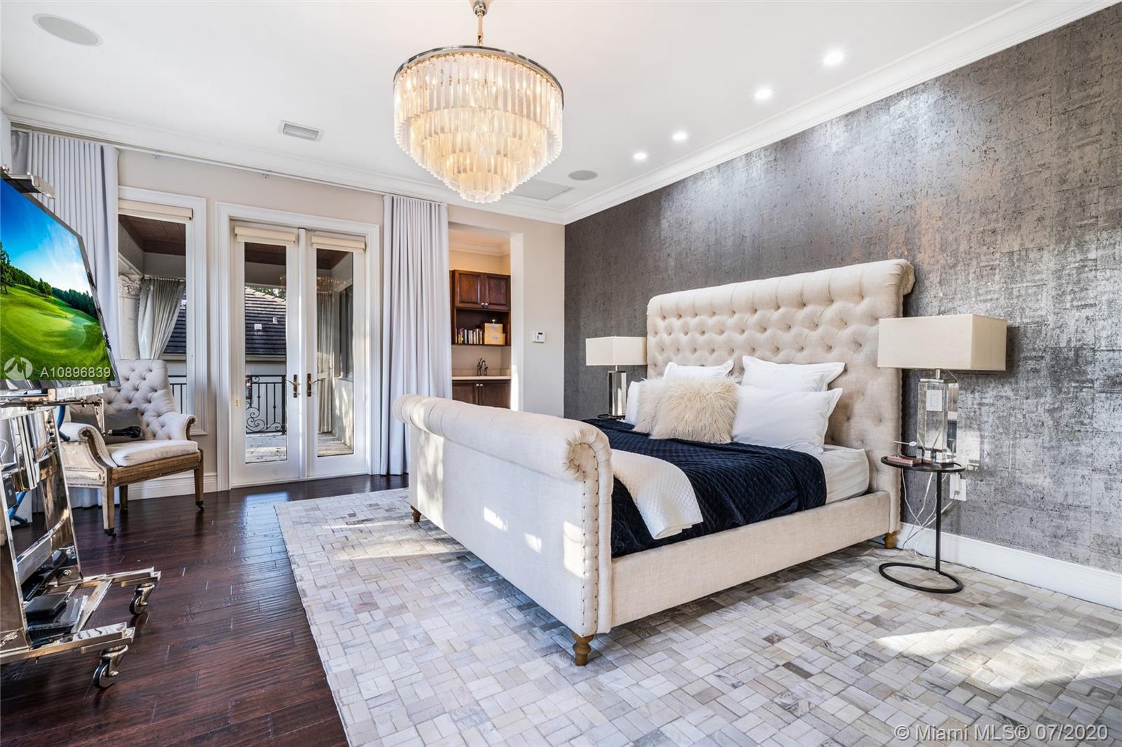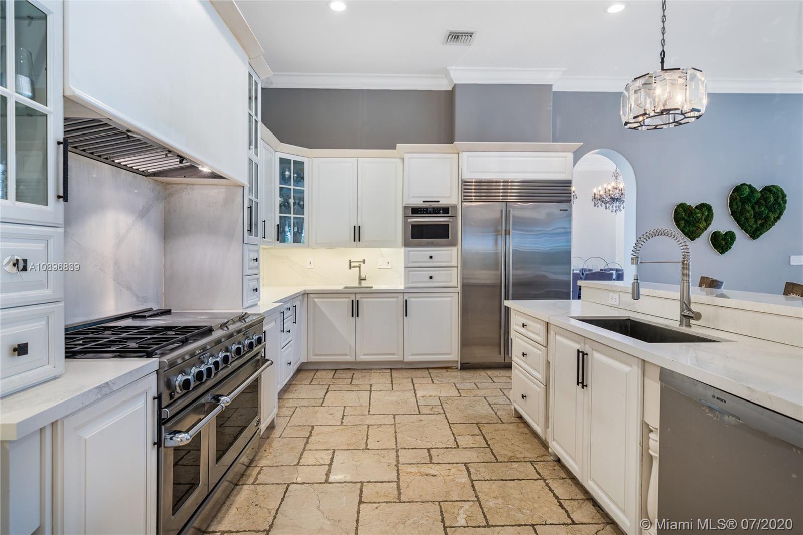 Built in 2008 and designed by Architect Thomas Benedict, this charming Estate Home is located in the heart of the Gables set directly in front of the 5th hole of the Riviera Golf Course. With more than 5,800SF of living space this home has 6 bedrooms, 6.5 bathrooms, formal dining with adjacent wine cellar, fireplace, elevator, eat-in gourmet kitchen with family room, high ceilings, upstairs sitting area, surround sound system and more. Enjoy a private outdoor oasis with a covered patio surrounding the heated pool and spa, Summer kitchen with outdoor fireplace and a separate 1 bedroom, 1 bathroom pool house all overlooking the Riviera Golf Course.