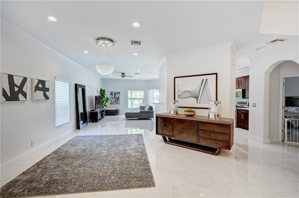 Wait until you see this stunning 3 bedroom, 2 bath home in Parkland Isles on water!!! From the moment you walk in the door you will be amazed at how open & bright this home is! Interior features include Rectified Porcelain Tile throughout - no carpet, quartz counter tops, stainless steel appliances, crown moldings, custom closets, updated bathrooms plus many more upgrades. Entertain in style or relax on the extended patio with tranquil water view. This lovely home is located in a gated community with 24 hr manned guard gate, heated community pool & spa, tennis, clubhouse, and much more.