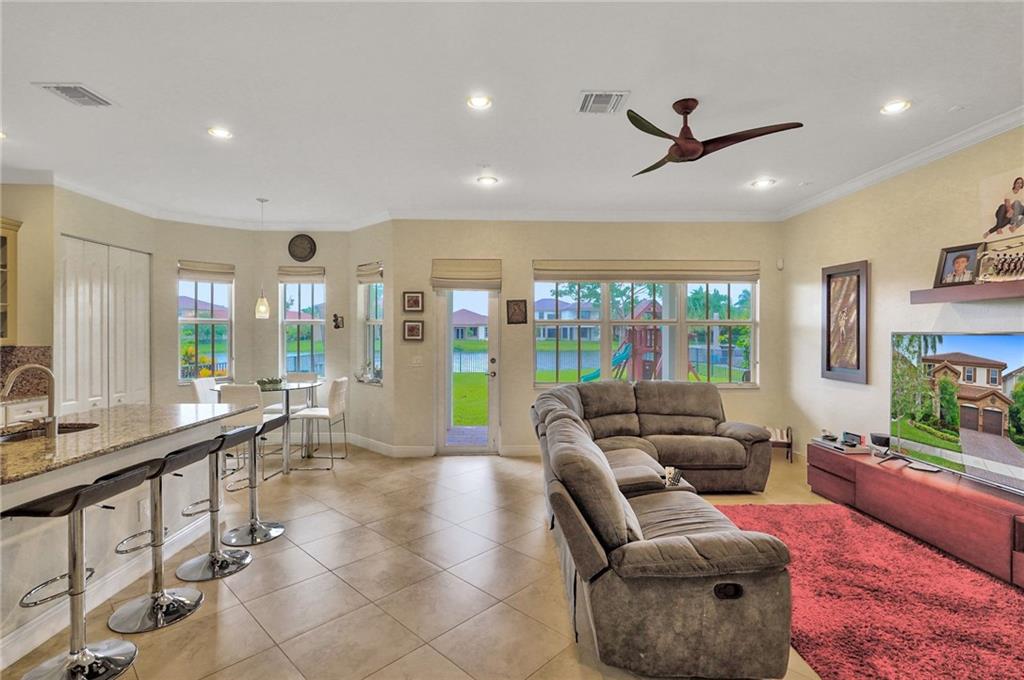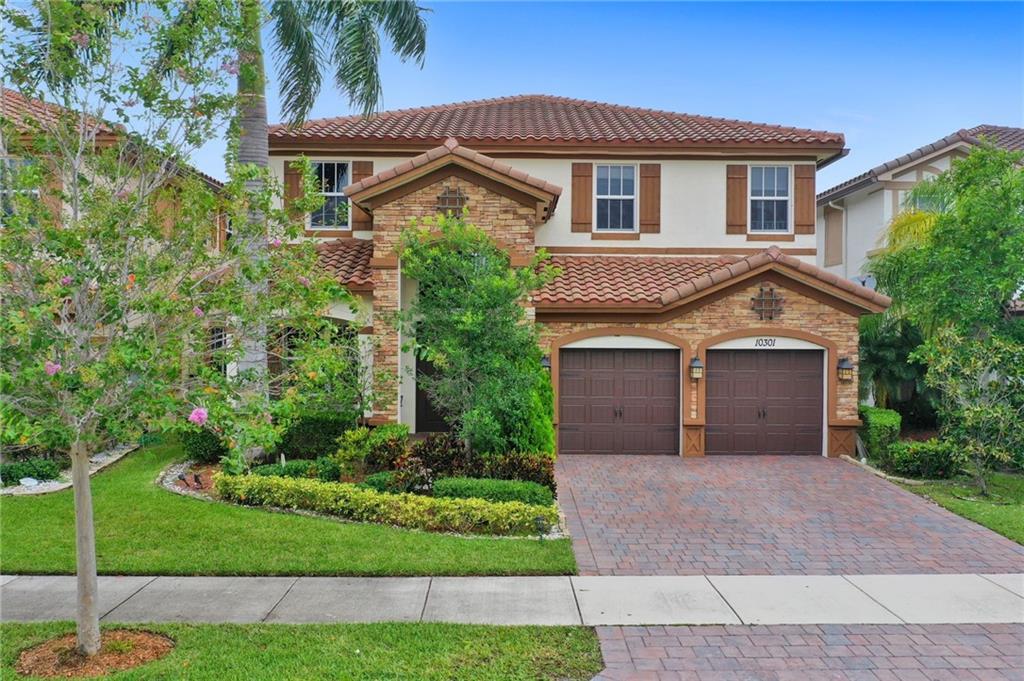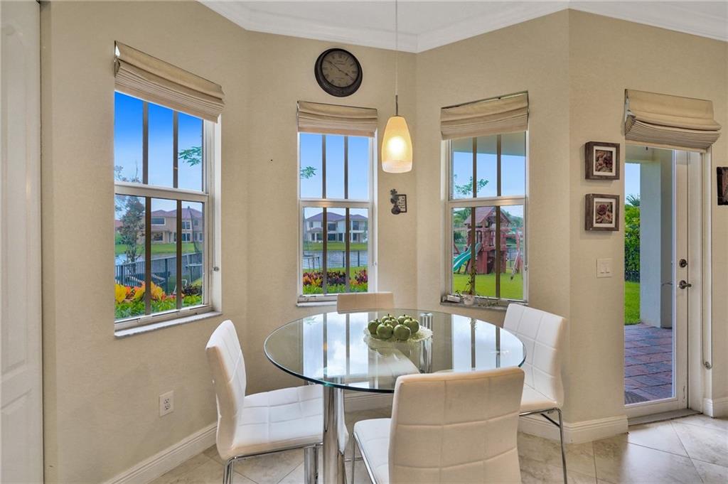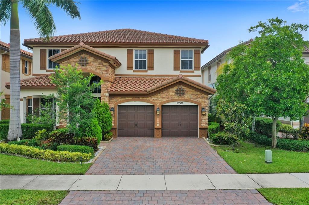 Beautiful lake view, extra large fenced yard. Simply Stunning Summit model 5 Bedrooms 4 full baths and bedroom on the first floor in beautiful MiraLago, Impact windows and doors, gas cooking , white kitchen, no carpet, molding,, neutral 20" diagonal tiles, custom closets.Larger lot, fully fenced, with great sunsets and grassy area. Amazing gated community with resort-style amenities including gym, tennis, basketball, billiards room, tot lots, kids water park and amazing party and ballroom. A+schools. Better than new with no builder fees.