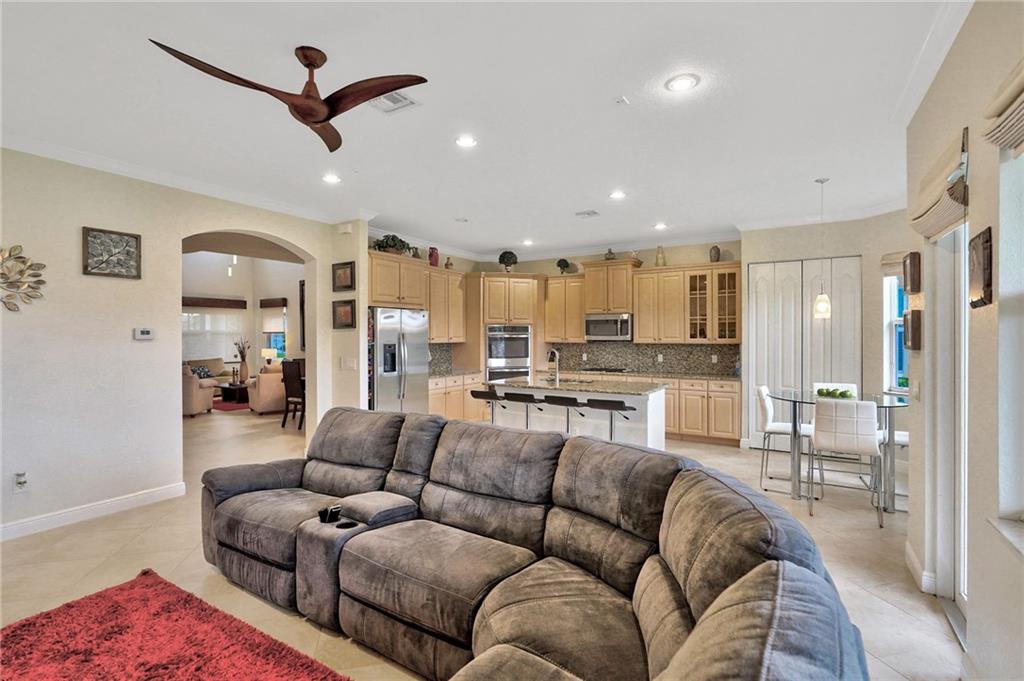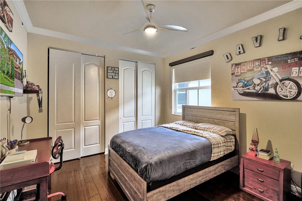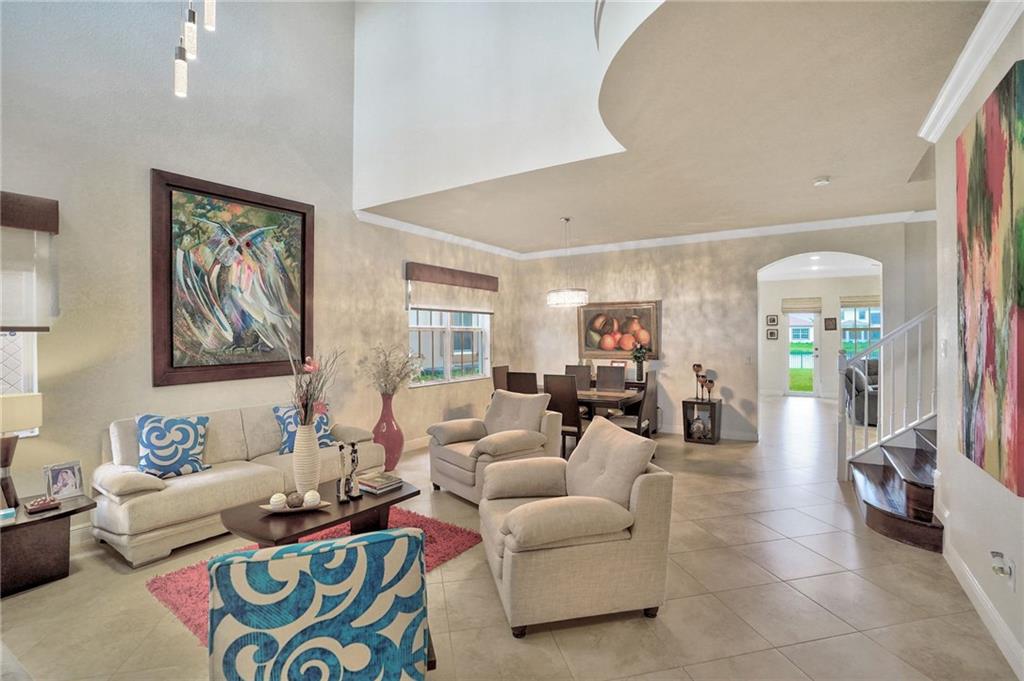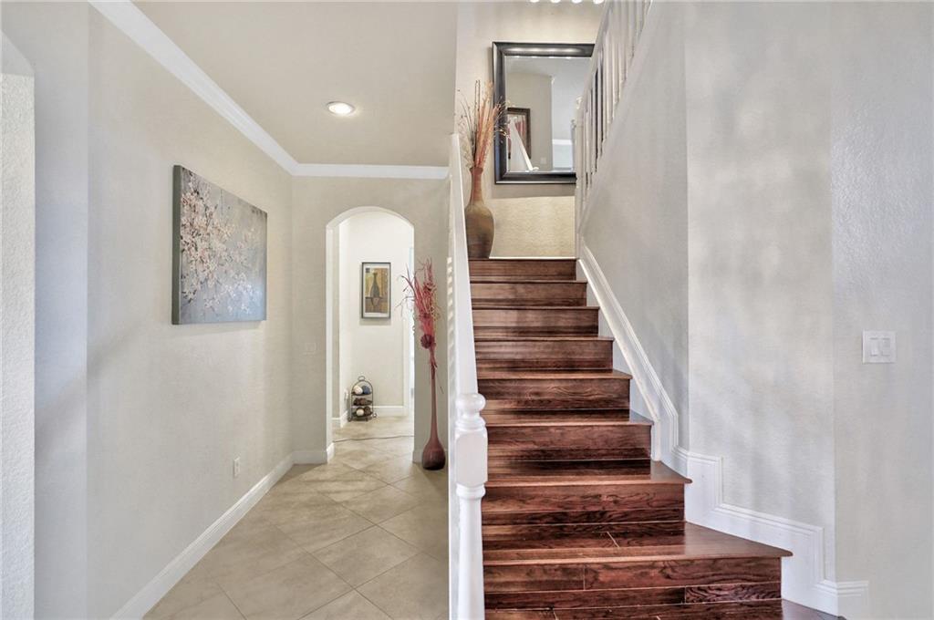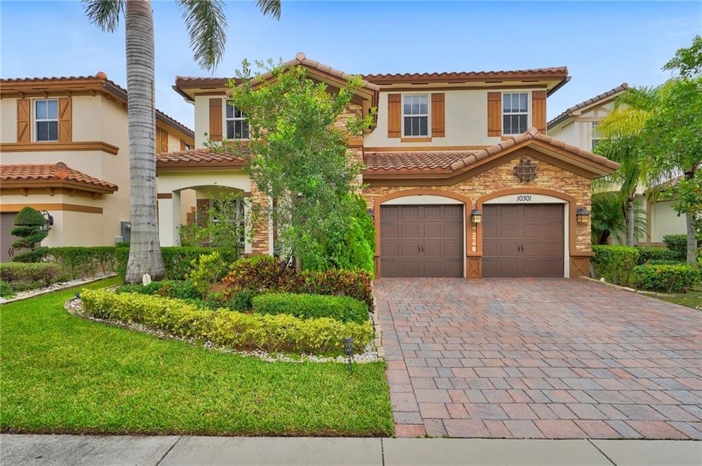 Beautiful lake view, extra large fenced yard. Simply Stunning Summit model 5 Bedrooms 4 full baths and bedroom on the first floor in beautiful MiraLago, Impact windows and doors, gas cooking , white kitchen, no carpet, molding,, neutral 20" diagonal tiles, custom closets.Larger lot, fully fenced, with great sunsets and grassy area. Amazing gated community with resort-style amenities including gym, tennis, basketball, billiards room, tot lots, kids water park and amazing party and ballroom. A+schools. Better than new with no builder fees.