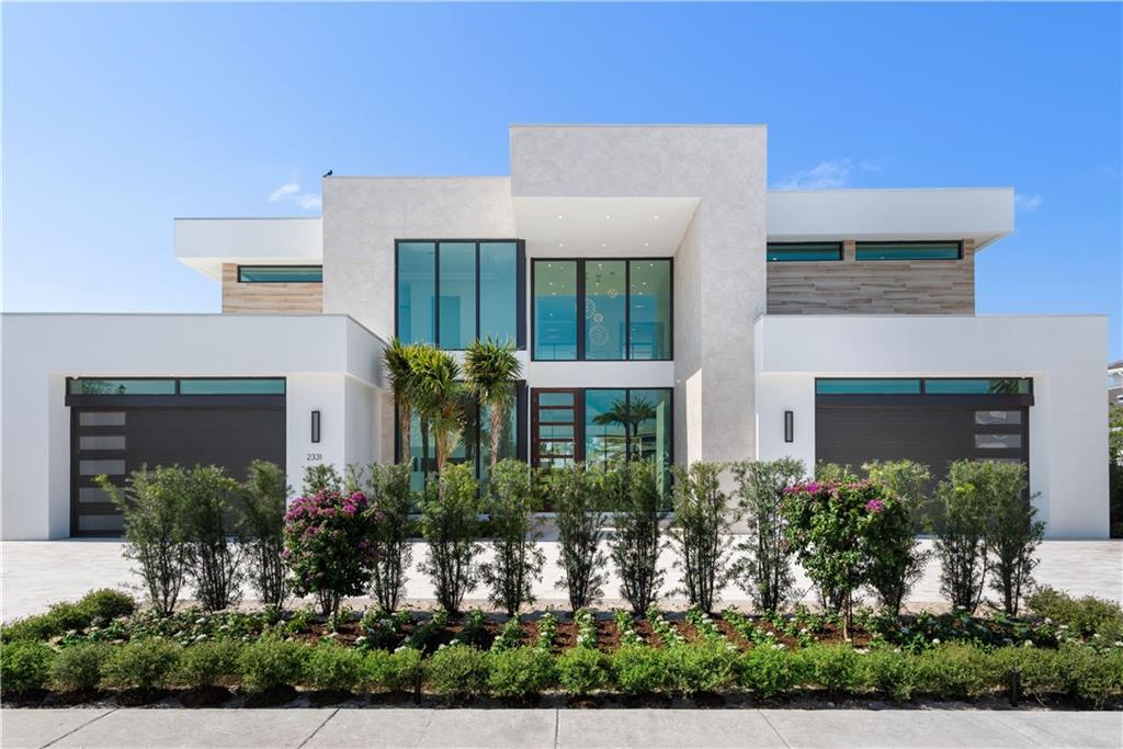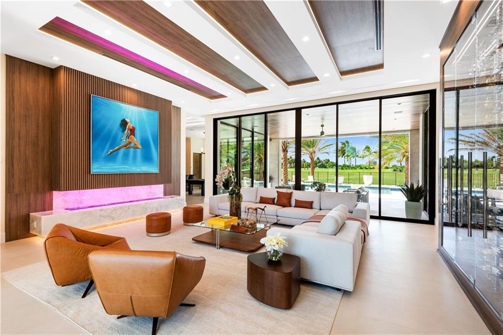 This newly built, modern two-story custom-designed residence is 6,735 sqft of luxurious living space featuring 5 bedrooms, 6.5 baths, an office, club room, elevator & a split 4-car garage. Enjoy sweeping views of rolling fairways on the golf course from most every room including the covered verandas - each is over 900 sqft., 64' salt-water heated pool including spa, and chef's outdoor kitchen. The grand glass foyer invites you into an open floorplan with soaring 12' ceilings & rich interior finishes for those who demand the best. The upstairs living area, off the lavish owner's suite provides serene views. Located in the exclusive guard-gated community of only 36 lots, The Enclave at Coral Ridge Country Club, this estate will offer room to entertain & enjoy the South Florida Lifestyle.