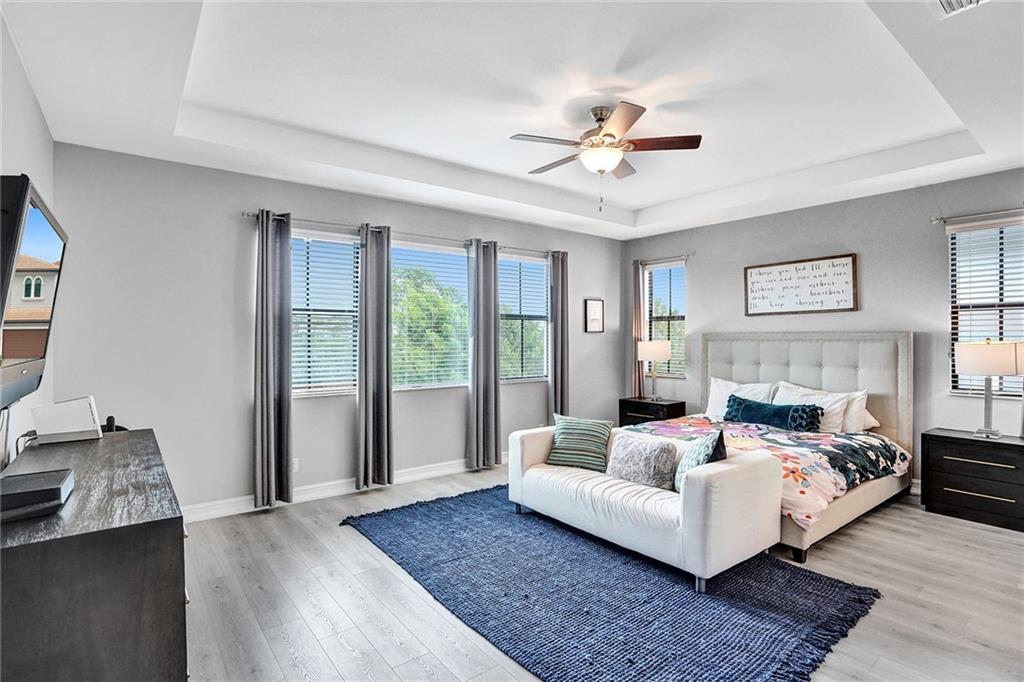 This amazing, like new Watercrest home has it all! Wilmington expanded model home features over 5 beds, 4.5 baths, loft, plank wood tile flooring up and down, spacious first floor junior suite bedroom w/ bath, heated pool & spa w/salt system, private & fenced yard, 3 car tandem garage, custom closets, impact glass & doors. Upgraded white kitchen includes: Quartz counters, over-sized island, gas stove, double ovens, custom pantry closets, lots of storage, designer marble back splash. Community has a fabulous resort style clubhouse, a five star community pool, 24/7 guard gate, low HOA, lawn care included, kids water & spray park, tennis, basketball, party rooms, cabana & bbq area at clubhouse, professional gym, near A+ schools & parks. Sq footage per county tax records. Meticulous home!