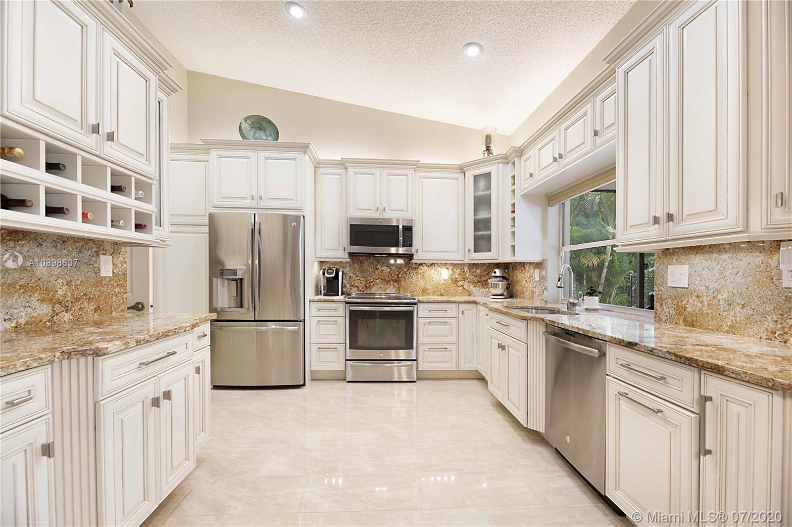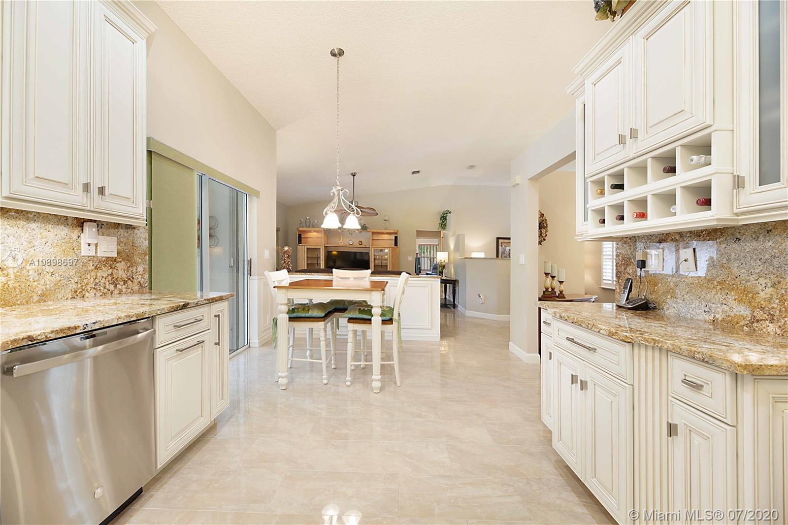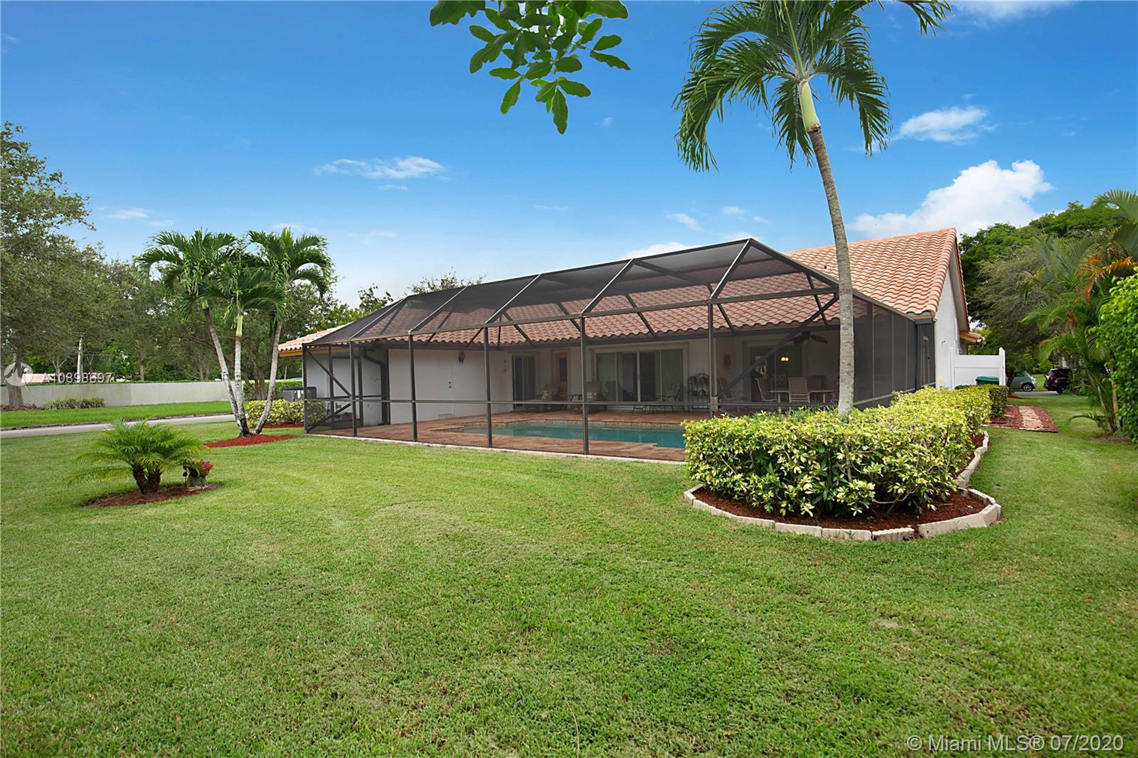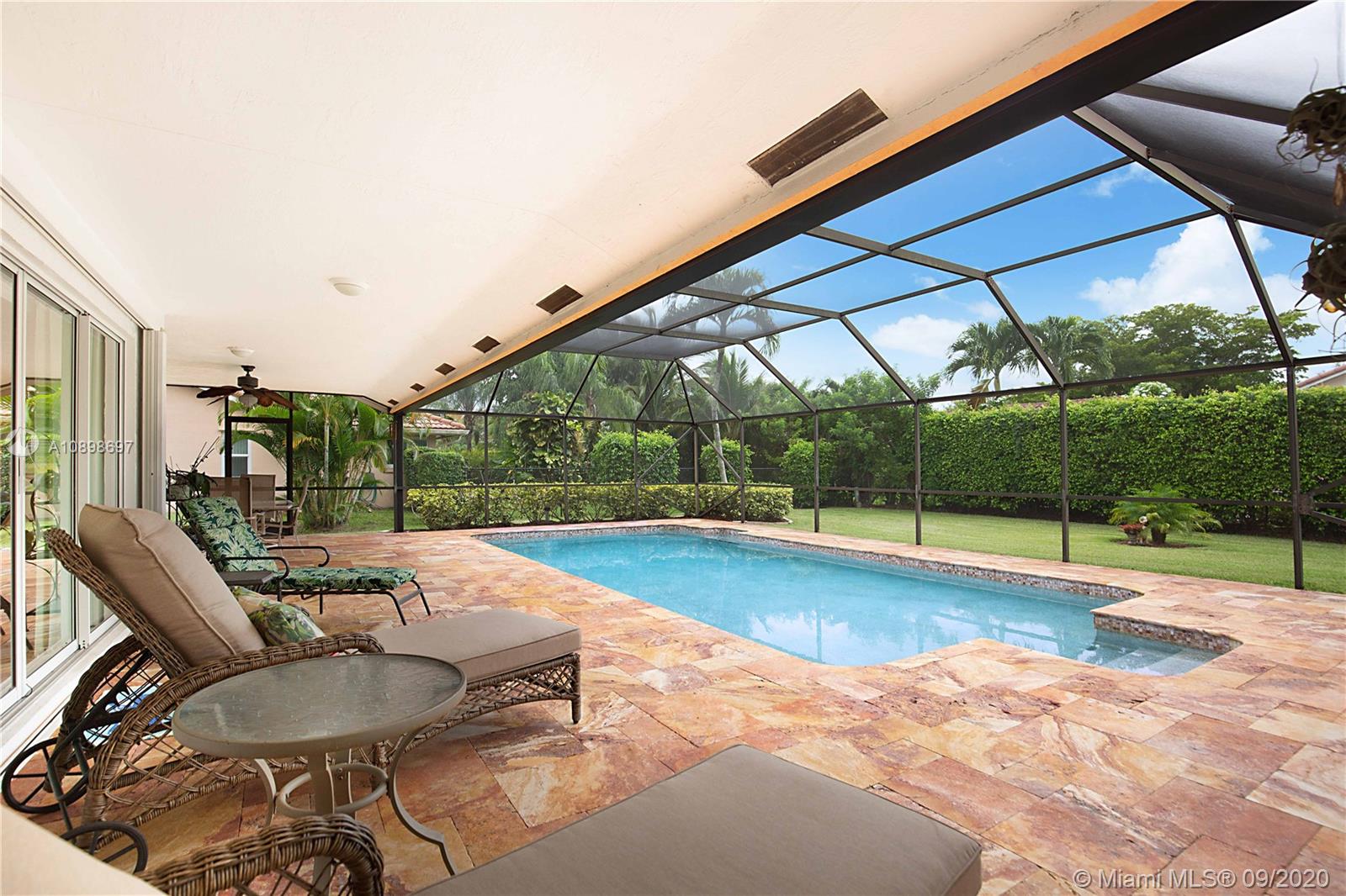 Exquisite 4/2 pool home in the highly desired community of Brookside Court. This home is situated on an expansive corner lot. The stunning travertine driveway leads you towards your double door entry. As you enter you're greeted by vaulted ceilings, natural light & flowing floor plan that is great for entertaining. Impeccable Quality Thomasville Kitchen w/ built-in pantry & wine rack, soft close, spice rack & garbage can pull outs, granite countertops & newer stainless appliances. Vaulted Ceilings. Custom window treatments & plantation shutters. Master suite features dual walk-in closets & stunning en-suite bath w/ soaking tub, dual sinks & large walk-in shower. Perfectly planned for your pool access w/ 2 cabana baths. Roof 2011. AC 2014. Hurricane Shutters & much more!Video Tour is avail.