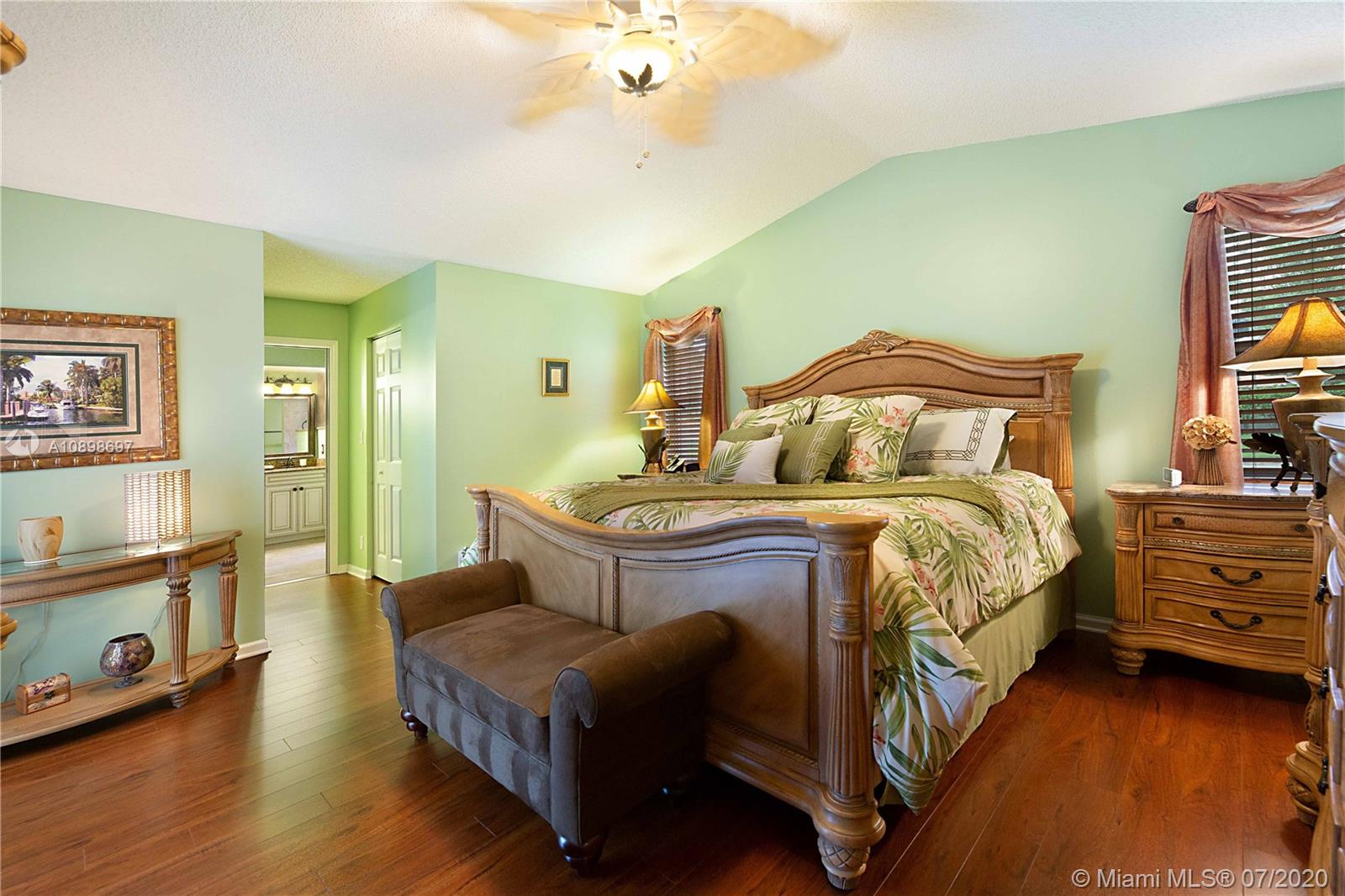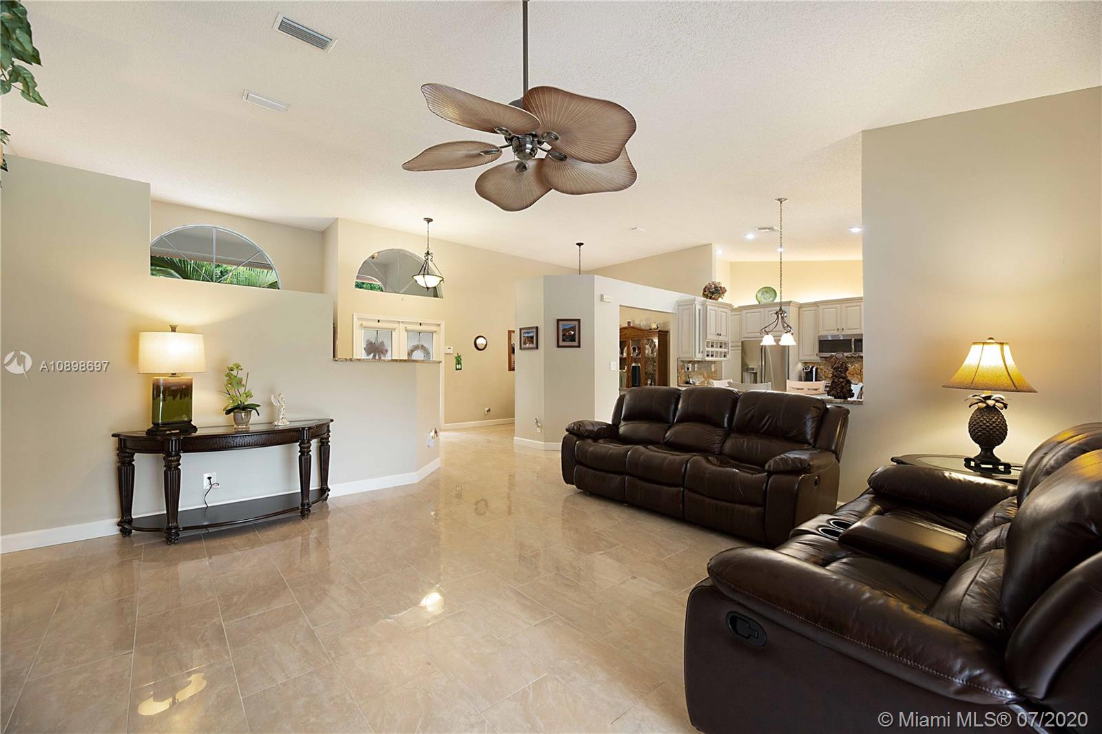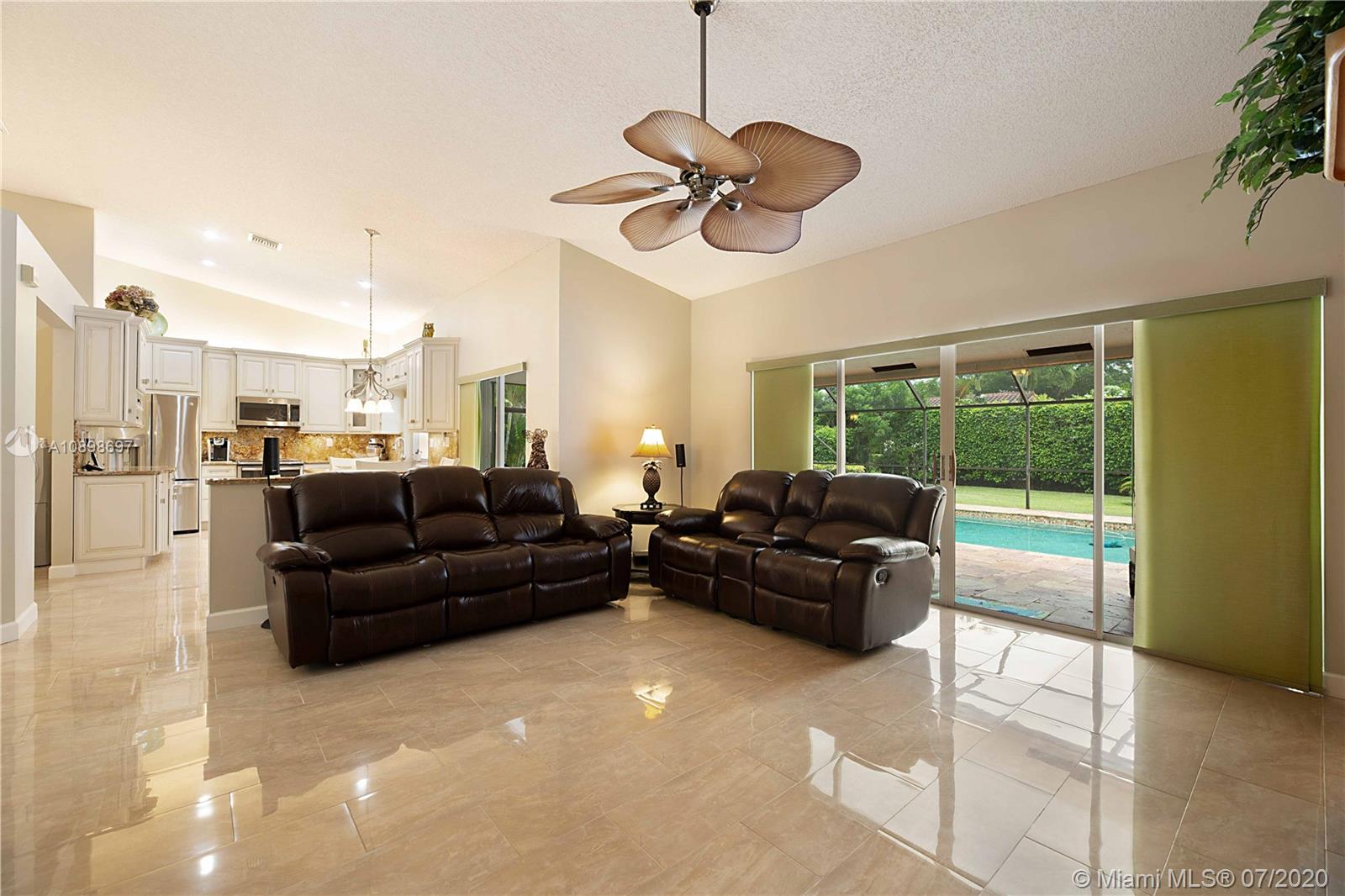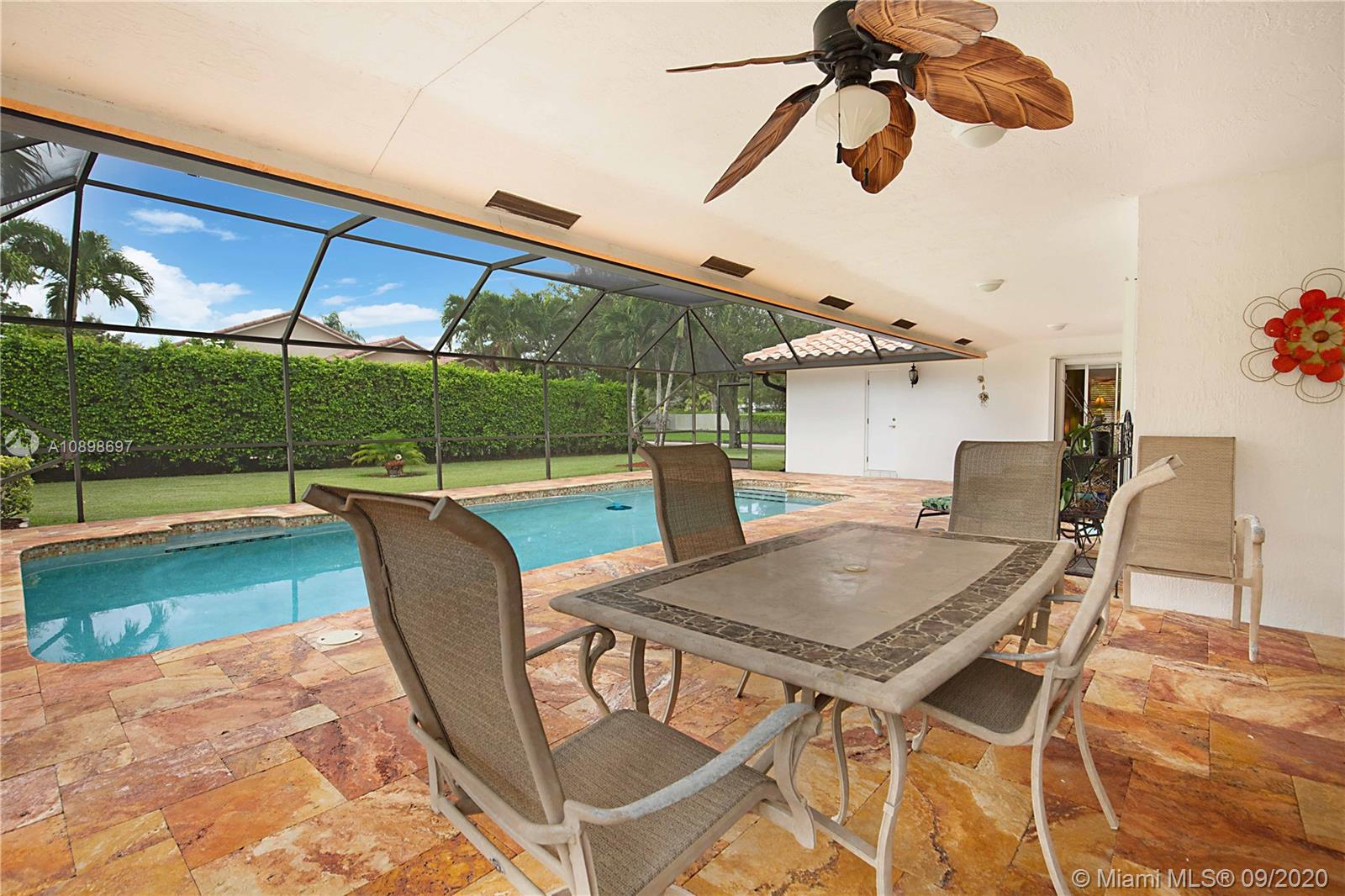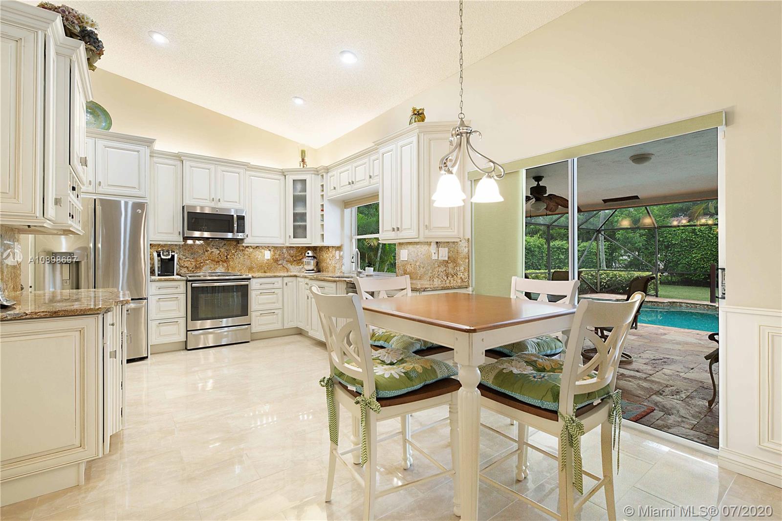 Exquisite 4/2 pool home in the highly desired community of Brookside Court. This home is situated on an expansive corner lot. The stunning travertine driveway leads you towards your double door entry. As you enter you're greeted by vaulted ceilings, natural light & flowing floor plan that is great for entertaining. Impeccable Quality Thomasville Kitchen w/ built-in pantry & wine rack, soft close, spice rack & garbage can pull outs, granite countertops & newer stainless appliances. Vaulted Ceilings. Custom window treatments & plantation shutters. Master suite features dual walk-in closets & stunning en-suite bath w/ soaking tub, dual sinks & large walk-in shower. Perfectly planned for your pool access w/ 2 cabana baths. Roof 2011. AC 2014. Hurricane Shutters & much more!Video Tour is avail.