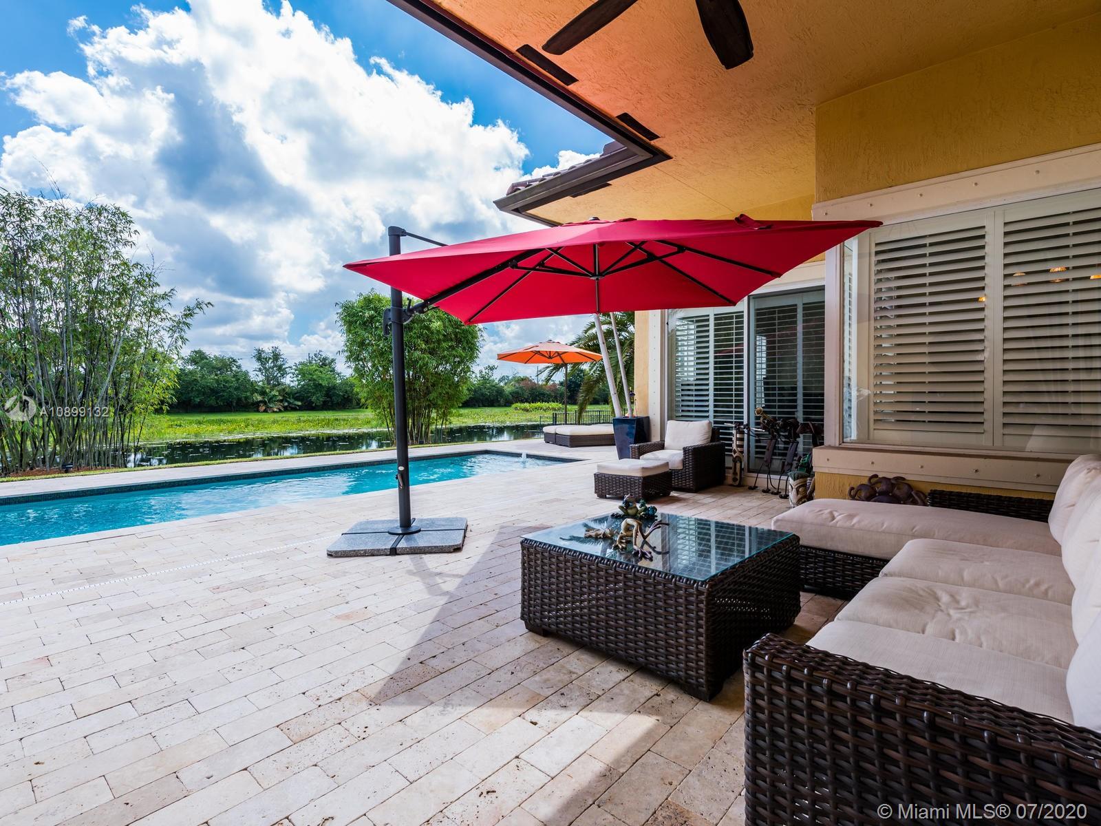 Gorgeous Estate Home in upscale gated community "Grove Creek Ranches" in Davie on its own exclusive cul-de-sac. Features Grand foyer entrance with cathedral wrought iron impact doors, soaring ceilings, crown molding, spacious split floor plan, bedrooms with all natural hard wood floors, baths with beautiful quartz countertop vanities, California closets & marble floors throughout. Open kitchen equipped with all stainless-steel appliances and double oven. Over 150 Led light fixtures & security cameras throughout. Upgraded A/C's & new water heater. Stunning private backyard overlooking natural preserve lake view with resplendent glass pool and jacuzzi. Over 200K in lush tropical landscaping with exotic specimen Date palm trees. 3 Car Garage includes John Deer tractor & 6,500 watt Generator.