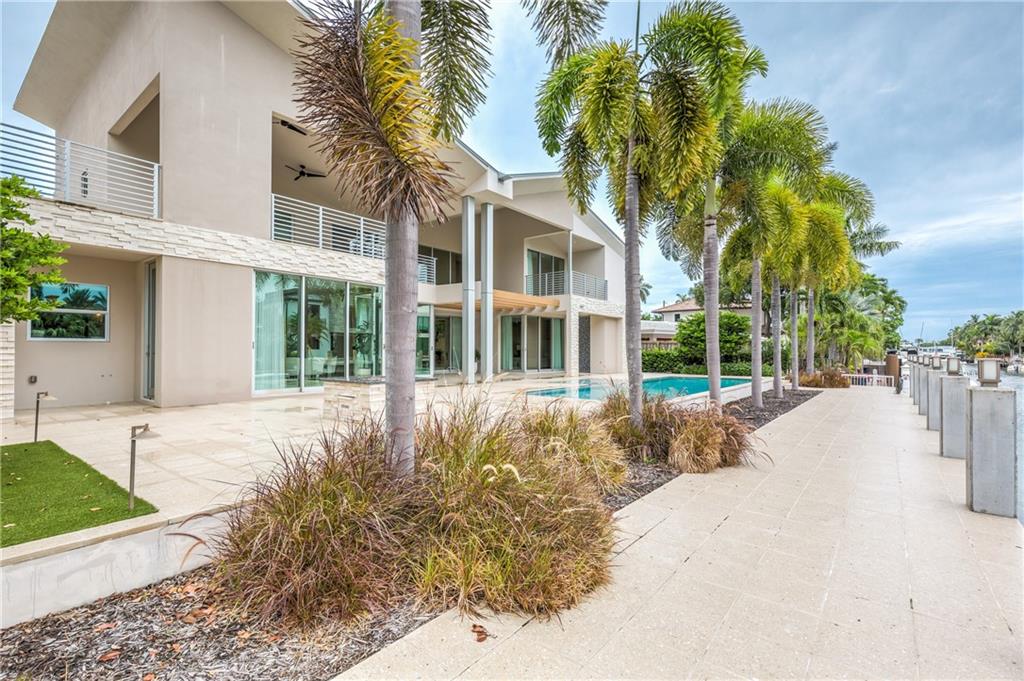 Modern curated luxury waterfront home offering a warm and inviting design with a main floor master suite, solid walnut kitchen with Subzero and gas Wolf SS appliances for your culinary expertise, open floor plan leading out to the expansive outdoor covered loggia for you and your guests to enjoy the spectacular views. This beauty was custom built with all concrete and steel construction for end an user and still shows as NEW featuring 5 full bedrooms with ensuite bathrooms, expansive second floor outdoor terraces, elevator, handicap accessible, and zero post sliding doors on 100’ concrete dock in prestigious Las Olas Isles. This is the best value in the Isles for a "NEW" home.
