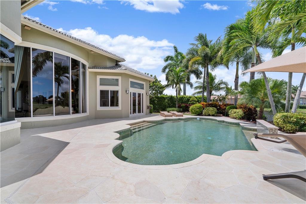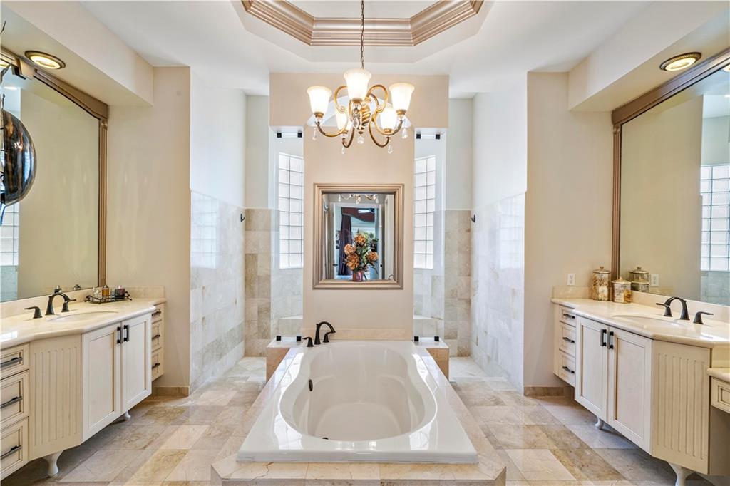 Sophisticated one story 5 bedroom + office and billiard room custom design on a wide water cul-de-sac lot with a spectacular golf view. Impact windows! Garage has custom lift to fit 4 cars. Gorgeous kitchen w/ custom white cabinets. Huge center island, double oven,gas stove w/ pot filler, Sub zero fridge, wet bar. Tons of cabinet space. Italian custom marble throughout all main living areas. All br's recently redone in porcelain tile. Custom closets in all br's. Huge master w/ sitting area large his/hers closets. Large Master Bath. Newer AC's. 2 new water heaters. Landscape lighting. Central Vac. Oversized pool. Huge screened in patio w/ built in grill. Walk barefoot on Zoysia Grass. Inside & outside recently painted. Bring your pickiest buyer. a rated Parkland schools. Low HOA!