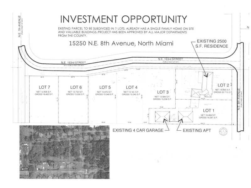 INVESTMENT PROPERTY. LOT HAS BEEN APPROVED BY DADE COUNTY TO BUILD 7 SINGLE HOMES. MAIN HOUSE HAS 4 BED AND 2 BATH. COTTAGE HAS 2 BED AND 2 BATH. BOTH WITH CAR GARAGE. AS-IS . SEE LOT PLANS.
