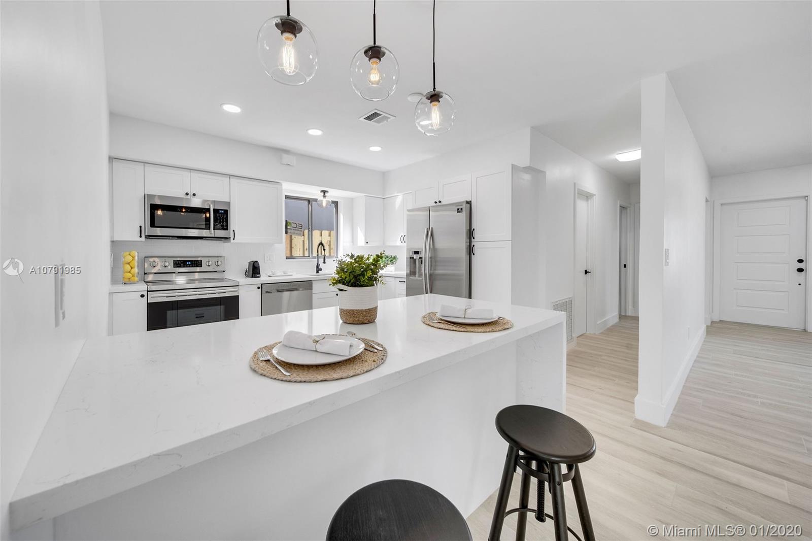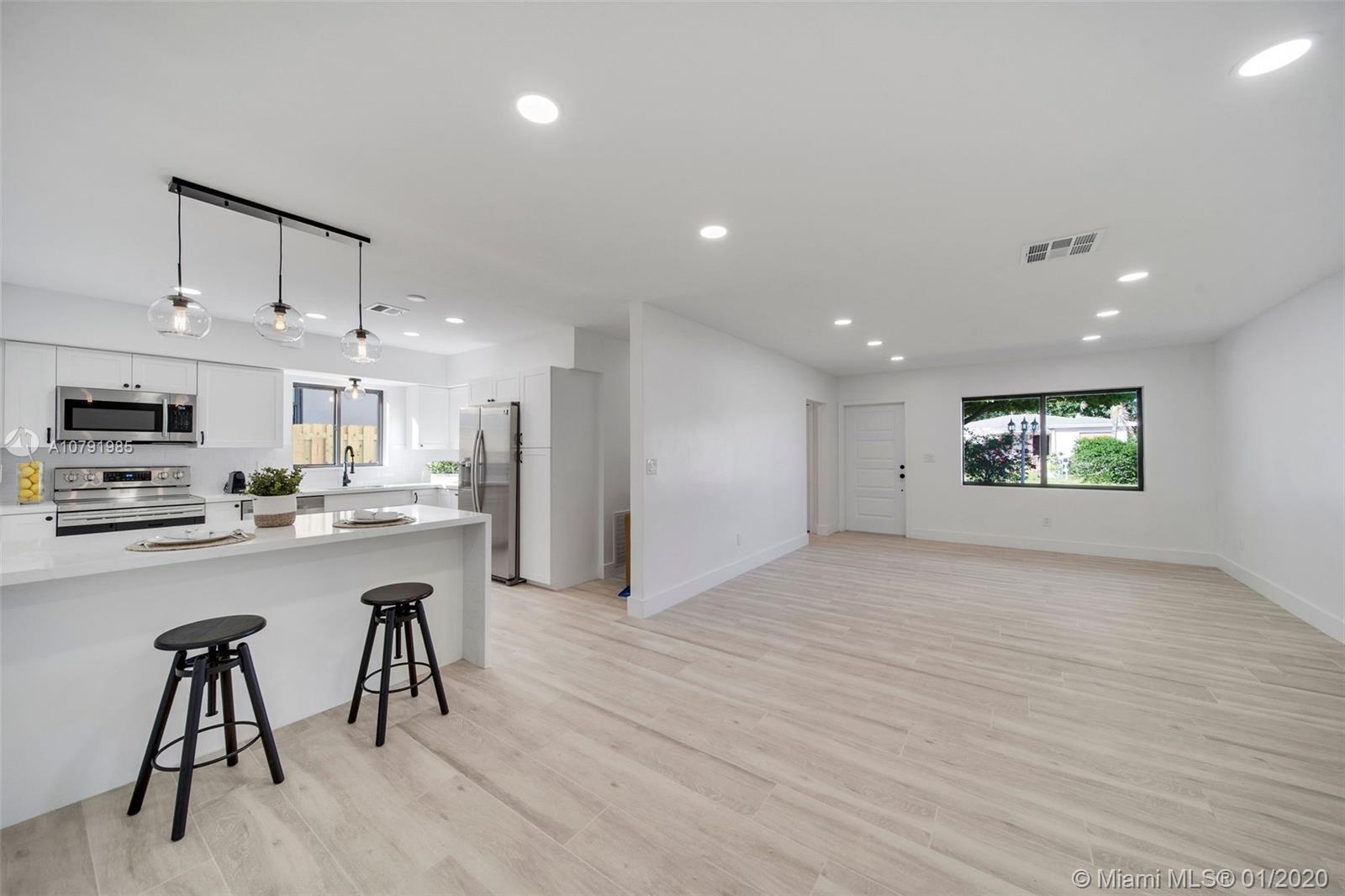 Conveniently situated between Miami Shores and Biscayne park rests this modern 3 bed / 2 bath farmhouse residence. Completely remodeled, the home boasts porcelain wood flooring and all-new Samsung stainless steel appliances. Large sun-filled bedrooms provide ample space and unique views from each room. The home also features a Nest Smart System, automating everything from security to home energy efficiency. Enjoy your morning coffee on the front patio area or in the backyard deck overlooking a beautiful yard with banana, pineapple, mango, and soursop fruit trees!