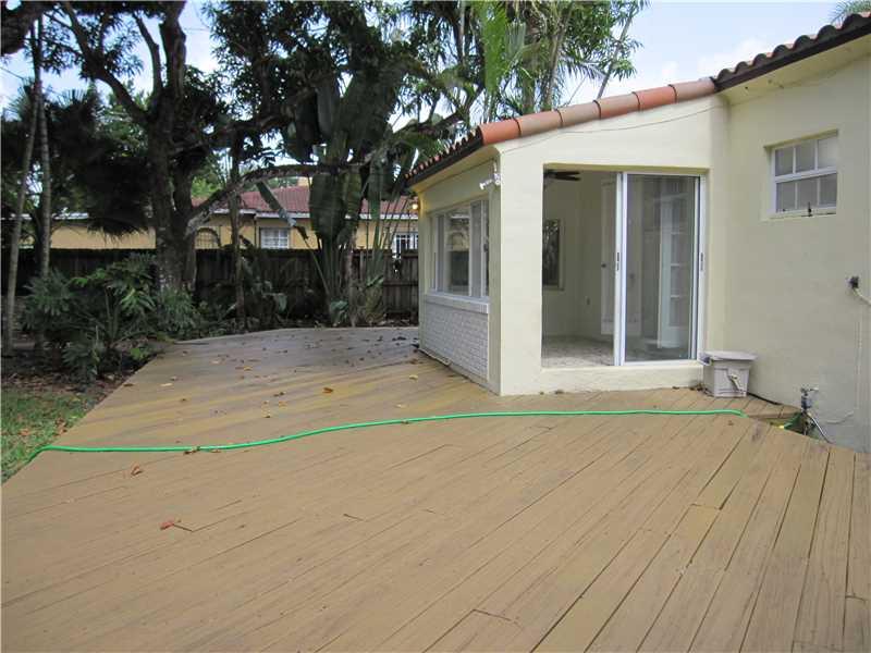 Perfect starter home in "Little Gables", located on a quiet, low traffic street. Huge back yard with fruit trees and a nice deck. Three bedrooms, two full baths. Wood and tile floors. Fireplace in the living room. Split floor plan. Storage shed in the bac k yard. Lots of natural light in the house. Mosaic tiled front porch.Easy access to mjor expressways, Downtown Miami, Brickell Avenue and airport. Newer roof. Excellent price for this neighborhood. FHA financing available.