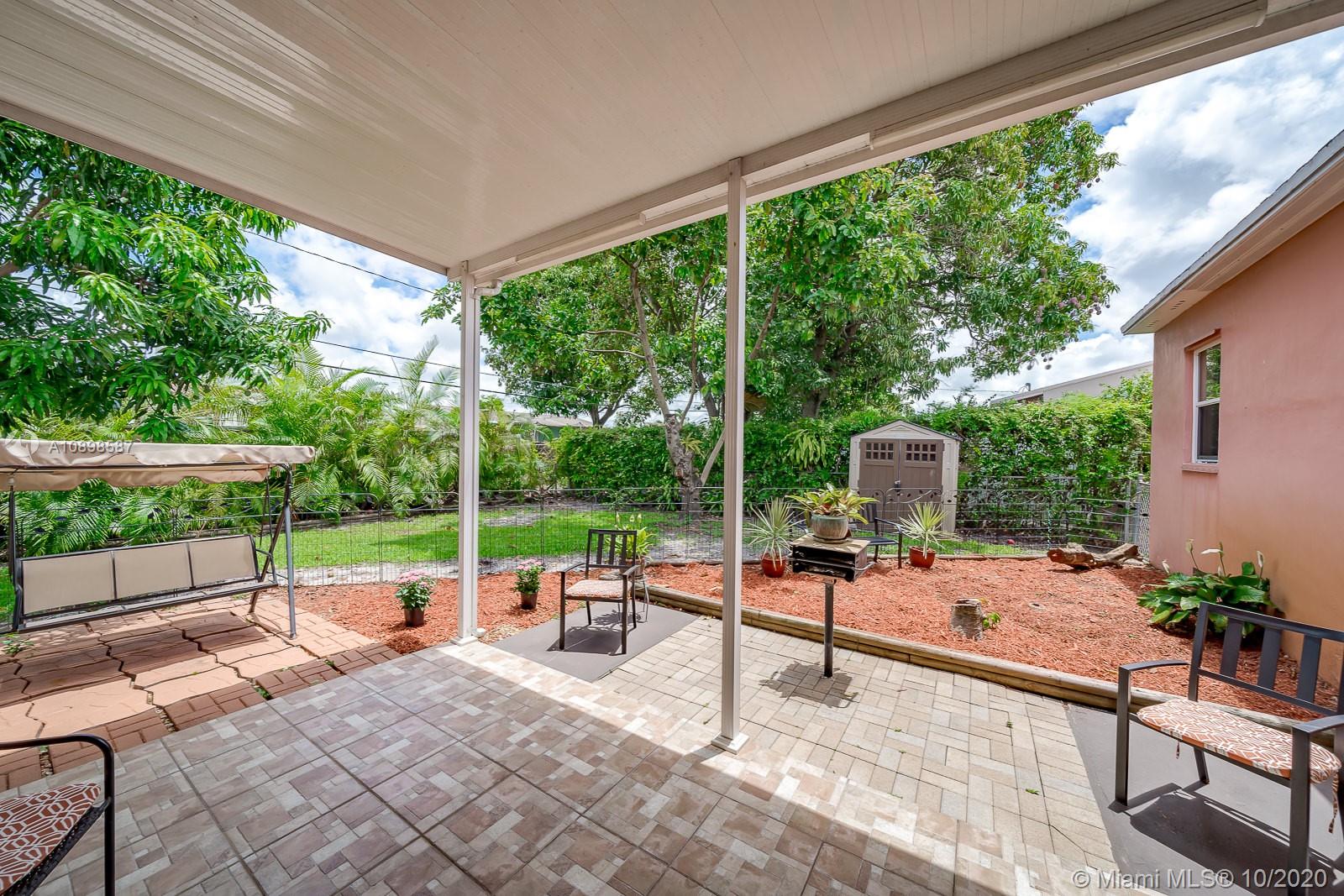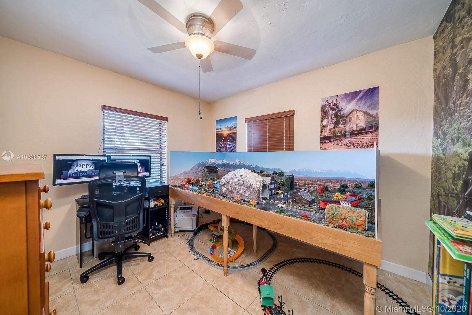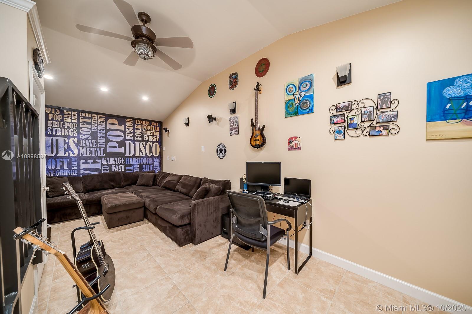 Are you looking for move in ready? You have it all right here and more! Beautifully maintained 3 bedroom 2 bath with bonus man cave! Large tiles throughout, updated kitchen with SS appliances and granite counter tops with decorative mosaic backsplash. Updated guest bath with floor to ceiling tile and mosaic accent. Additional family room perfect for entertaining with built in speakers and tv flushed with wall. Enjoy the covered patio that is cable ready to hook up to your TV! Completely fenced in property, beautifully landscaped with lush tropical landscaping. Front of the property is fenced with a wrought iron fence and automatic gate. AC 2015, Roof 2007
