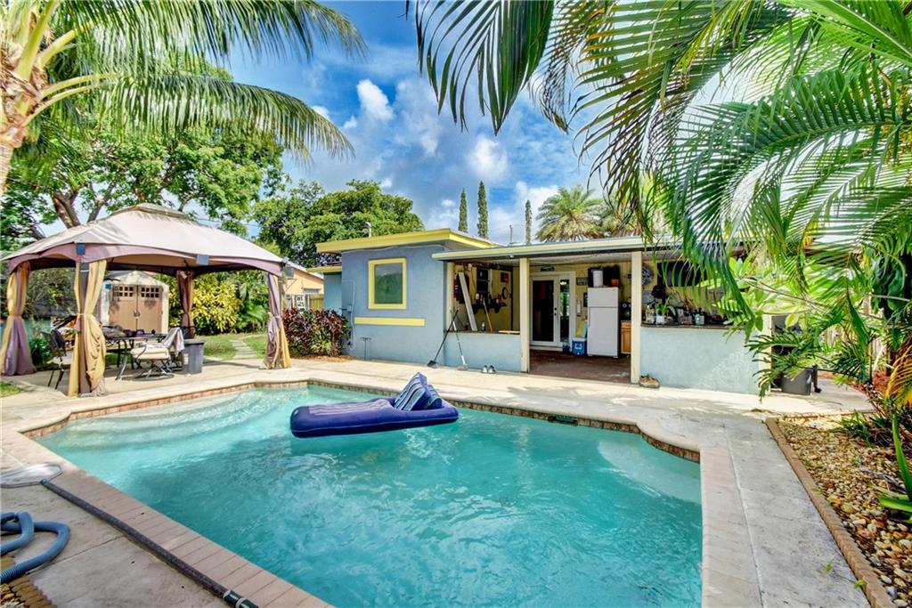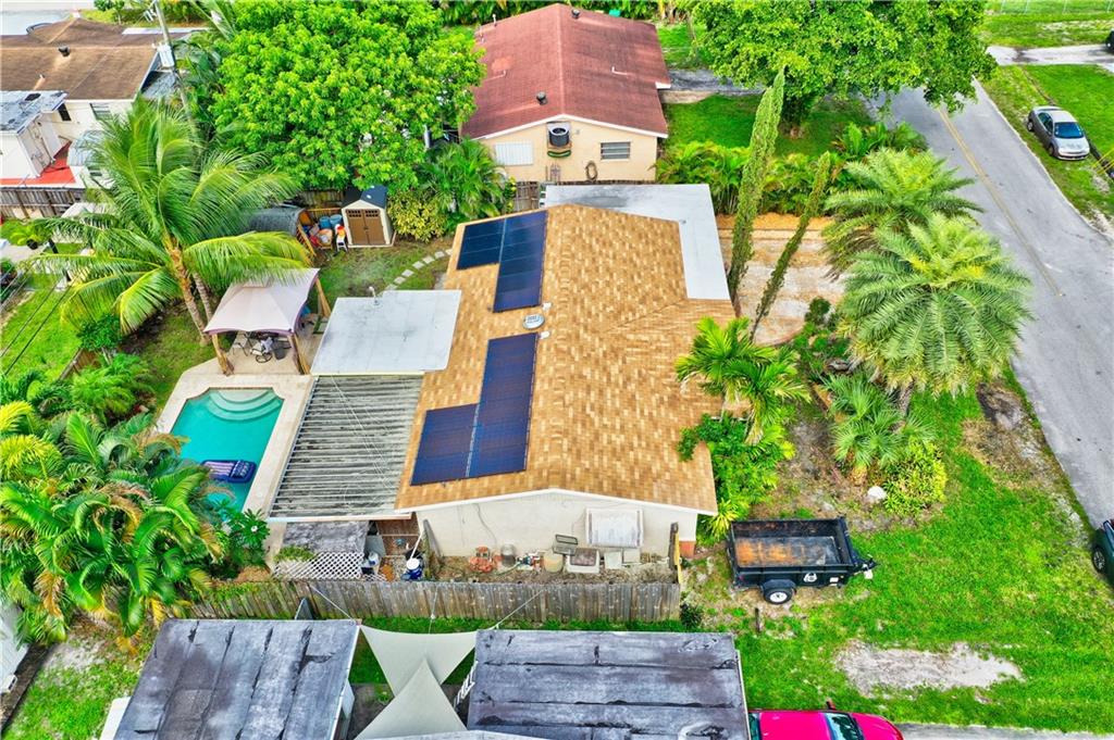 Beautifully remodeled Davie home with pool! Tucked away in a quiet street with no HOA, this 3 bed and 2 bath home has recent upgrades that will keep your insurance and electric bills LOW. Complete roof replacement with permit completed in 2018. Solar panels and updated electrical, A/C replaced (2018), impact windows and hurricane shutters on all windows. Brand new tile floors in laundry room and one of the bedrooms just completed. Master bathroom was extensively renovated and expanded with separate rainfall shower and oversized spa jacuzzi tub. Recessed lighting and custom color changing lights featured in the living room ceiling make this home truly one a kind. Backyard tropical oasis with covered patio & built-in bar perfect for entertaining. Storage sheds, 2nd fridge & canopy included!