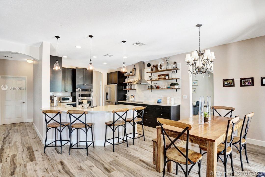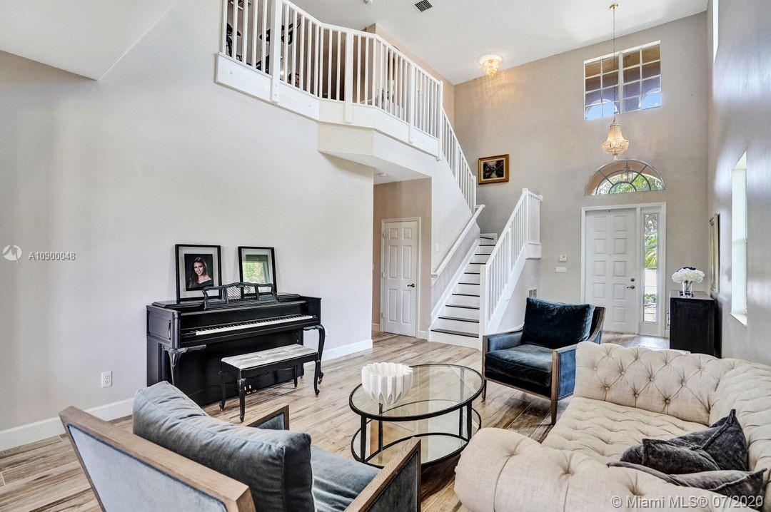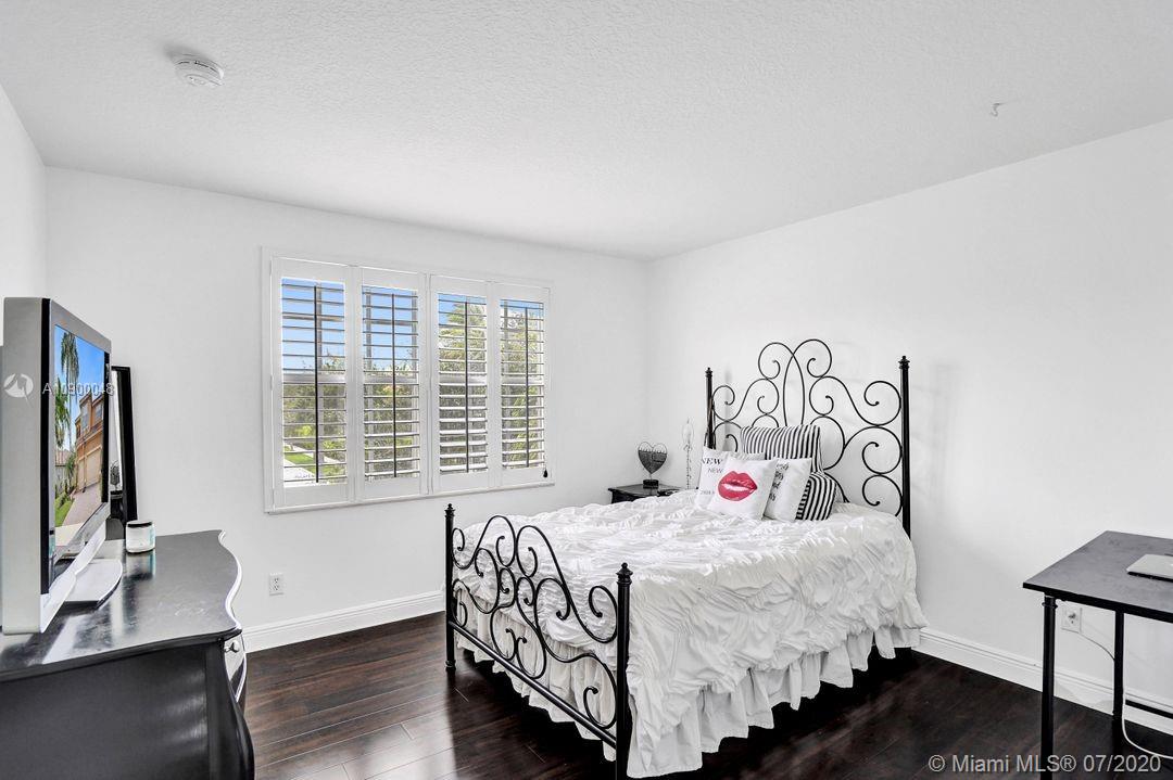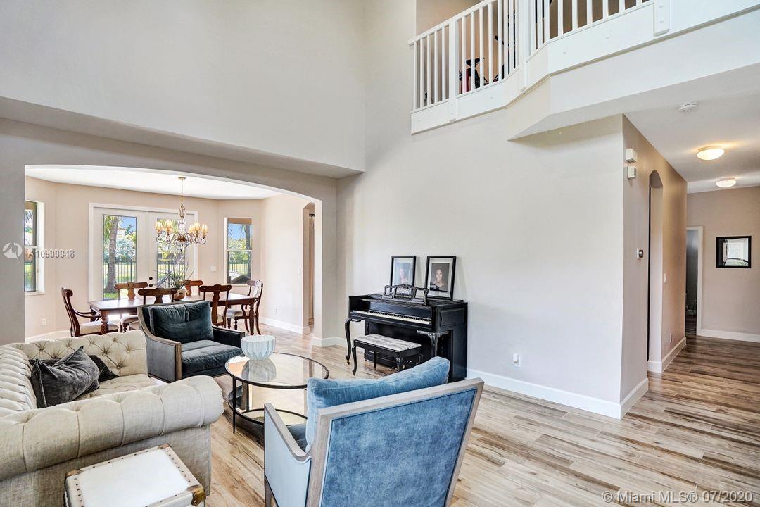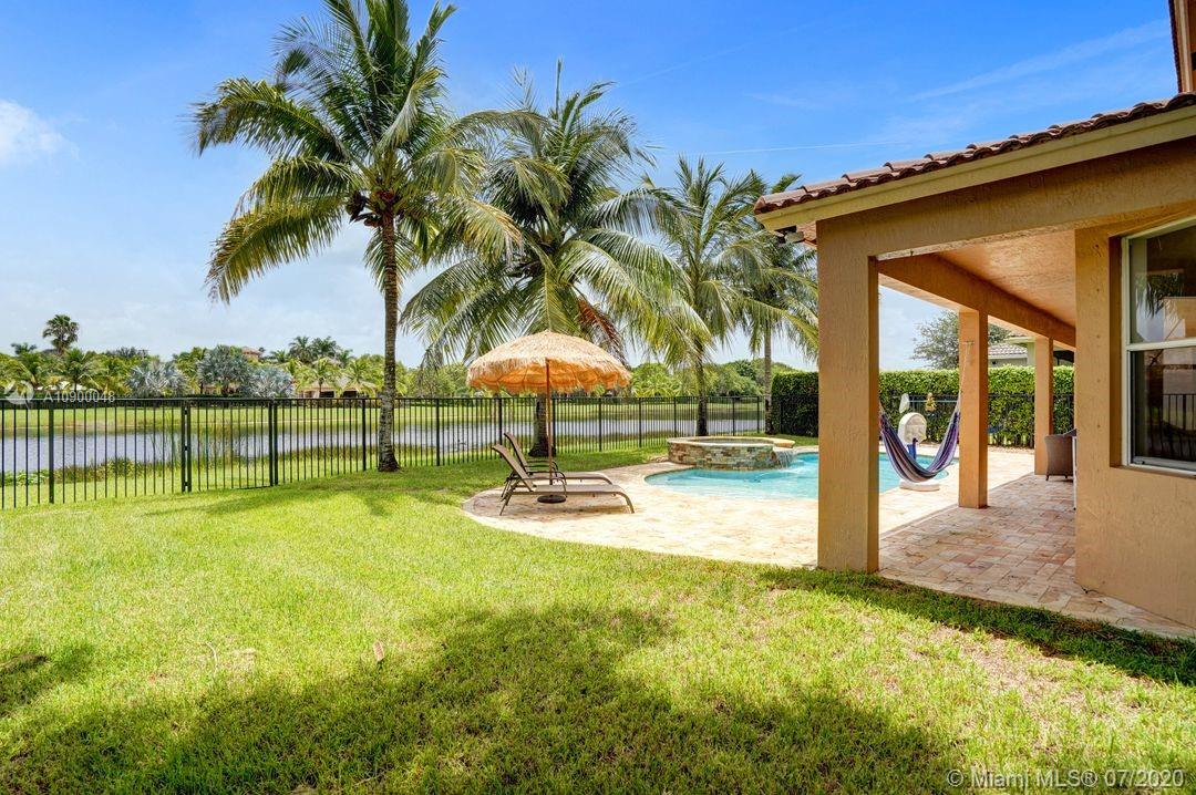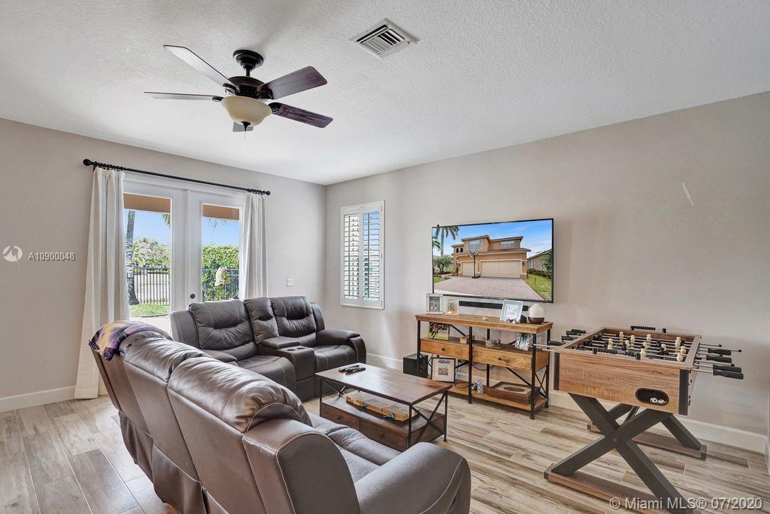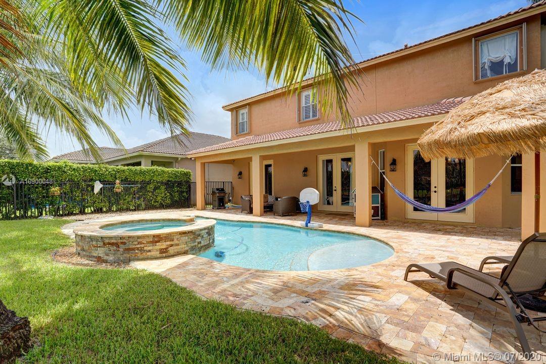 This is a beautifully updated 5/4 home and truly spectacular to any buyer looking for that modern home. Soaring two story foyer and living area with high ceilings and bright natural light. Simply amazing model like kitchen with dark wood cabinets, stainless steel appliances, quartz counter tops, subway marble back splash and breakfast area. Modern wood like tile downstairs with one bedroom and remodeled bathroom. Upstairs you have a huge loft for entertainment, dark wood flooring, two nicely remodeled bathrooms, plantation shutters and grand master suite with water views. Gorgeous salt chlorinated free form pool with jacuzzi and tumbled marble pavers.Tranquil water views and very large covered patio on over sized lot with lush tropical landscaping. Accordion shutters and more.Welcome home!