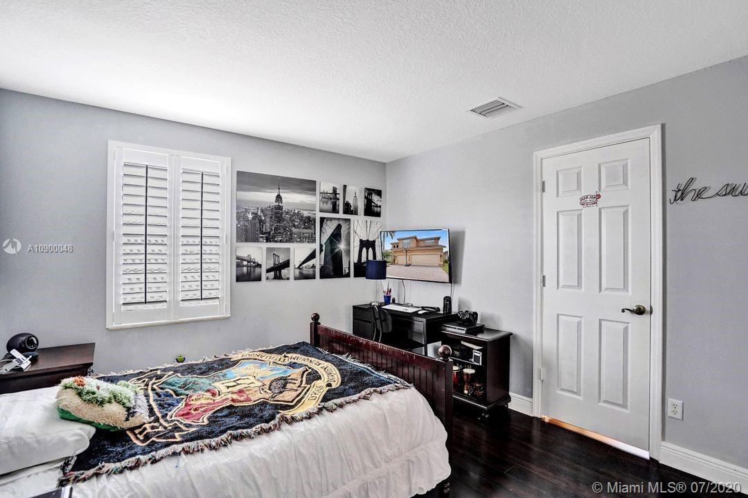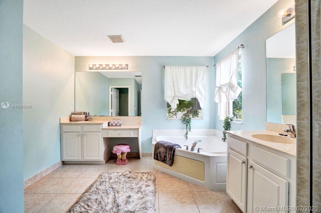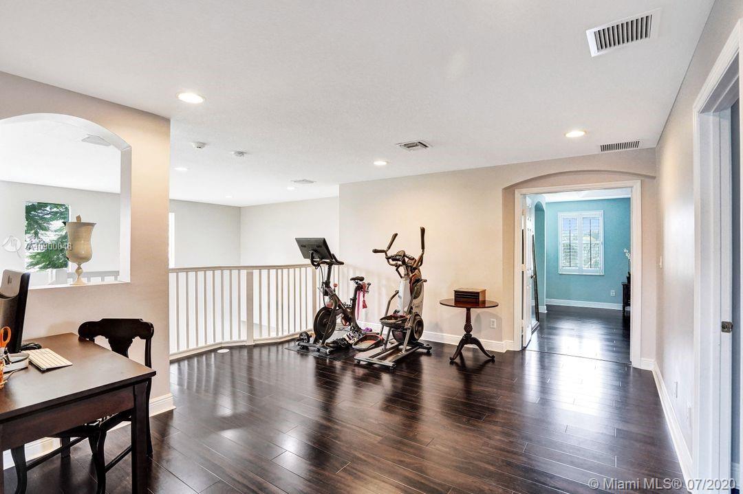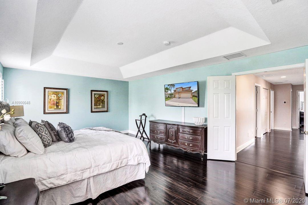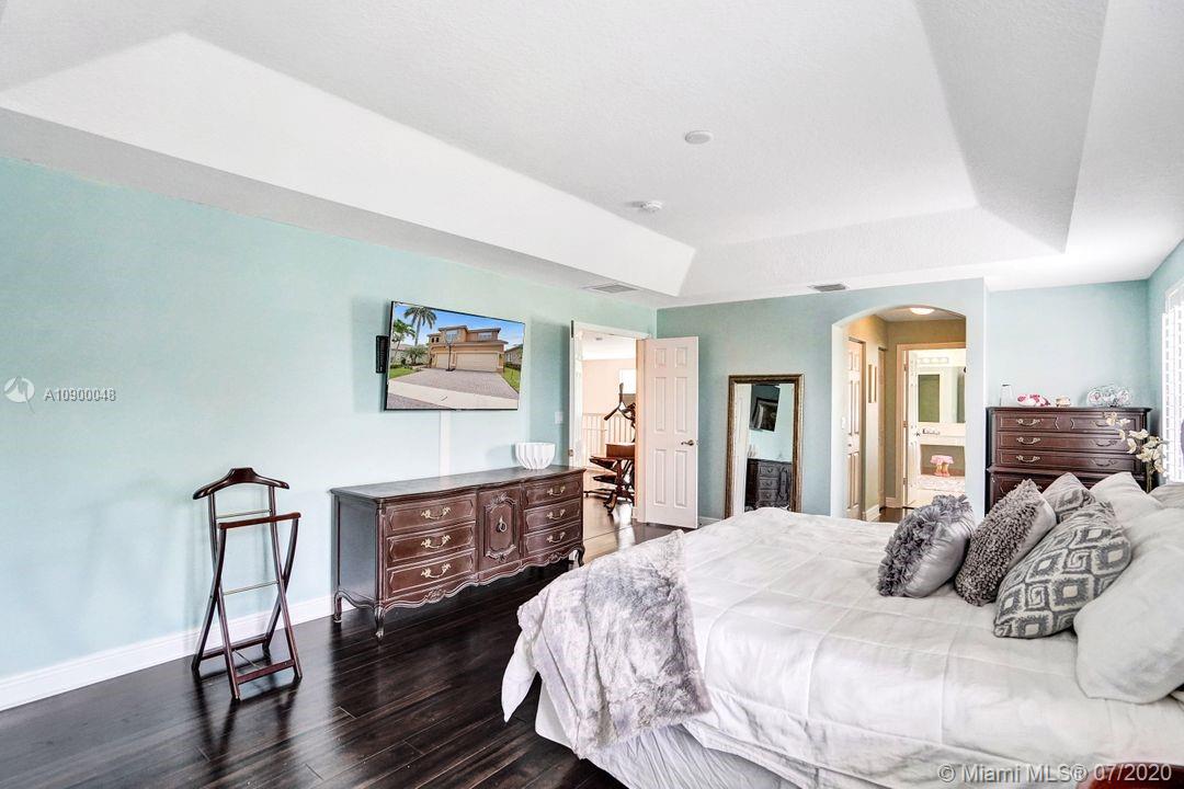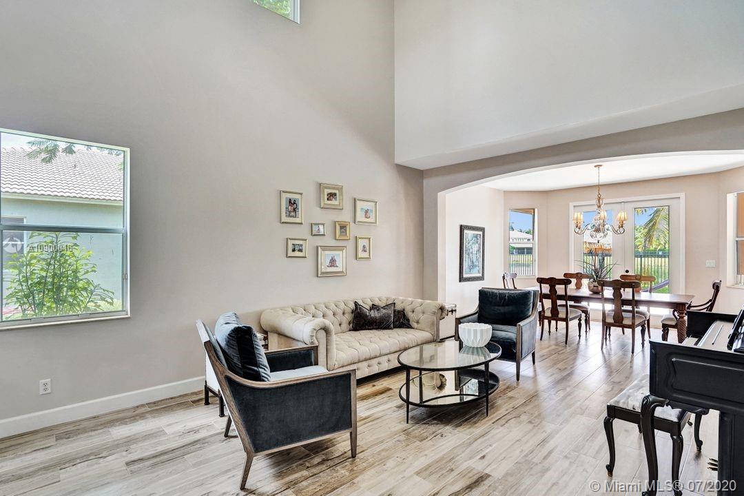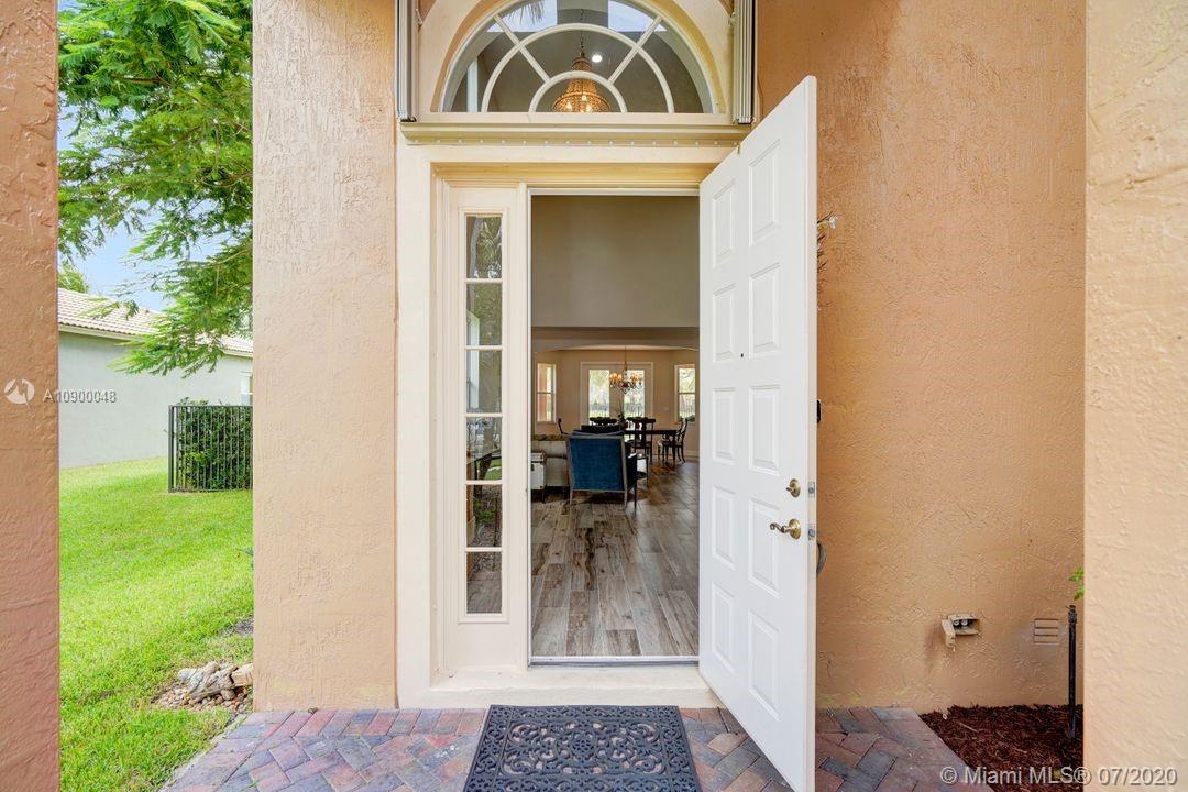This is a beautifully updated 5/4 home and truly spectacular to any buyer looking for that modern home. Soaring two story foyer and living area with high ceilings and bright natural light. Simply amazing model like kitchen with dark wood cabinets, stainless steel appliances, quartz counter tops, subway marble back splash and breakfast area. Modern wood like tile downstairs with one bedroom and remodeled bathroom. Upstairs you have a huge loft for entertainment, dark wood flooring, two nicely remodeled bathrooms, plantation shutters and grand master suite with water views. Gorgeous salt chlorinated free form pool with jacuzzi and tumbled marble pavers.Tranquil water views and very large covered patio on over sized lot with lush tropical landscaping. Accordion shutters and more.Welcome home!