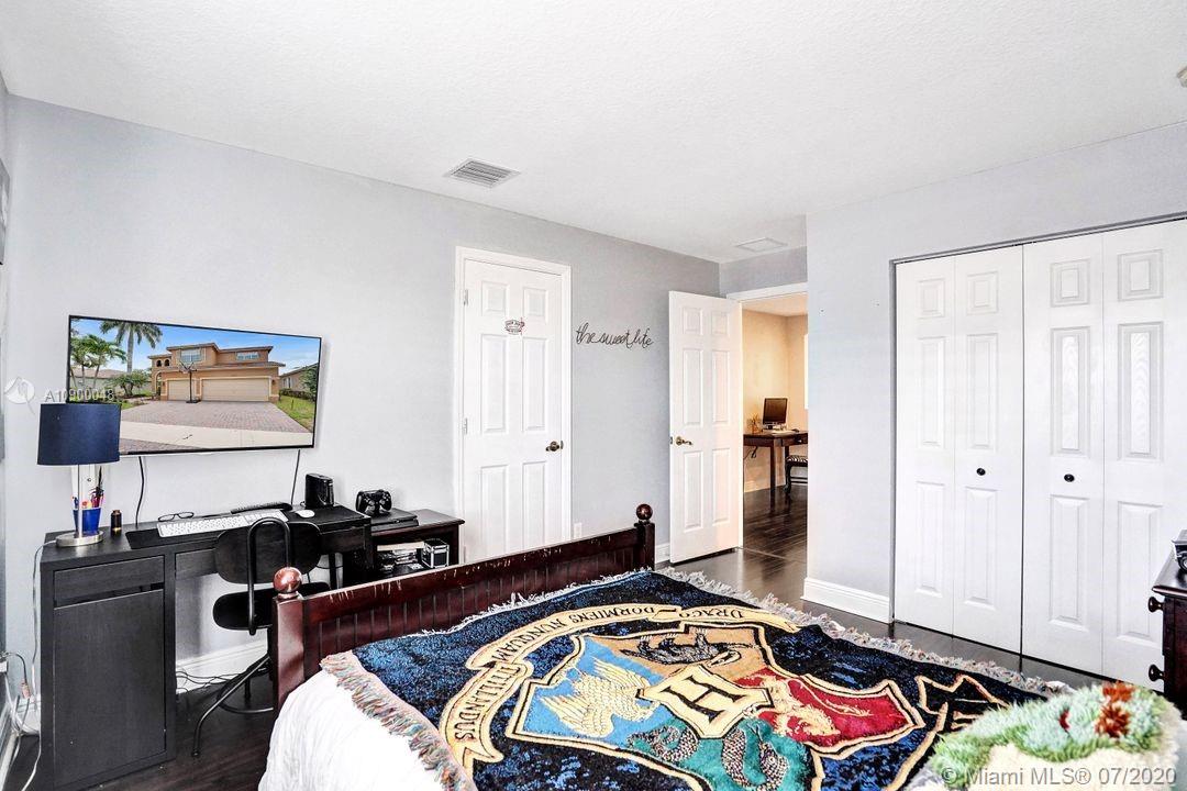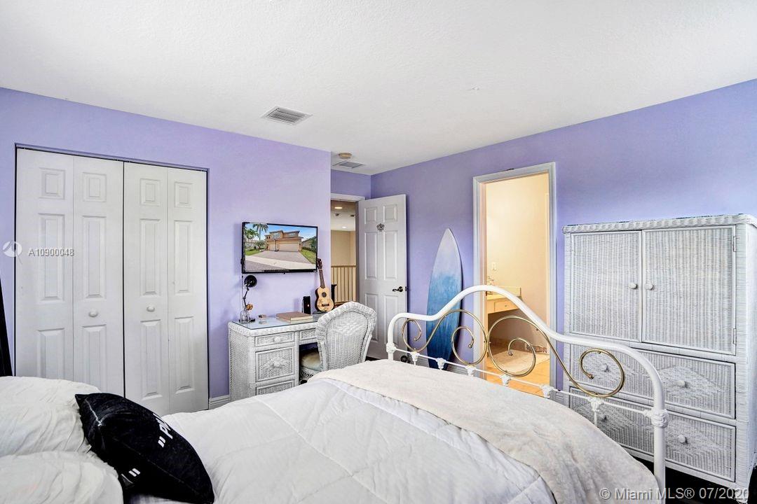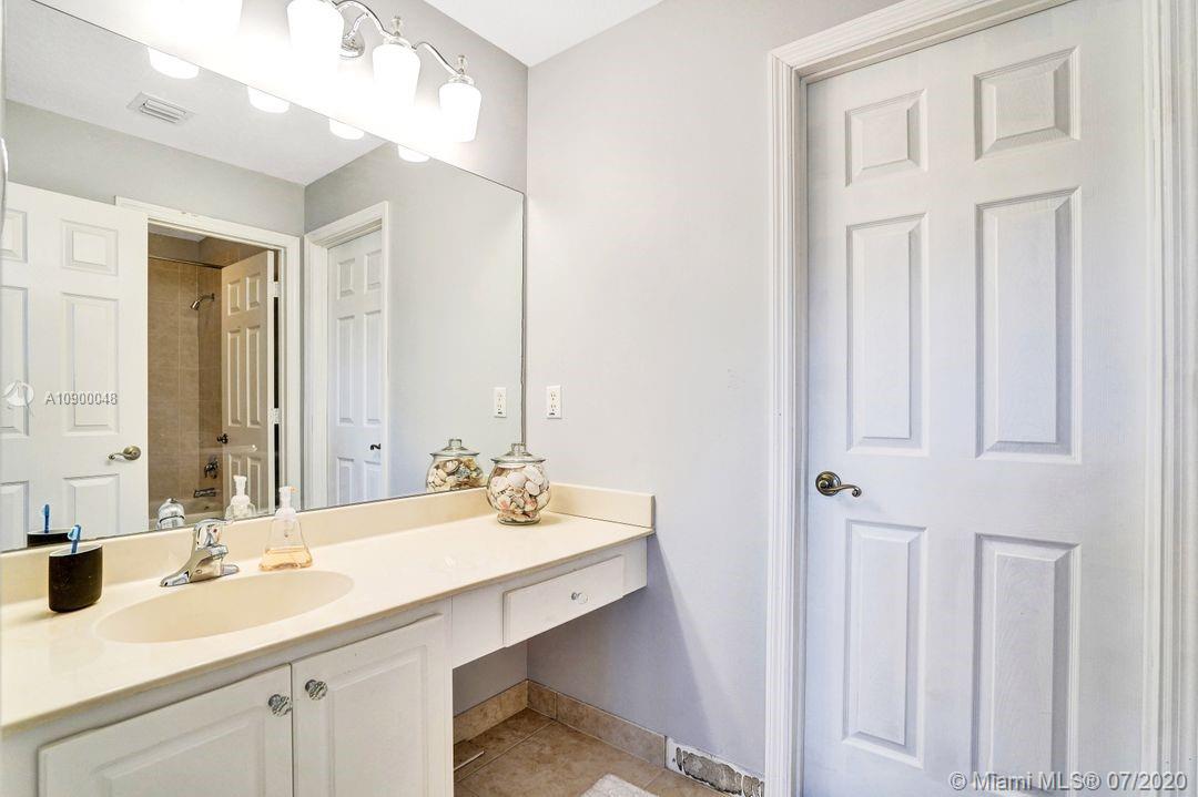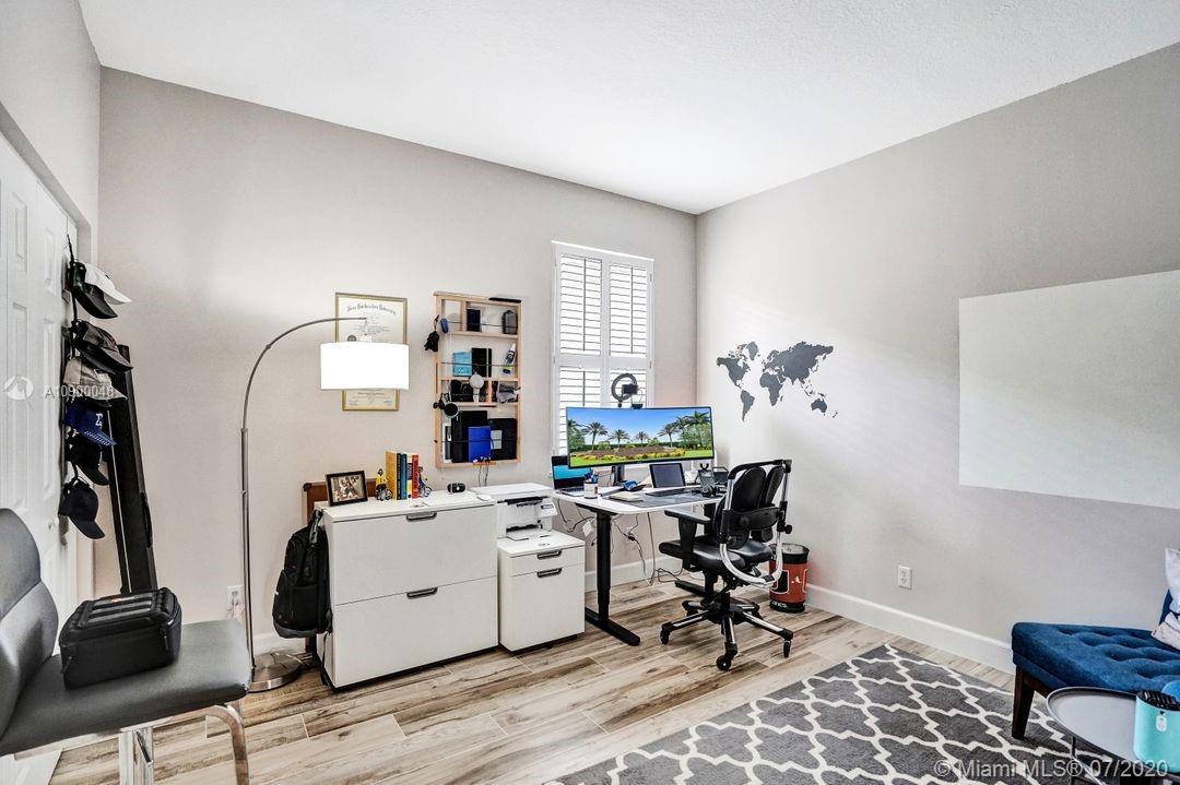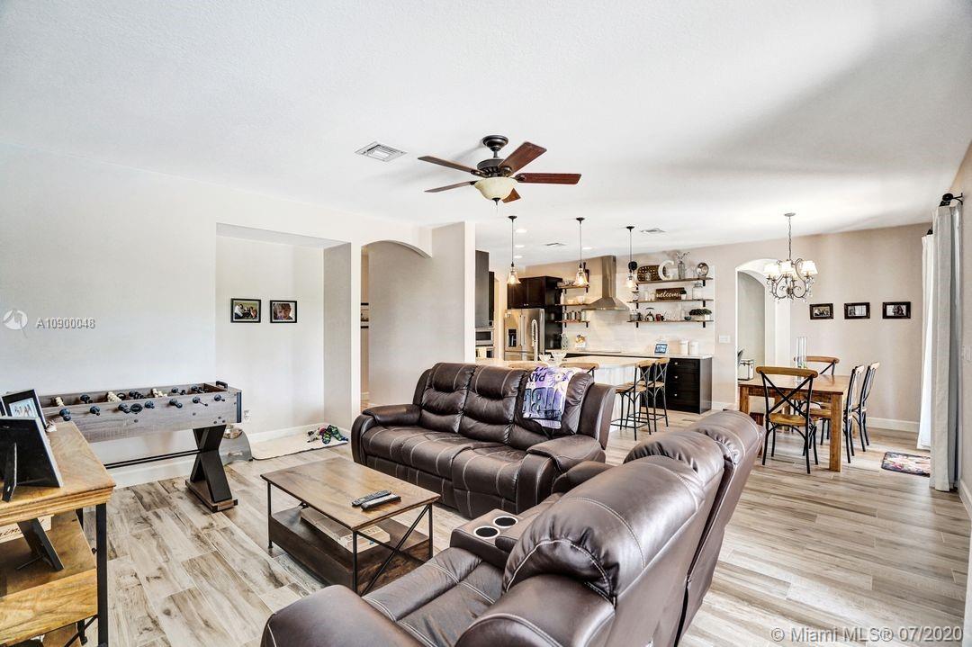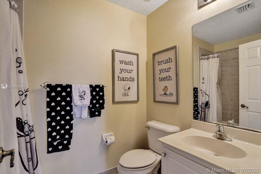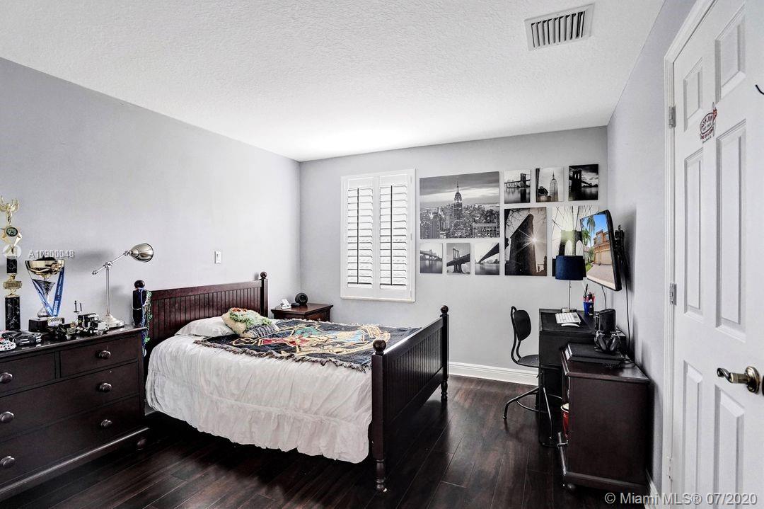 This is a beautifully updated 5/4 home and truly spectacular to any buyer looking for that modern home. Soaring two story foyer and living area with high ceilings and bright natural light. Simply amazing model like kitchen with dark wood cabinets, stainless steel appliances, quartz counter tops, subway marble back splash and breakfast area. Modern wood like tile downstairs with one bedroom and remodeled bathroom. Upstairs you have a huge loft for entertainment, dark wood flooring, two nicely remodeled bathrooms, plantation shutters and grand master suite with water views. Gorgeous salt chlorinated free form pool with jacuzzi and tumbled marble pavers.Tranquil water views and very large covered patio on over sized lot with lush tropical landscaping. Accordion shutters and more.Welcome home!