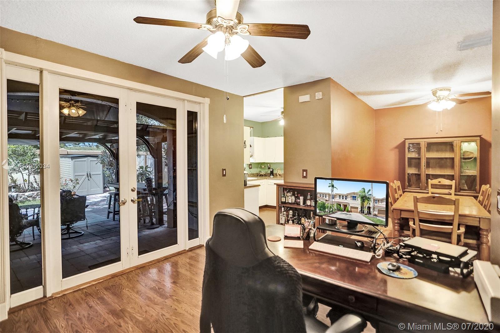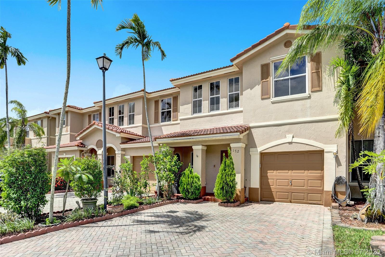 Rarely available 2/2.5 townhome in Sunrise. You will be welcomed by the beautifully landscaped exterior. Vaulted ceilings in the main living area, laminate flooring throughout, all bathrooms with updates. Oversized walk-in closets. Kitchen features custom pull outs in the cabinets, updated appliances. Brand new washer, insulated impact garage door, some windows are impact and the rest have shutters. FULL HURRICANE PROTECTION. Custom french doors lead you to the expansive entertainers dream patio. A year old pergola, beautiful landscaping will make you want to live out back all year long. PRIDE OF OWNERSHIP ORIGINAL OWNERS. Highly desired area of Sunrise with Weston Schools. Low HOA fee that covers all exterior, including insurance, tot lot, and pool. Easy access to highways.