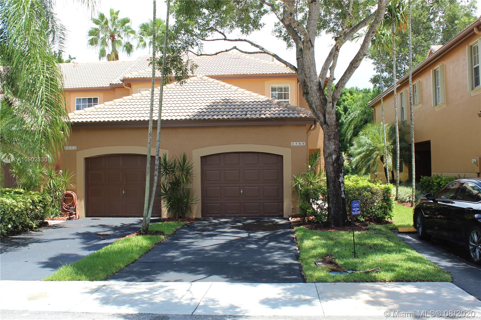 Weston-Rented for one year to a great tenant, lease expires on 8/31/21. This unit is rented at $2000 per month (rented during Covid). San Sebastian townhome located on a quiet street with pretty canal views from your backyard screened in patio. Features a one car garage with two master suites upstairs. Brand new carpeting upstairs and on stairs and all freshly painted. Upgraded kitchen, granite countertops with room for a breakfast table. Community has a pool! Light and bright corner unit with easy access to all major roads to the Beach, Boca Raton, Miami and Ft Lauderdale International Airport. All top rated schools too!