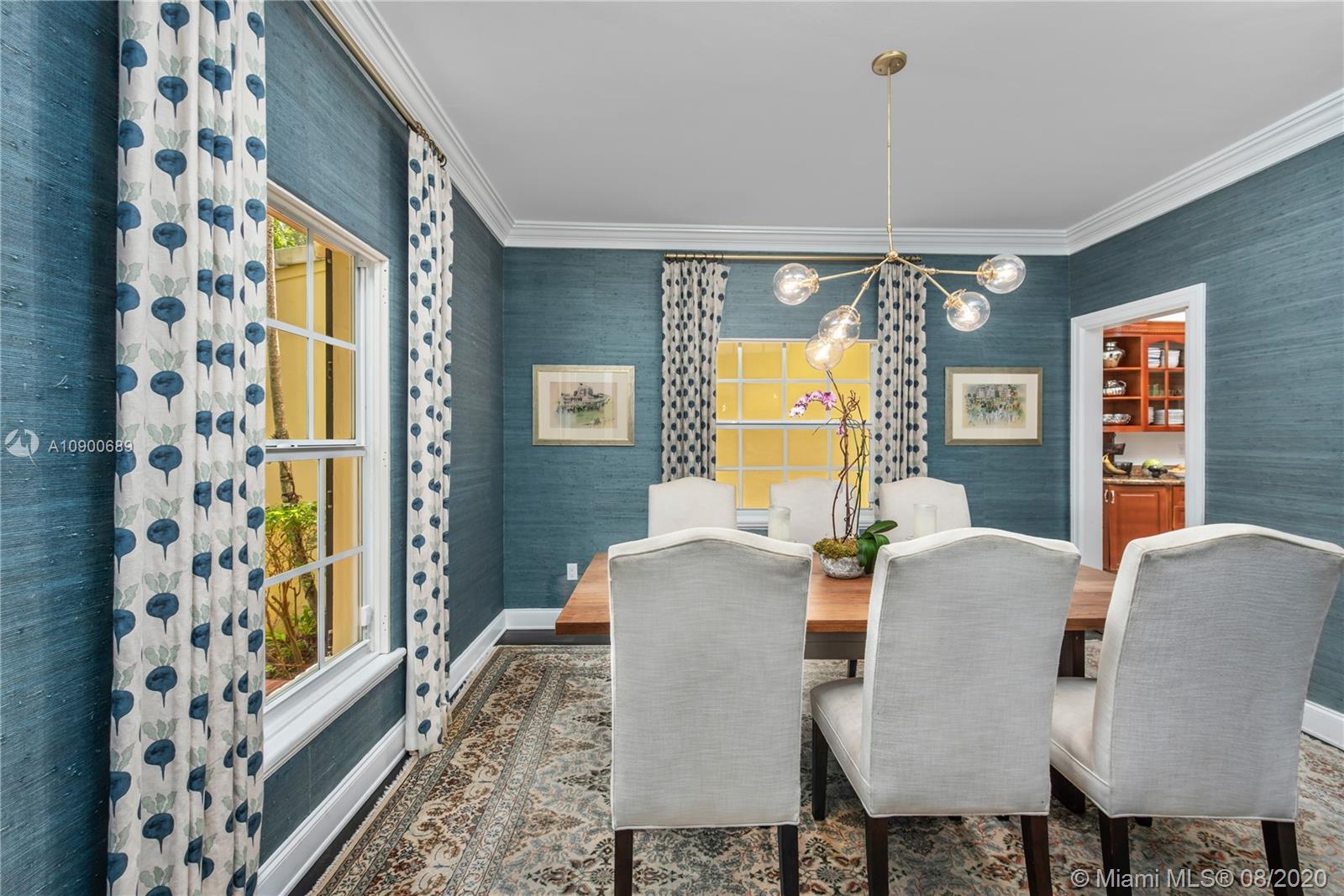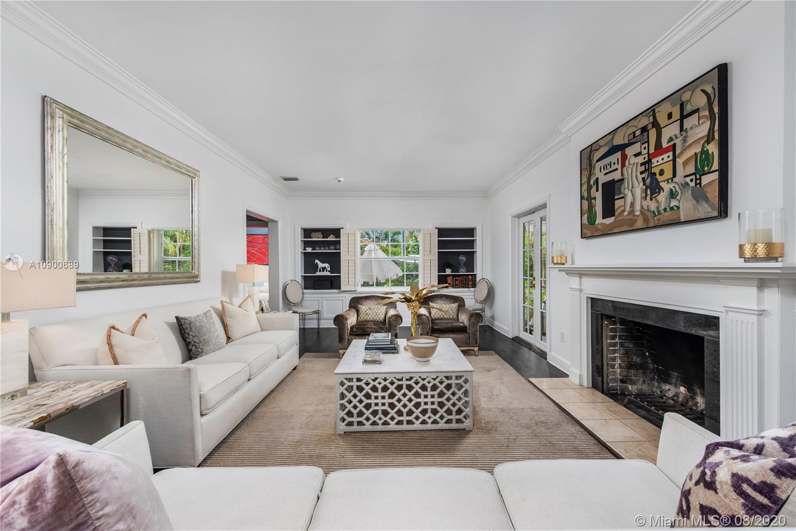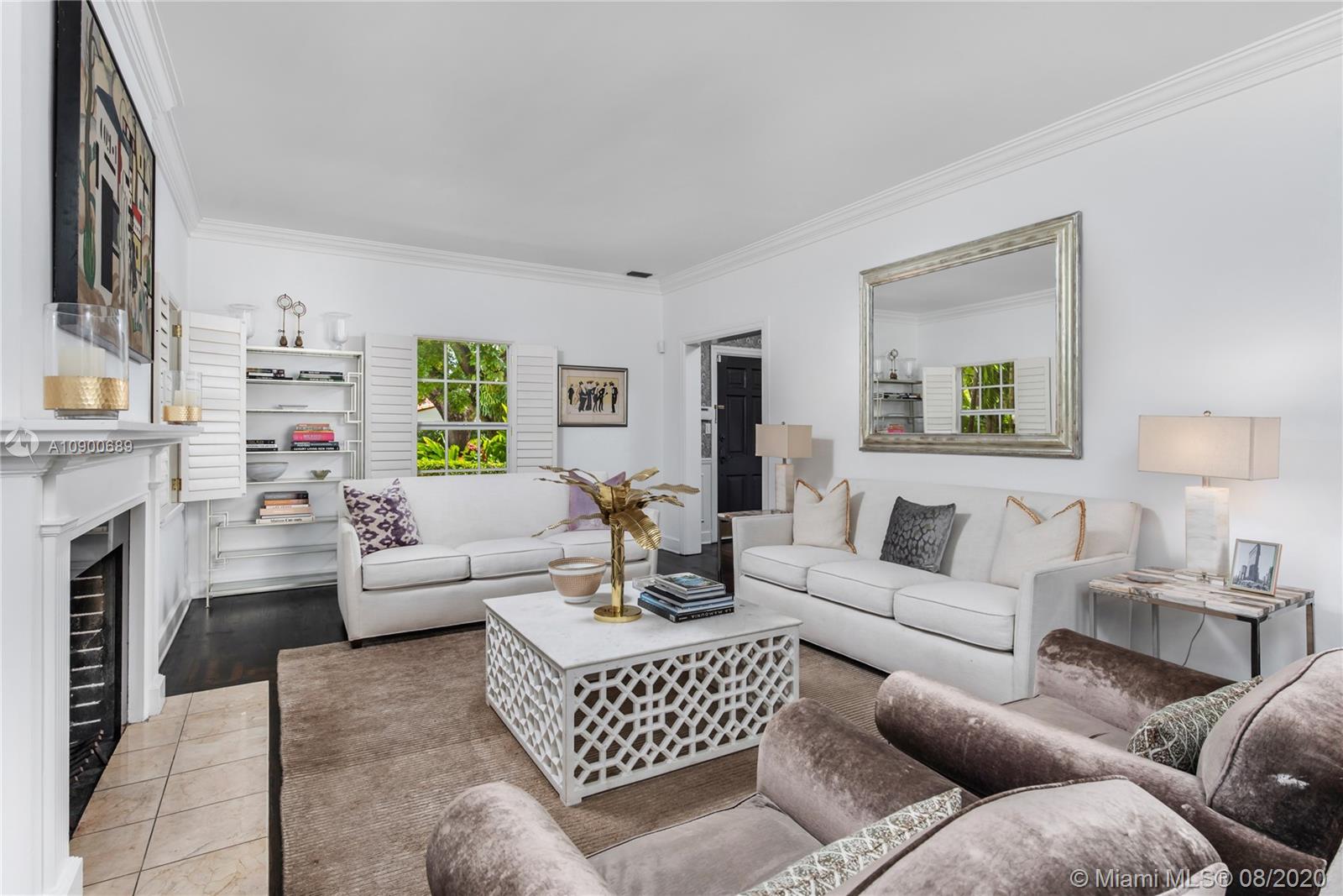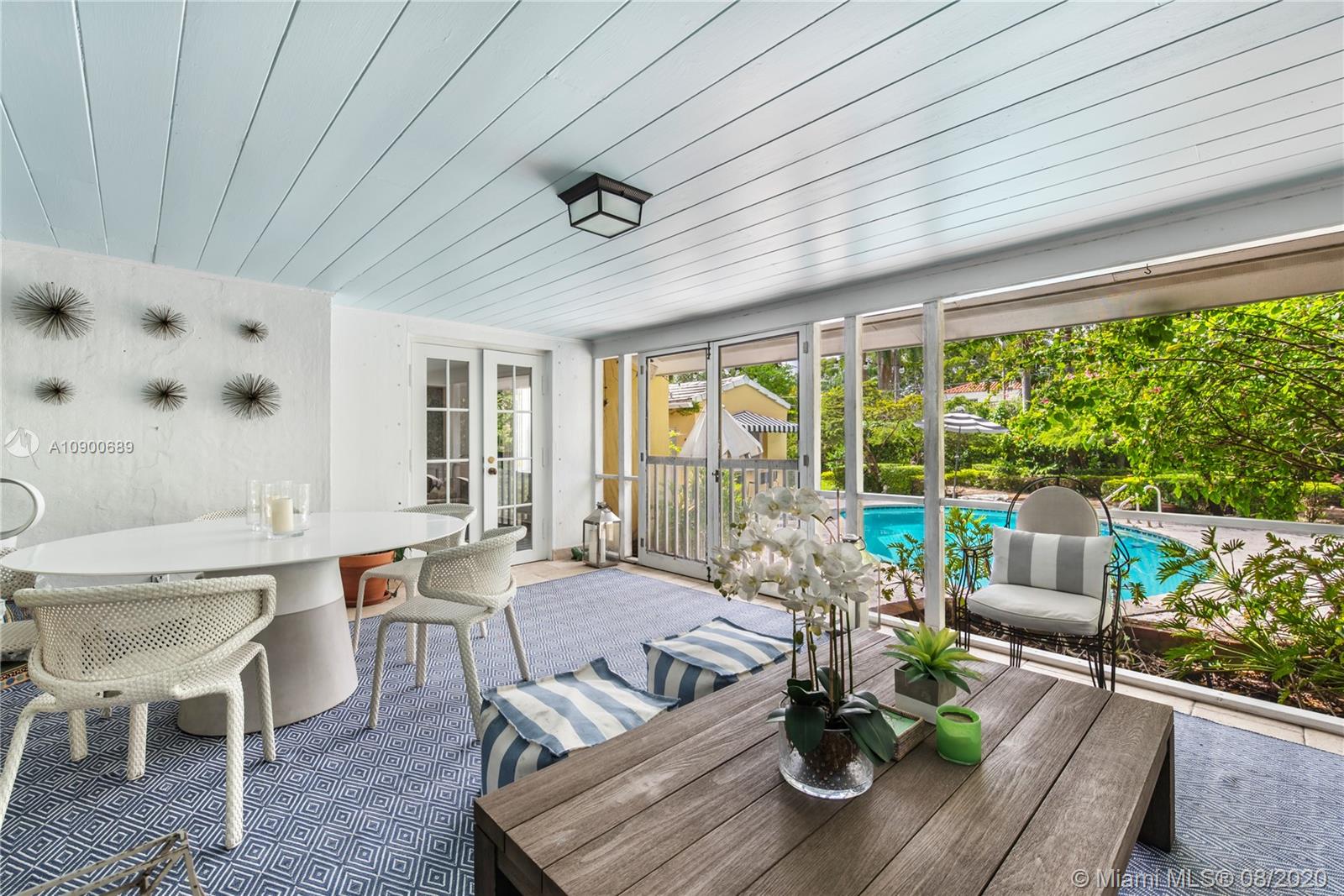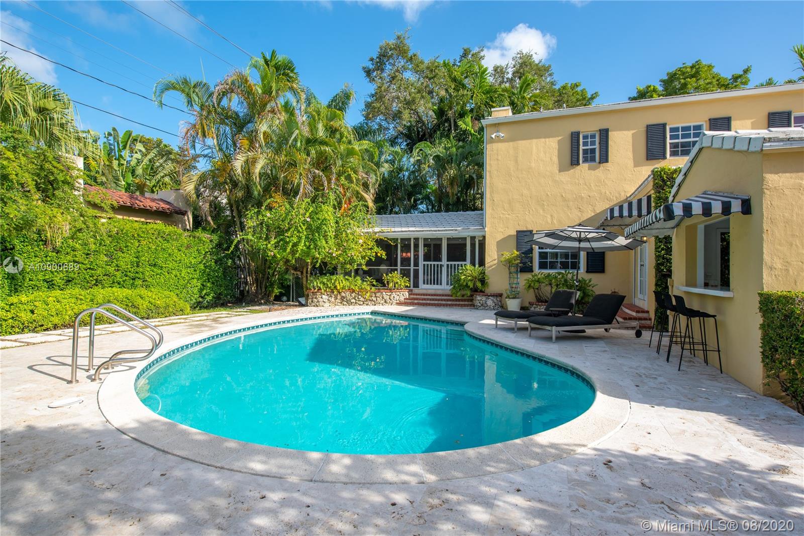 This gracious two-story home in heart of Coral Gables is right out of the pages of Elle Décor! Featuring a grand living room with fireplace, dining room swathed in grasscloth, lovely screened-in porch, dedicated playroom, cheery blue-lacquered den, kitchen w/Thermador & Subzero appliances, eat-in breakfast area & oversized family room, the impeccably designed spaces offer plenty of room for both formal entertaining & casual family time. Master suite + 2 bedrooms & hall bath upstairs; additional 1/1 downstairs w/private entrance is ideal as guest room/office. The beautifully landscaped lot features a spacious backyard, patio, pool house & free-form pool. Impact glass throughout, 2 car garage & incredible location on a tree-lined street near the Biltmore Hotel complete this special property.