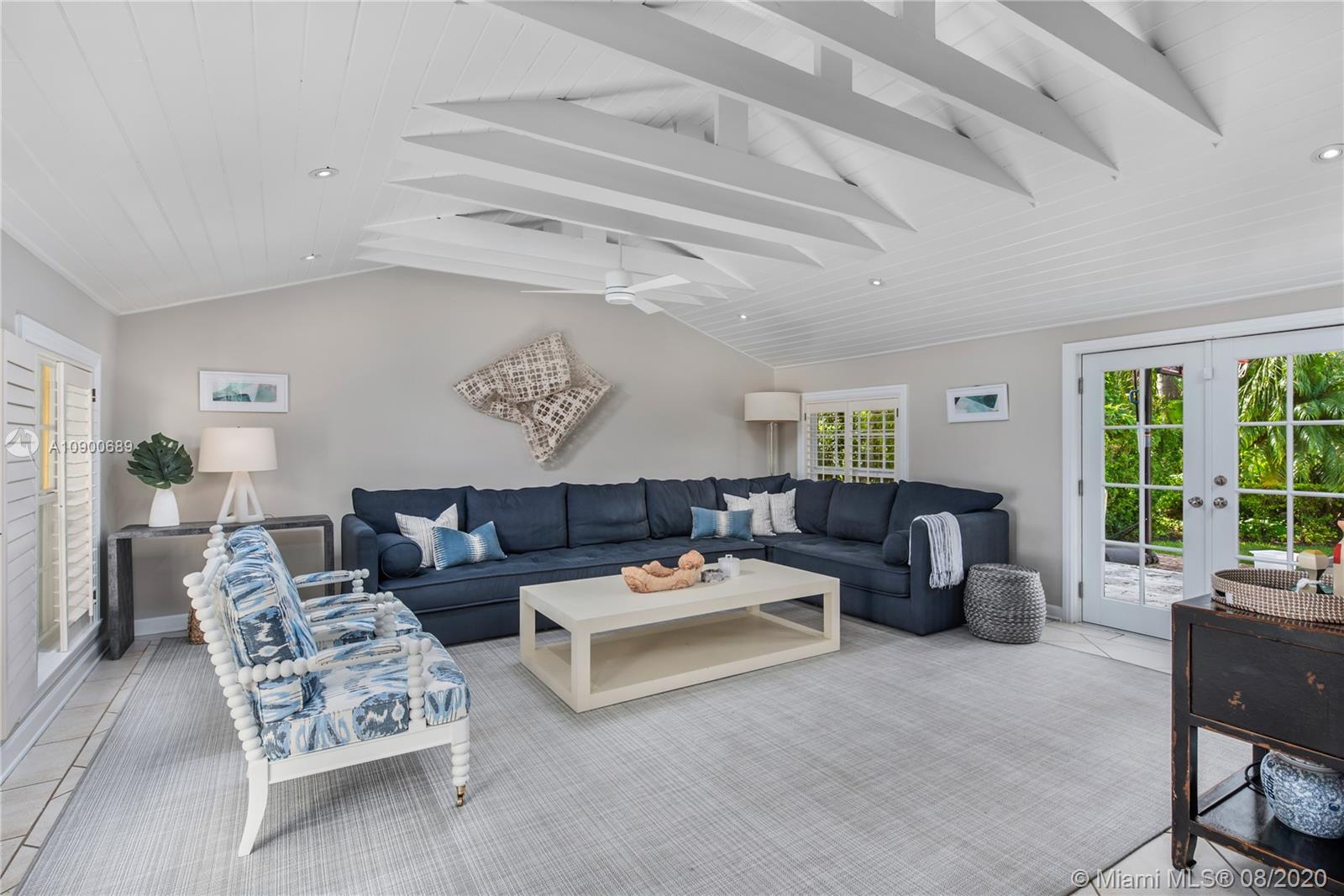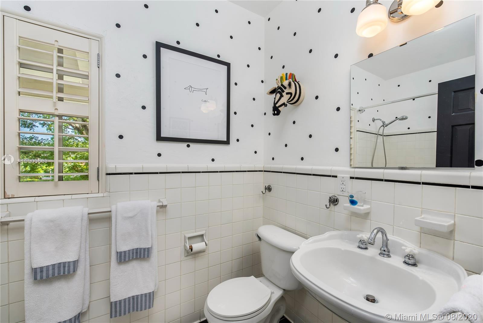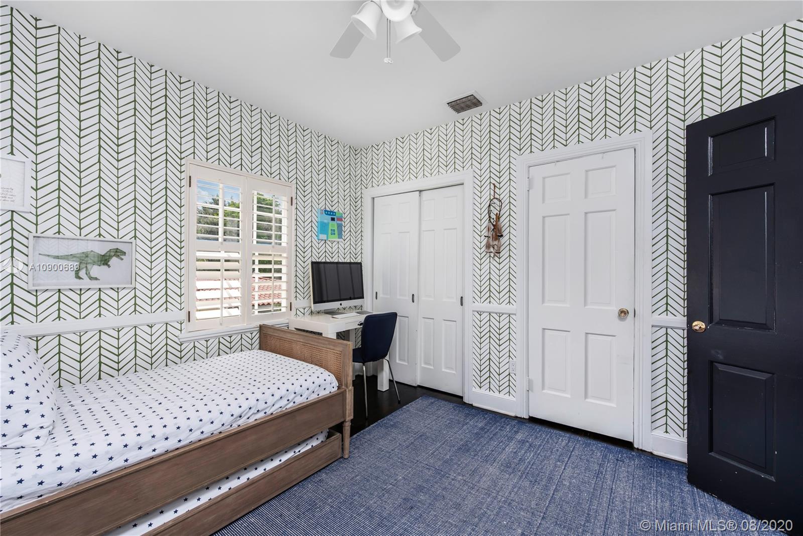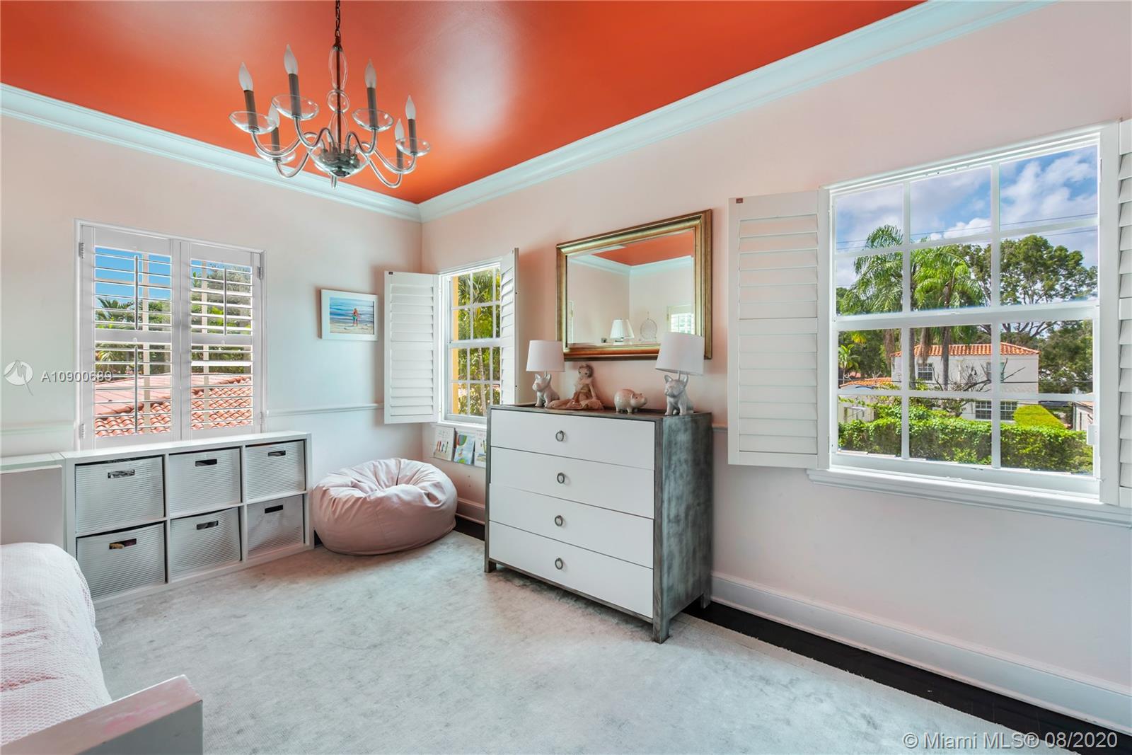 This gracious two-story home in heart of Coral Gables is right out of the pages of Elle Décor! Featuring a grand living room with fireplace, dining room swathed in grasscloth, lovely screened-in porch, dedicated playroom, cheery blue-lacquered den, kitchen w/Thermador & Subzero appliances, eat-in breakfast area & oversized family room, the impeccably designed spaces offer plenty of room for both formal entertaining & casual family time. Master suite + 2 bedrooms & hall bath upstairs; additional 1/1 downstairs w/private entrance is ideal as guest room/office. The beautifully landscaped lot features a spacious backyard, patio, pool house & free-form pool. Impact glass throughout, 2 car garage & incredible location on a tree-lined street near the Biltmore Hotel complete this special property.