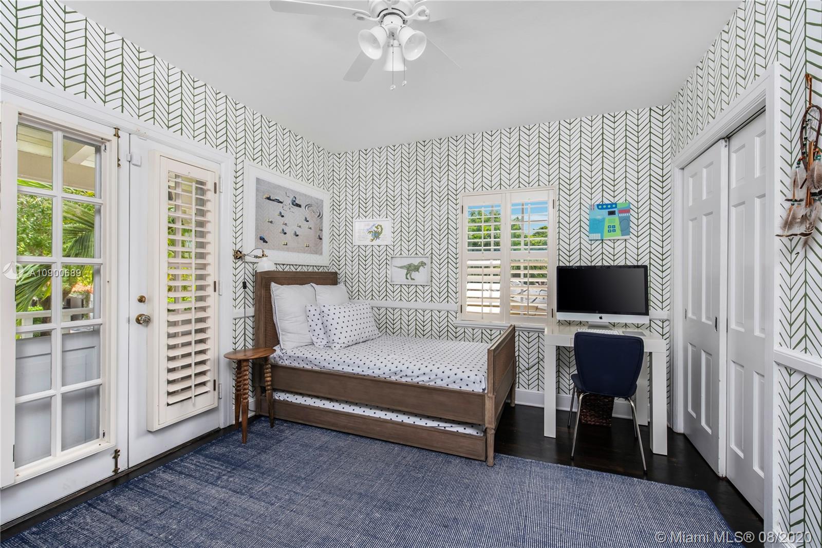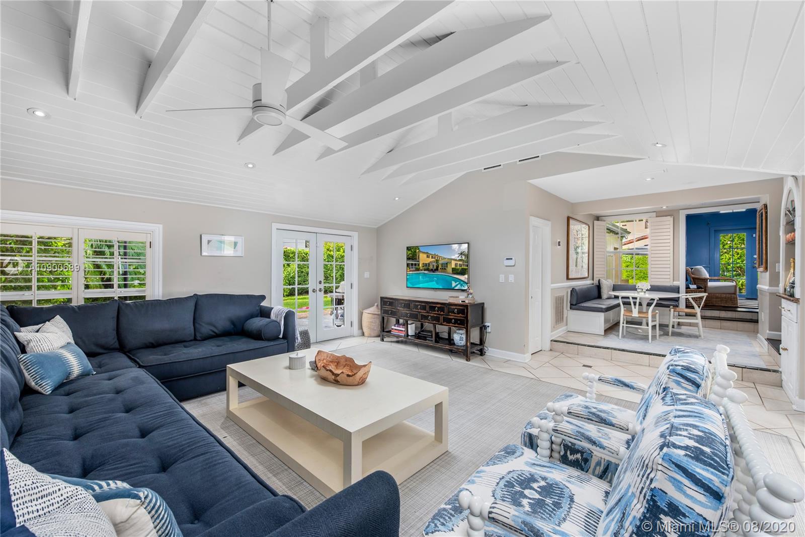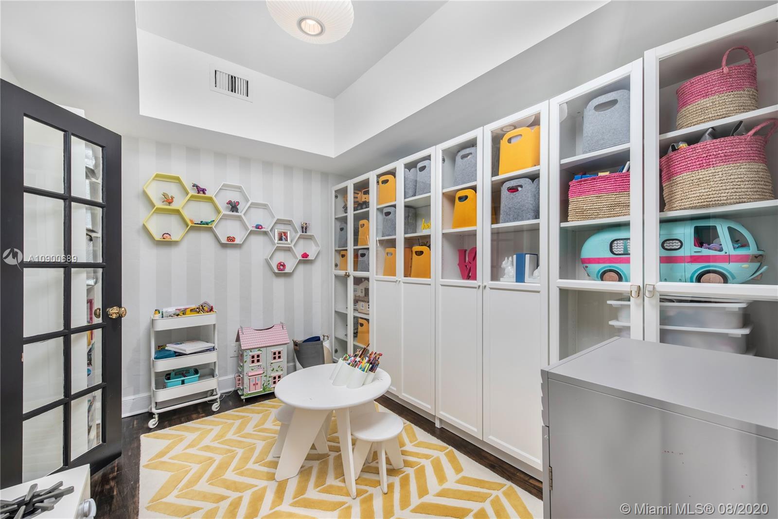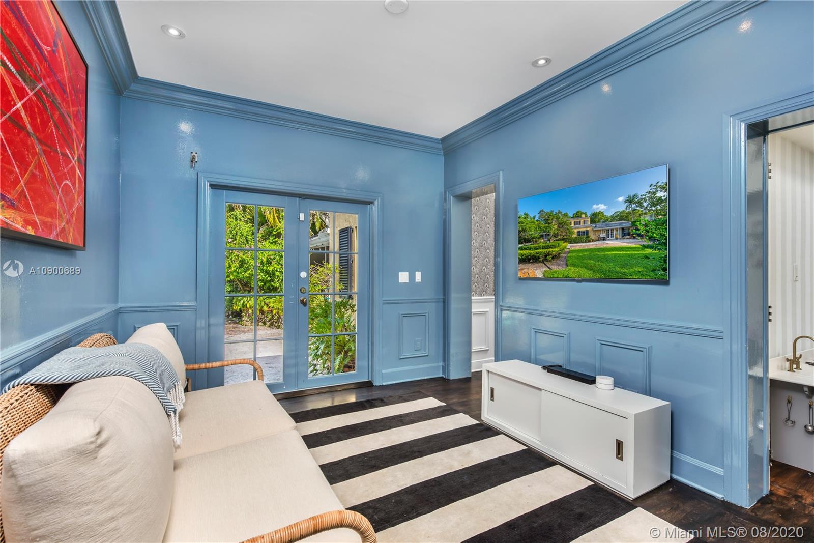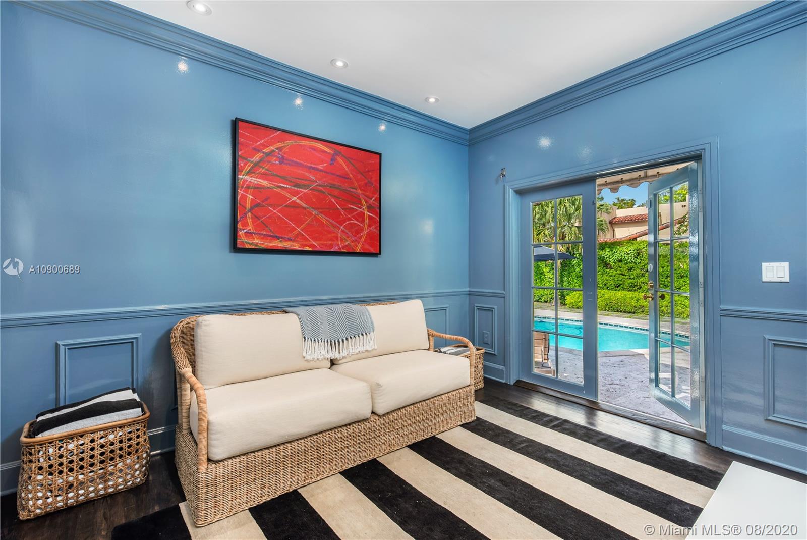 This gracious two-story home in heart of Coral Gables is right out of the pages of Elle Décor! Featuring a grand living room with fireplace, dining room swathed in grasscloth, lovely screened-in porch, dedicated playroom, cheery blue-lacquered den, kitchen w/Thermador & Subzero appliances, eat-in breakfast area & oversized family room, the impeccably designed spaces offer plenty of room for both formal entertaining & casual family time. Master suite + 2 bedrooms & hall bath upstairs; additional 1/1 downstairs w/private entrance is ideal as guest room/office. The beautifully landscaped lot features a spacious backyard, patio, pool house & free-form pool. Impact glass throughout, 2 car garage & incredible location on a tree-lined street near the Biltmore Hotel complete this special property.