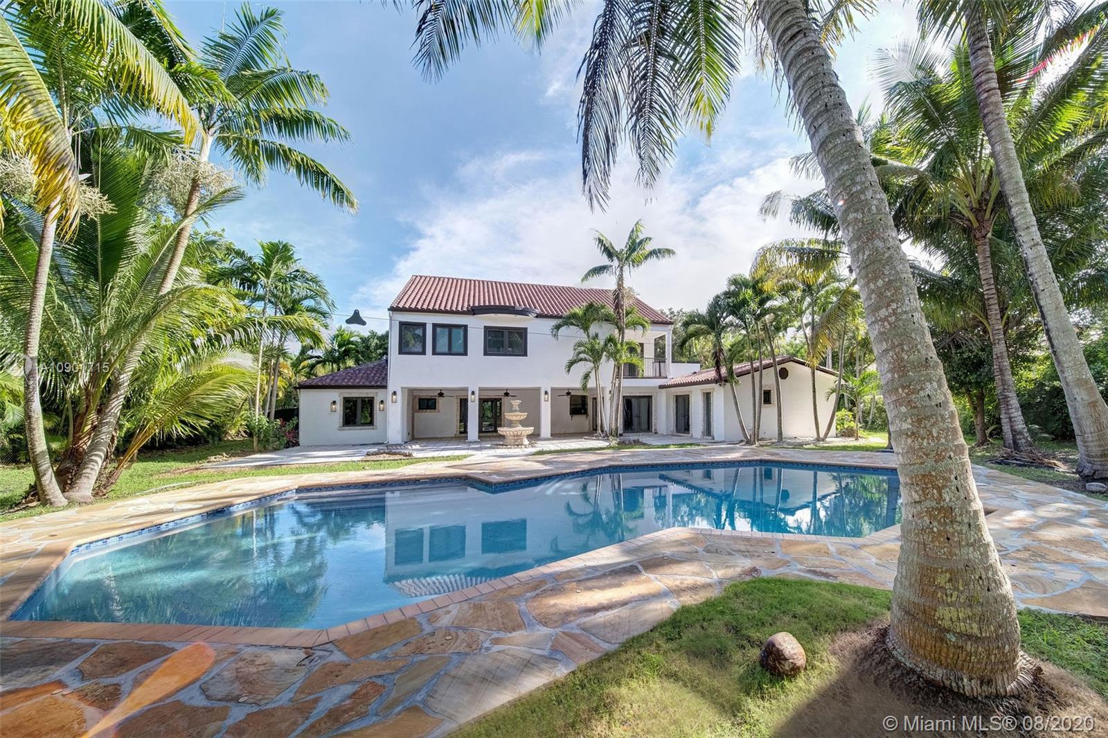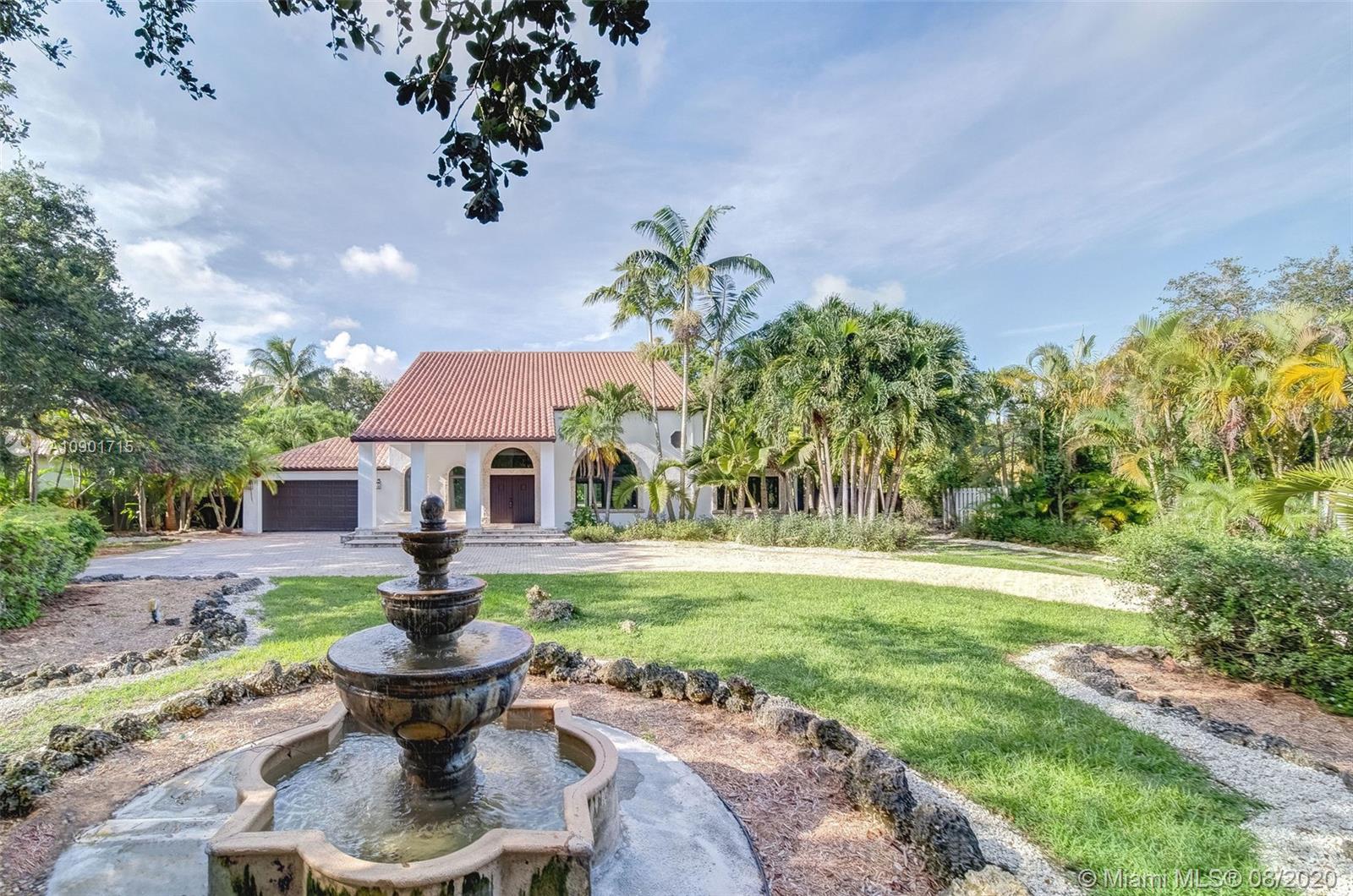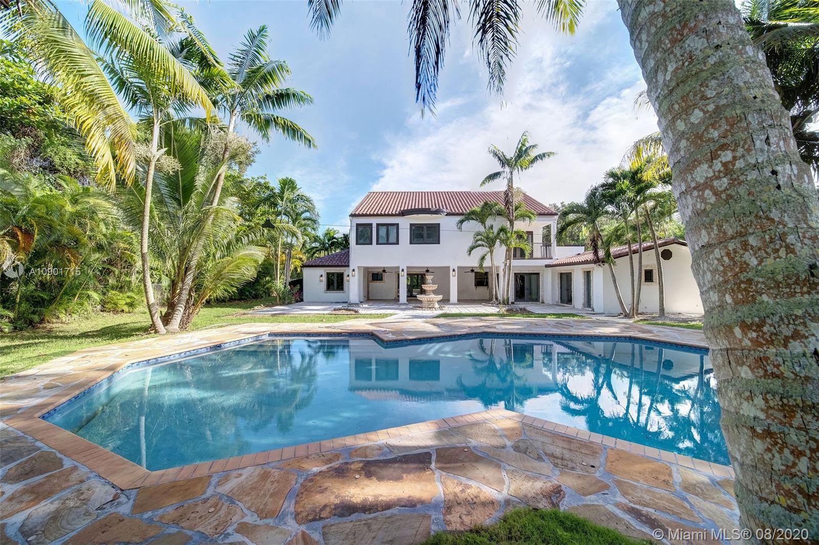 Prepare to fall in love with this absolutely spectacular 5-bed, 5.1-bath Spanish Colonial nestled in a lushly landscaped 0.93 acre private setting. This home features a dramatic two-story living area with soaring vaulted ceilings; a formal dining area; crisp white kitchen; cozy family room that opens onto the rear patio overlooking the pool; 4 main floor bedrooms; and an spacious master with loft overlooking the main living area, a luxurious en-suite bath, walk in closets, and a private balcony. Incredible location in the heart of Pinecrest close to shopping, dining and entertainment.