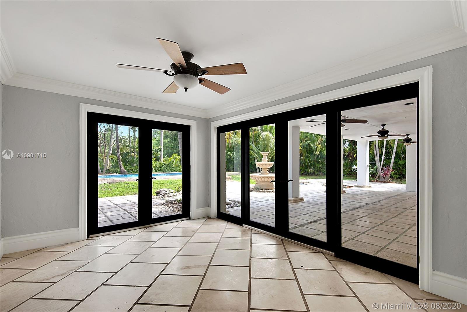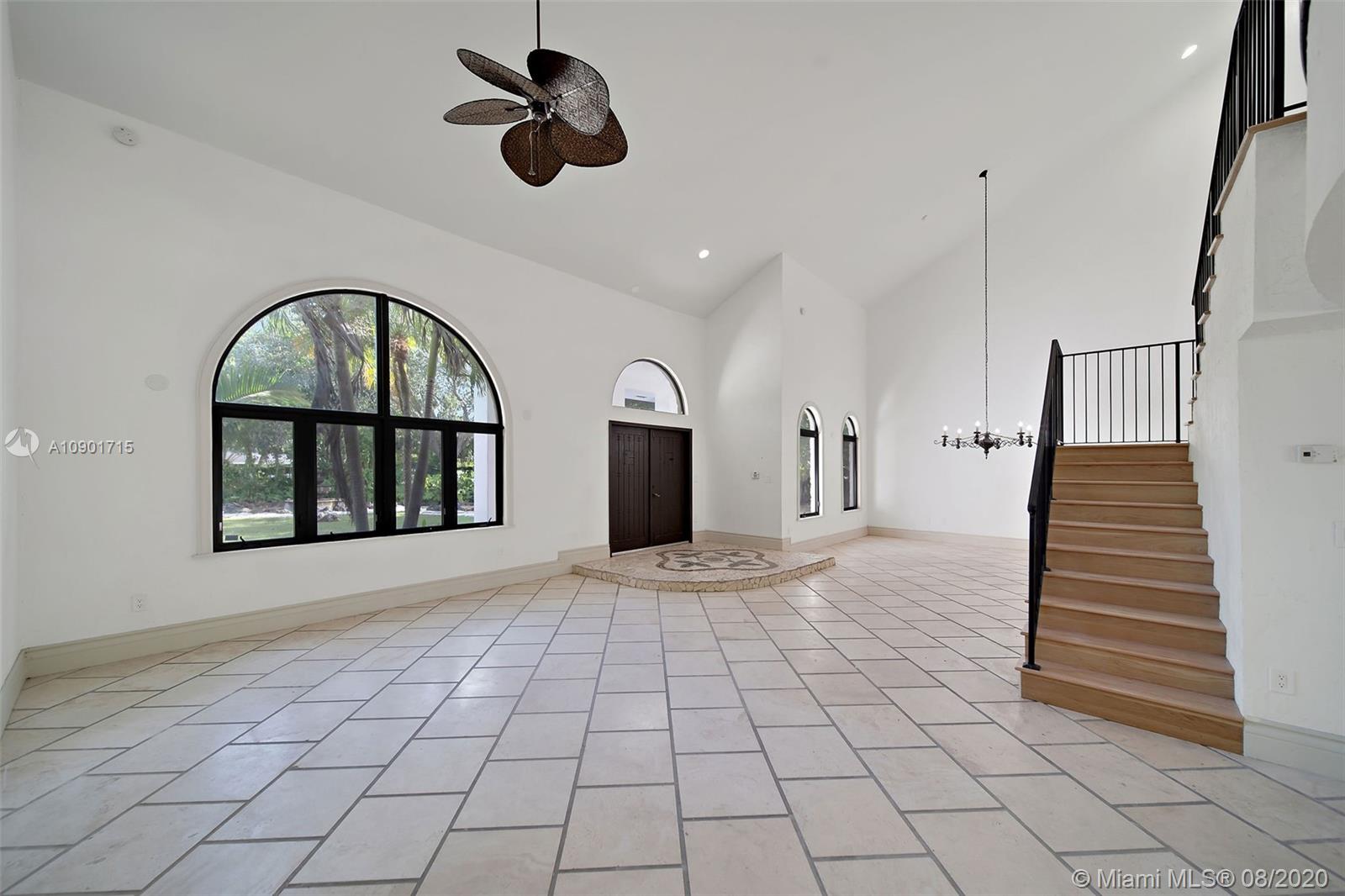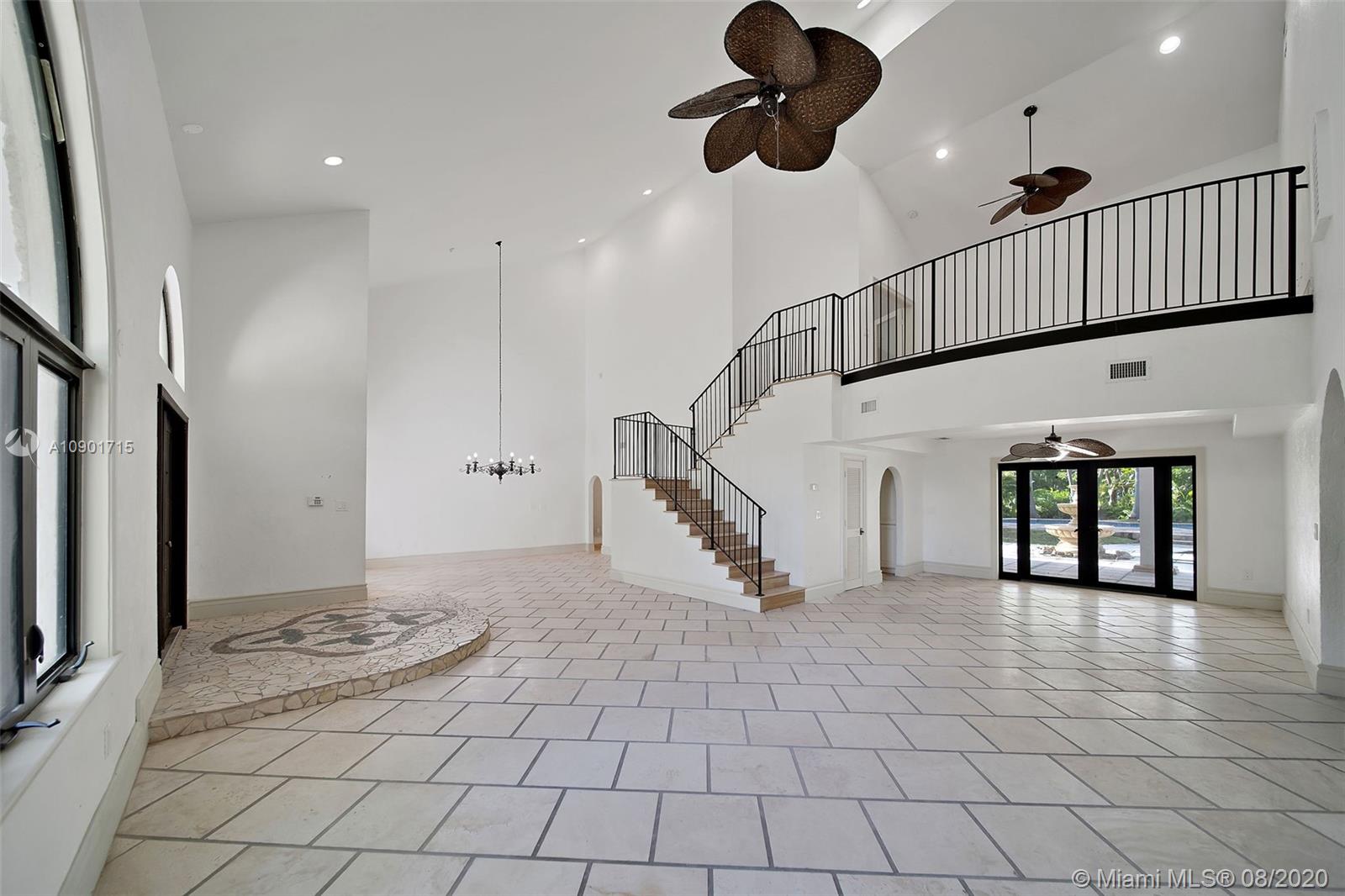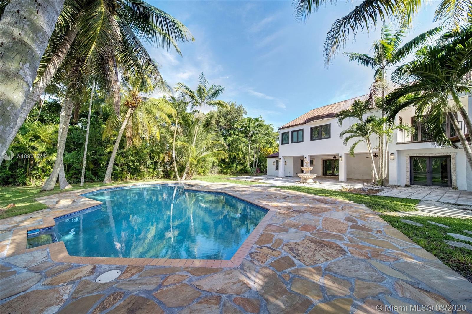 Prepare to fall in love with this absolutely spectacular 5-bed, 5.1-bath Spanish Colonial nestled in a lushly landscaped 0.93 acre private setting. This home features a dramatic two-story living area with soaring vaulted ceilings; a formal dining area; crisp white kitchen; cozy family room that opens onto the rear patio overlooking the pool; 4 main floor bedrooms; and an spacious master with loft overlooking the main living area, a luxurious en-suite bath, walk in closets, and a private balcony. Incredible location in the heart of Pinecrest close to shopping, dining and entertainment.
