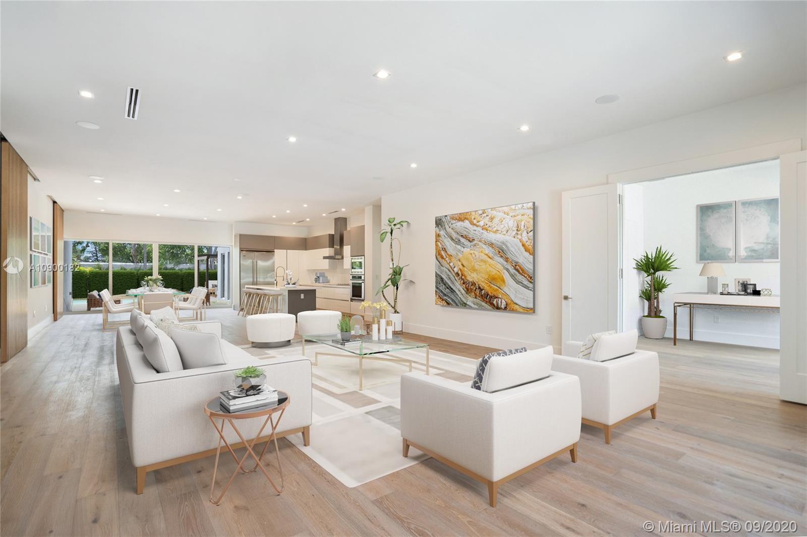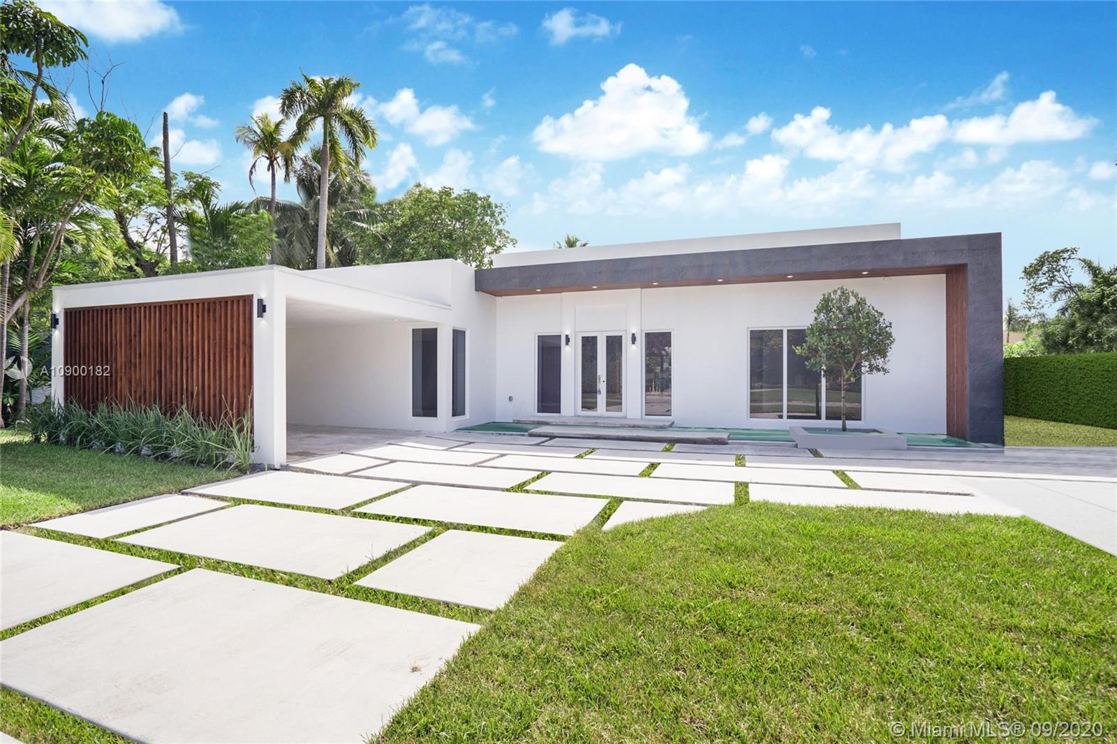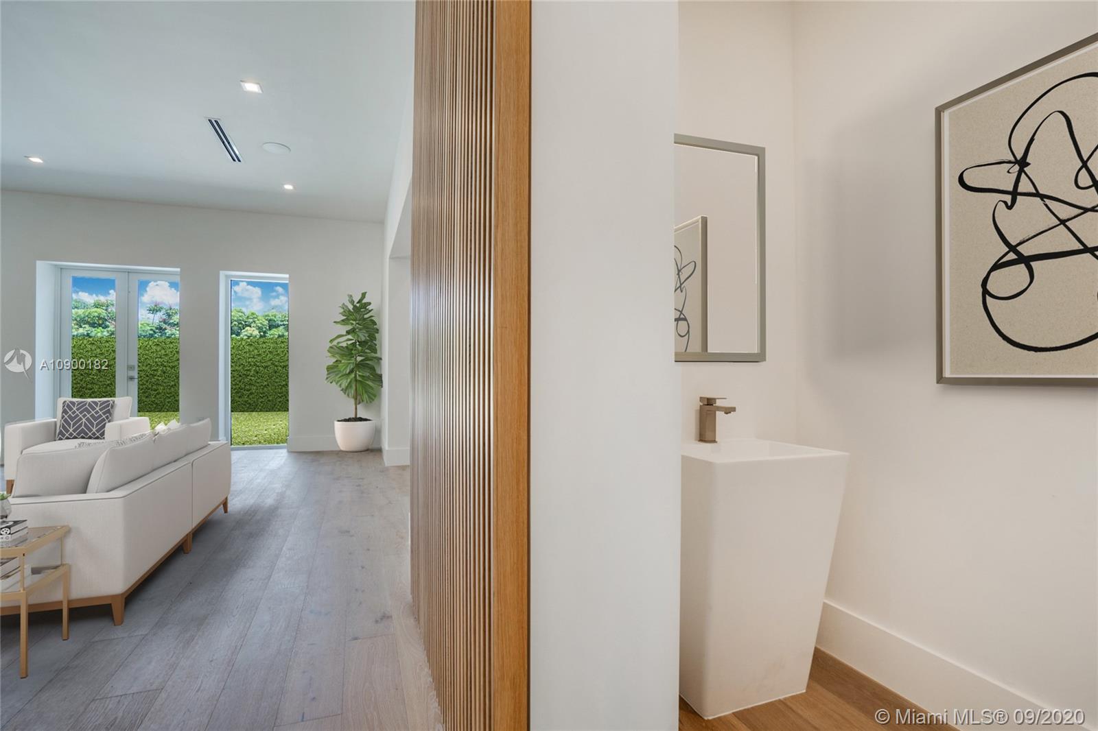 Casa Bella. This stunning new construction residence is the perfect translation of luxury tropical modernism & the latest addition in the prestigious gated community of Bay Point. A magical setting to entertain, this 5 BR/5.5BA + family room sitting on a 13,786 Sf Lot, embodies an ultra-chic open concept design that creates a unique oasis of world-class interiors & cutting-edge architecture. Over 4,750 sf interiors seamlessly blends w/the Tropical-Zen garden feat. a resort style pool gazebo & summer kitchen, and a spacious bonus room that can be used as a separate guest house, office or gym. Prewired for smart house with Crestron technology. 2 CG, Wood floors, Carrara marble bathrooms, floor to ceiling impact windows, concrete roof, Thermador & Subzero appliances, Yamini Kitchen & closets.
