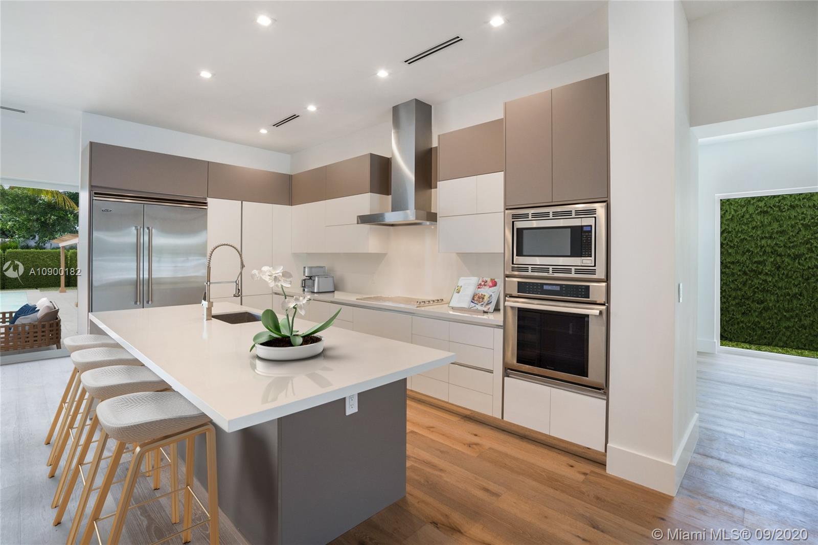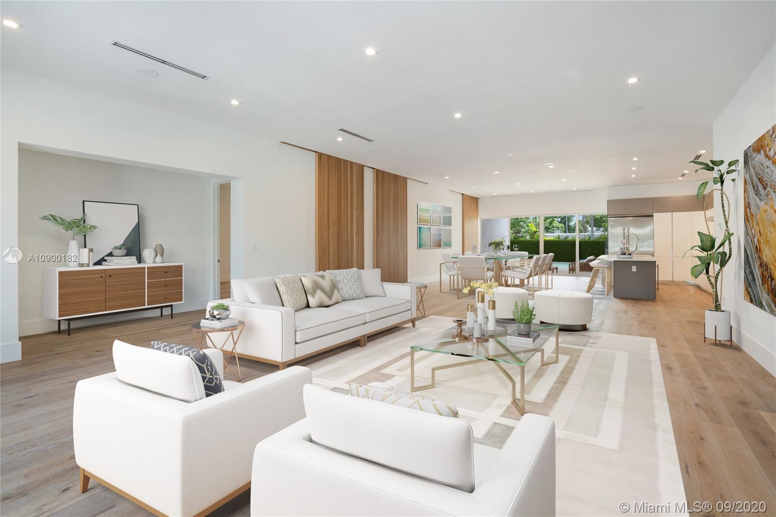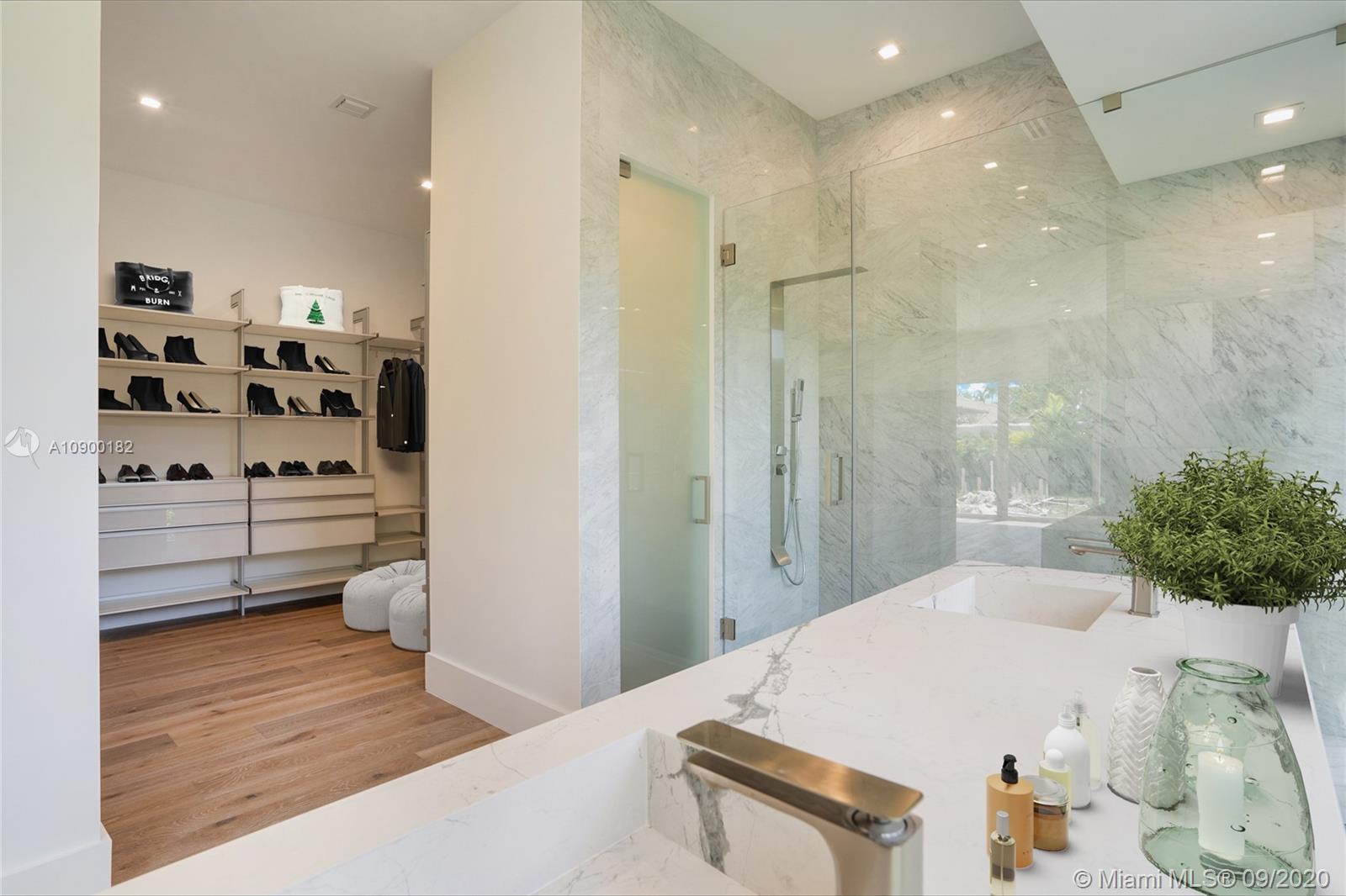 Casa Bella. This stunning new construction residence is the perfect translation of luxury tropical modernism & the latest addition in the prestigious gated community of Bay Point. A magical setting to entertain, this 5 BR/5.5BA + family room sitting on a 13,786 Sf Lot, embodies an ultra-chic open concept design that creates a unique oasis of world-class interiors & cutting-edge architecture. Over 4,750 sf interiors seamlessly blends w/the Tropical-Zen garden feat. a resort style pool gazebo & summer kitchen, and a spacious bonus room that can be used as a separate guest house, office or gym. Prewired for smart house with Crestron technology. 2 CG, Wood floors, Carrara marble bathrooms, floor to ceiling impact windows, concrete roof, Thermador & Subzero appliances, Yamini Kitchen & closets.