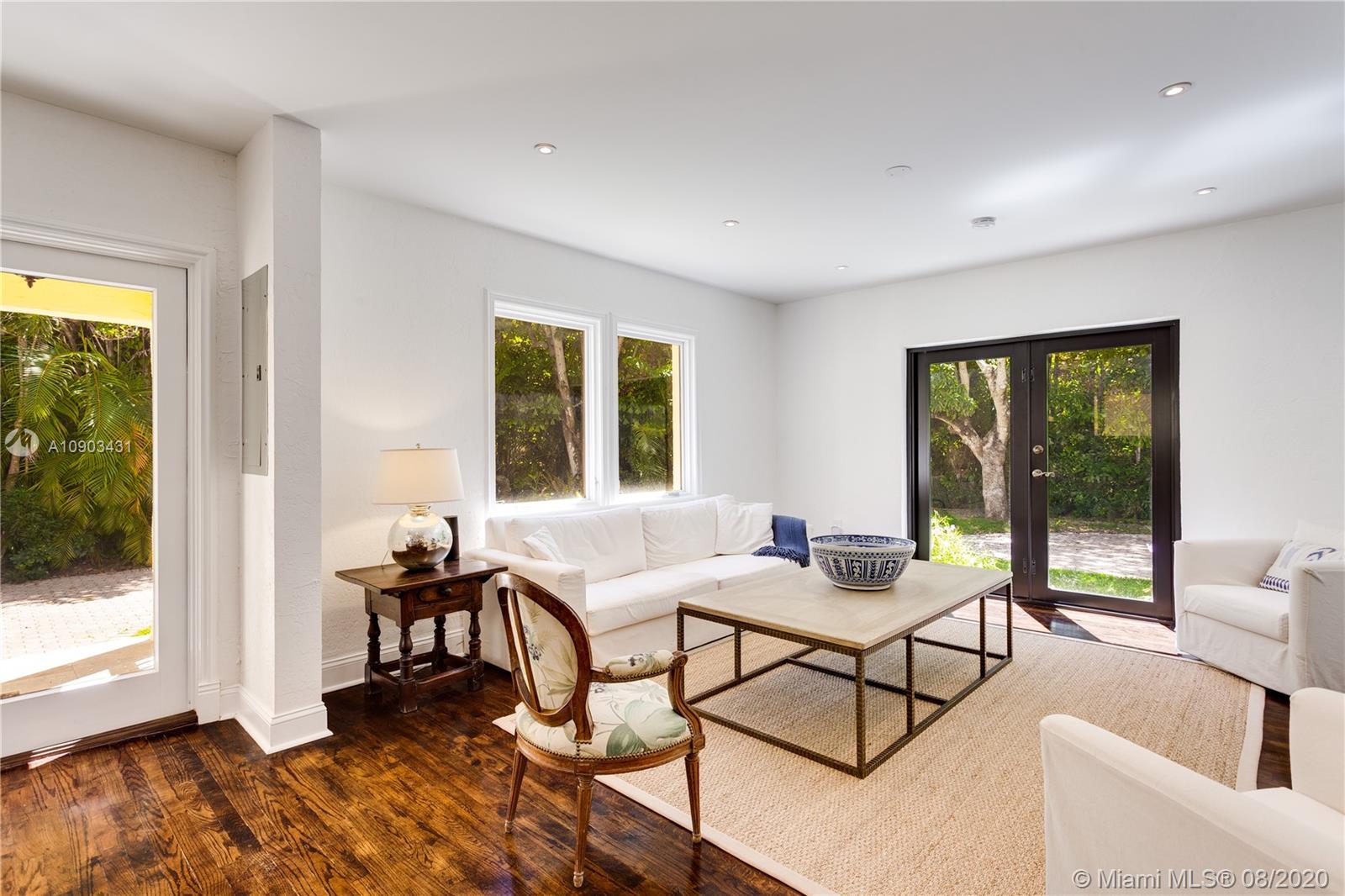 Turn-key, ultra charming Old Spanish style 2-story 2557 sq' villa designed by renowned architect H. George Fink in 1926 now in beautifully renovated condition on a 1/4 acre lot (12,500 sq ft) just down the street from the Biltmore Golf Course. Formal foyer leads to an elegant living room which opens to the dining room which is open to an immense, brand new kitchen and family room. The floor plan blends classic formality with Modern wide open spaces. Brightly lit with natural light thru large impact windows/doors. New roof (2018). Hardwood floors throughout. Fireplace. Plenty of room for a pool. Main house is 3/3 + a separate 1/1 guest house + a garage. David Fairchild Elementary School District. No thru traffic street. Walk to Biltmore Hotel & Golf Course and the Red-Bird Shopping Plaza.