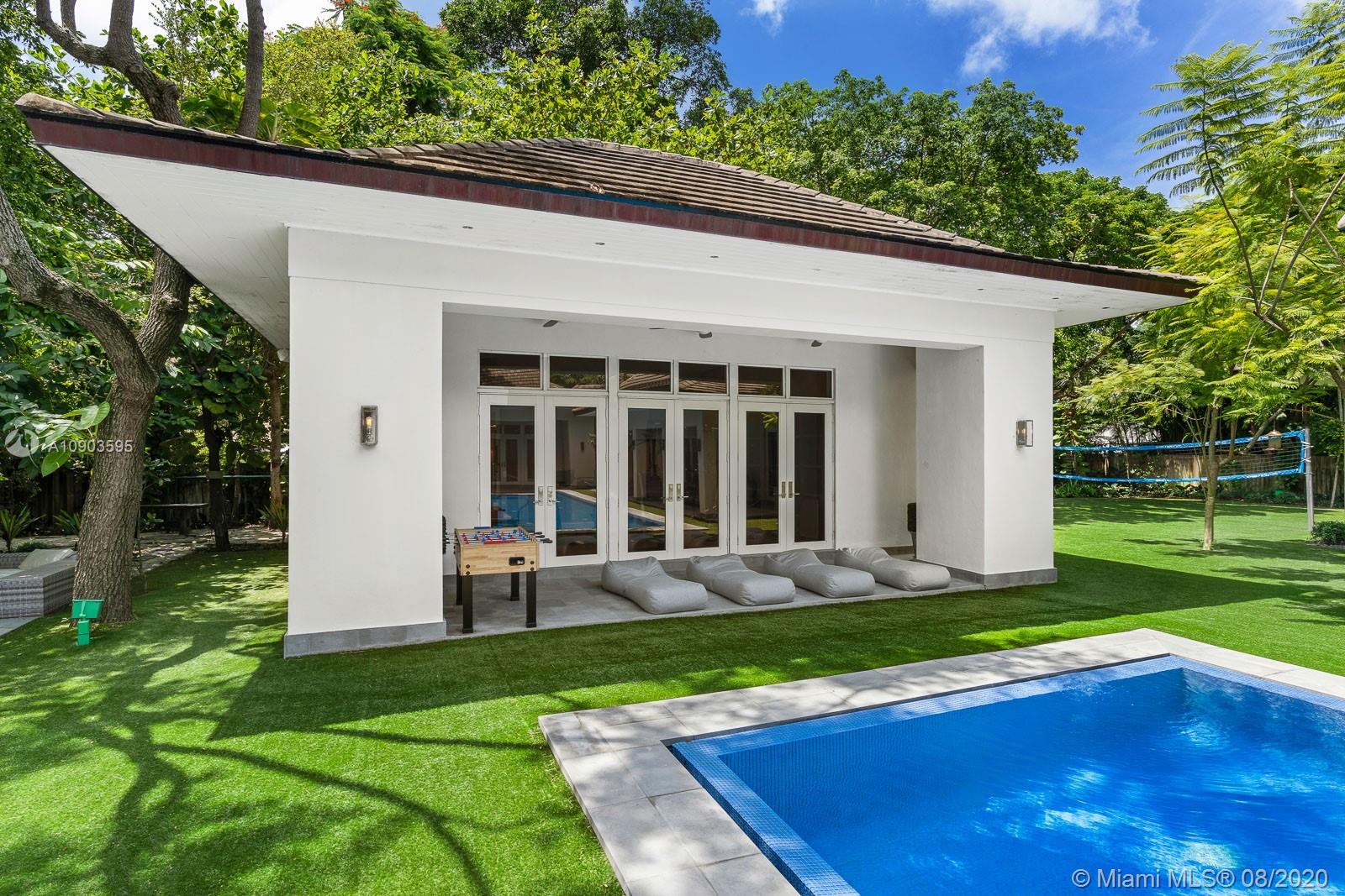 Walled & gated impeccable 1-story home offering 9,323 SF of interior living ideally situated on 1.1 acres tucked away in the highly-sought-after South Coconut Grove neighborhood of Miami. Custom built in 2016 by the current owner with no expense spared, this home features an Elan Smart Home Automation System, whole home generator, impact windows, wood floors, security cameras & custom lighting. This home offers 12' ceilings, 6 beds, 7.5 baths, including 2 master suites with a private living room & office, formal dining room, great room, living room & Poliform Chef's kitchen with gas cooking, Miele/Wolf/Sub-Zero appliances & breakfast room. The outdoor entertainment space boasts an infinity pool, Jacuzzi, volleyball court, covered dining terrace, guest house serving as a gym & 4-car garage.
