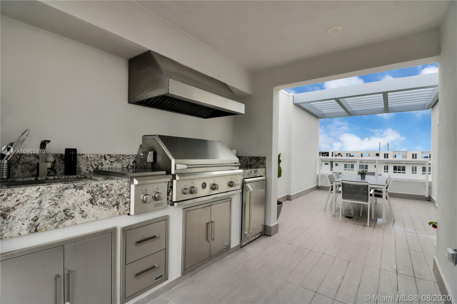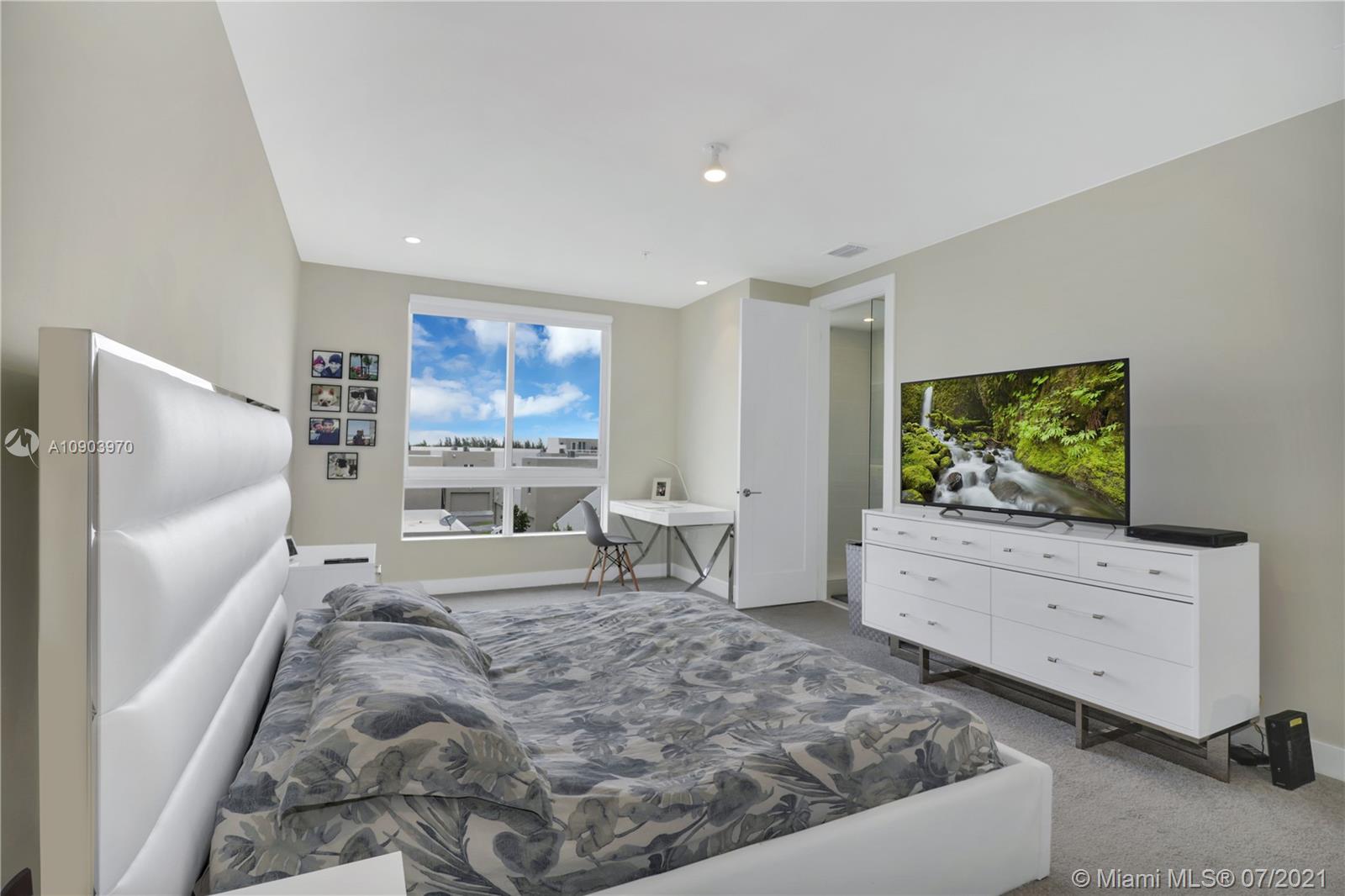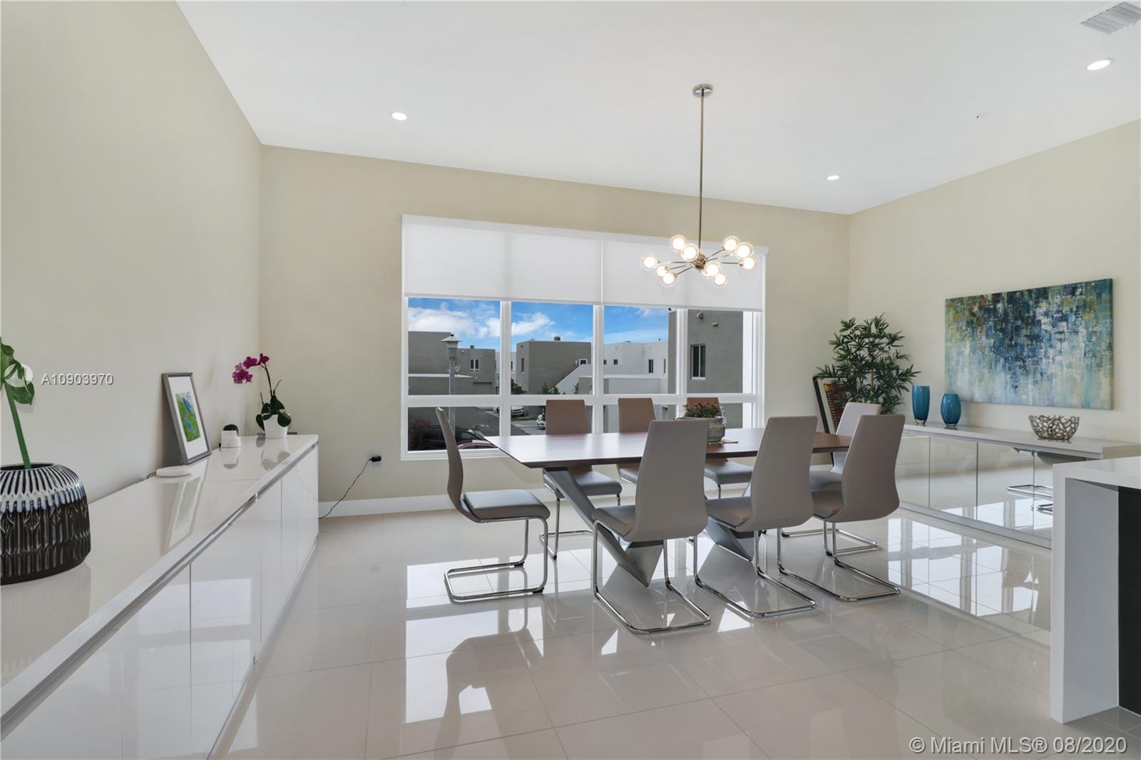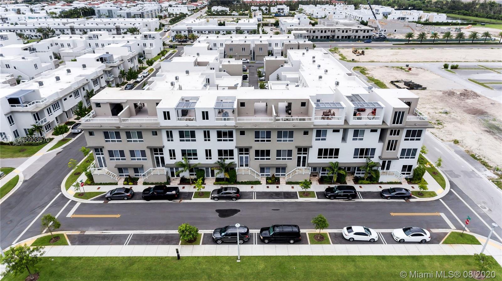 3 bedroom 3 full bathrooms, 2 half baths three-story townhouse with ROOF-TOP TERRACE summer kitchen, and ELEVATOR. 1 full bedroom and bathroom on first floor! Spacious two car garage. Prime location in landmark community, located across the street from beautiful green linear Park. Ample parking for all your guests. This property is immaculately maintained and decorated and features top-of-the-line kitchen appliances including wall oven, wine cooler, quartz countertops, large porcelain tiles, wood stairs, large impact Windows and doors, Clubhouse features rooftop lounge, open air amphitheater, resort style swimming pool, splash pad, tennis courts, and top of the line fitness center.