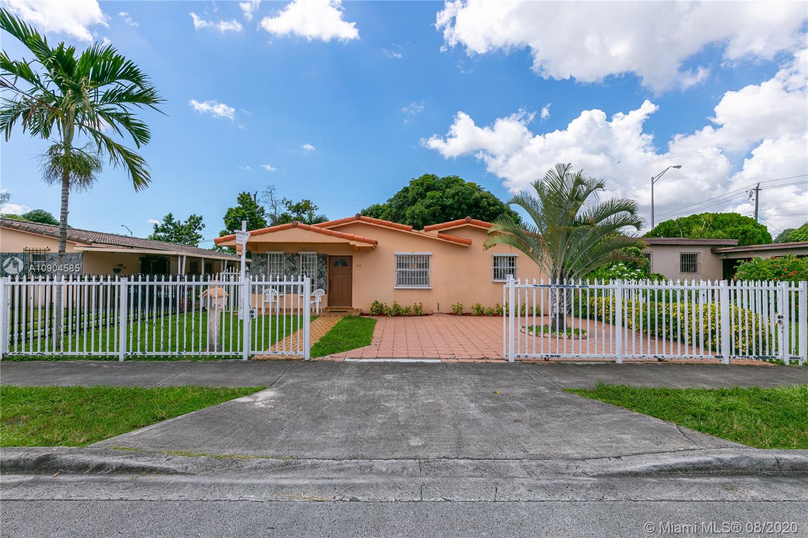 This single family one-story home is on a 5,600 sq ft lot in a quiet, residential street in the Hialeah Park neighborhood. Conveniently located close to major highways, main roads, Miami International Airport, and Miami Springs restaurants and shops. This property is in move-in condition and it is full of potential. From the kitchen to living space there is plenty of room for family and friends. No HOA. Gated, circular driveway, en-suite Master bathroom, laundry room, GE Water Heater, Rheem AC. Enjoy the shaded backyard or outdoor space in the back with wood fence for privacy. Hurricane shutters. Easy to show, schedule your visit today.