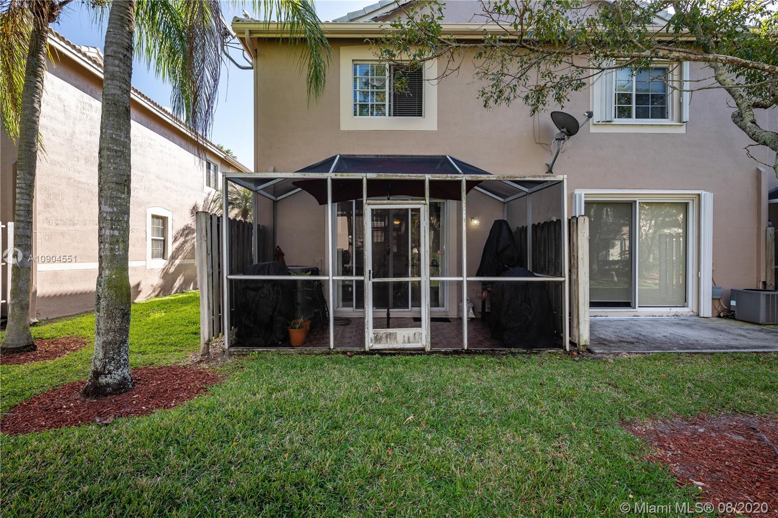 Great opportunity to own a large and spacious townhouse in the wonderful neighborhood of San Messina in Weston! This unit has a remodeled kitchen with granite counters, Stainless Steel appliances, and a decorative backsplash. First floor has tile floors with crown molding and a screened in patio with decorative tile. Leading up to the second floor there are elegant wood vinyl floors on the stairway and throughout the second floor. Upstairs bathrooms have the same theme as the kitchen with a marble looking tile on the floors and on the shower walls. San Messina has a community pool and playground for children to play in. Paired with a low HOA paid quaterly, this is one of the best turnkey deals in Weston. Schedule a showing today to come see this beautiful townhouse.