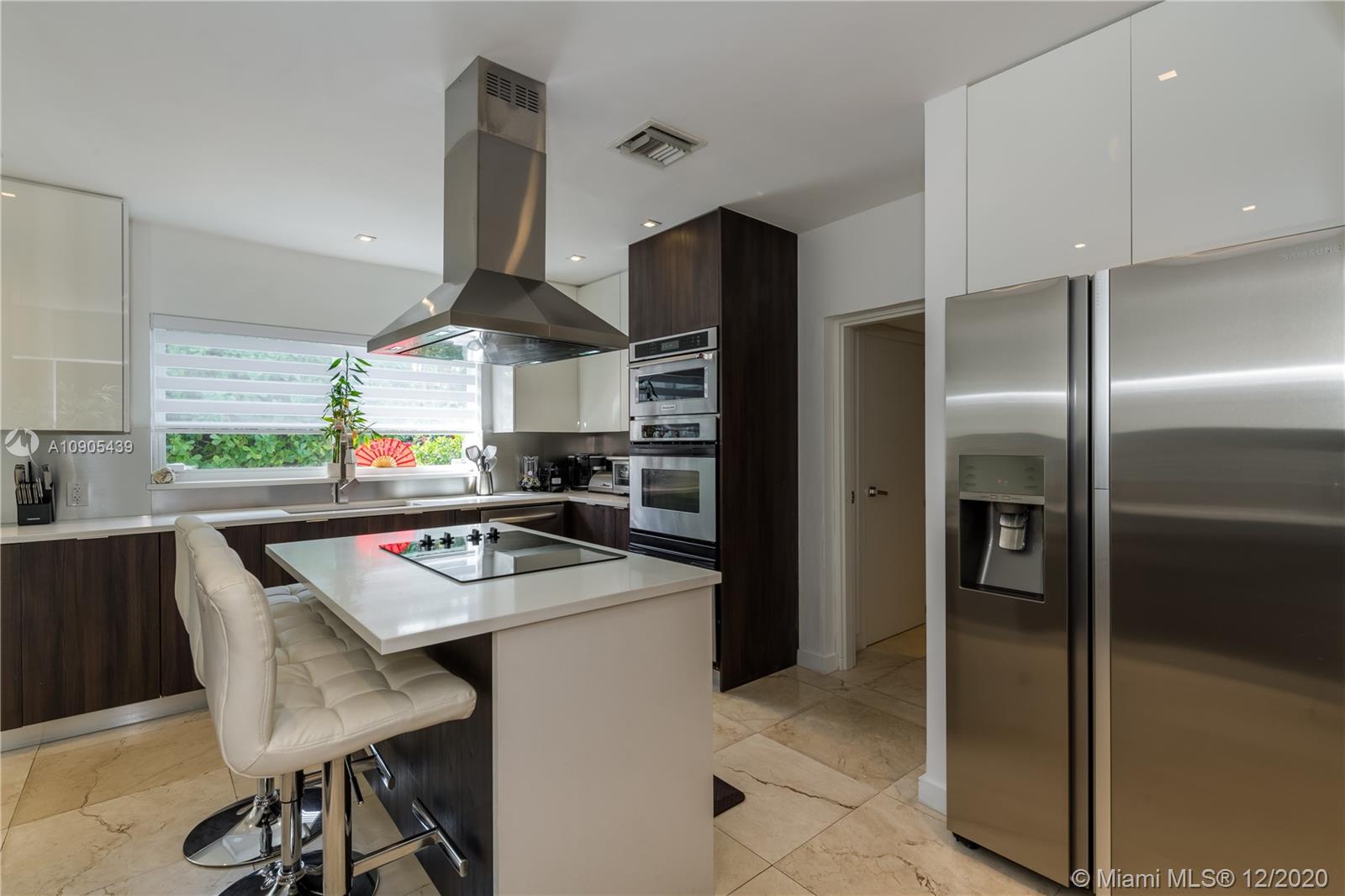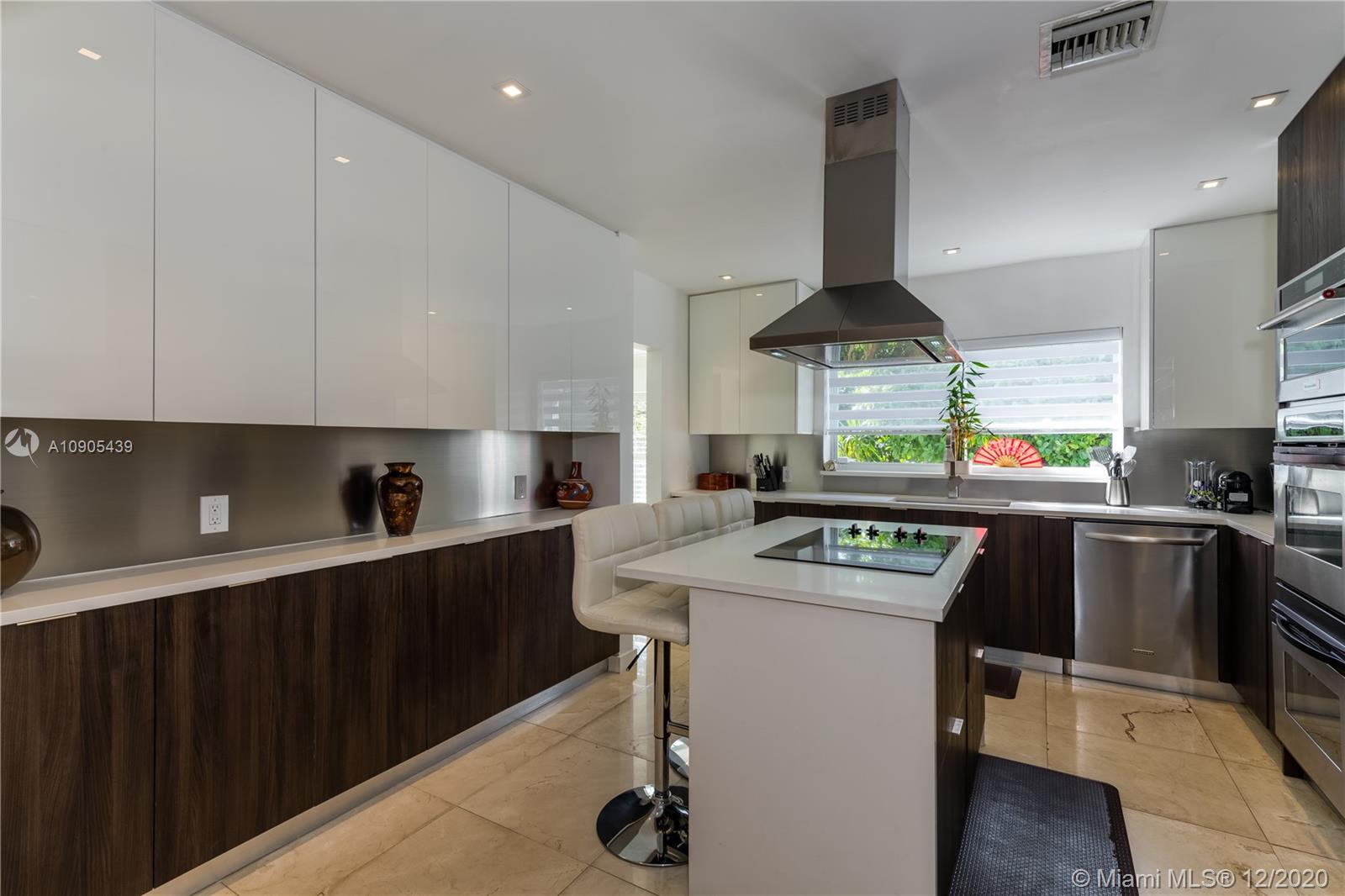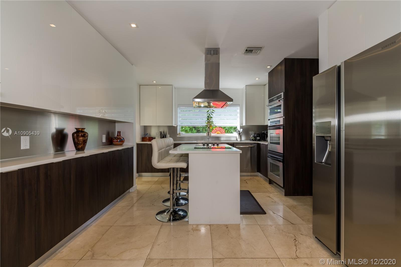 Stunning, totally remodeled 4 bedroom, 3 bath home on a quiet cul-de-sac in Miami Shores Village. This is one of the most desired neighborhoods east of Biscayne Blvd. The house is 3 blocks away from the bay. The area offers a community center with family activities and golf course. Features include an eat-in kitchen with natural white quartz counter tops, island cook top with range/hood, stainless steel appliances, new water heater, dishwasher, refrigerator, microwave, stacked ovens, new washer/dryer. Open floor plan with marble tiles and natural stone. The family room overlooks a picturesque landscaped backyard, with salted pool and artificial turf. Metal roof (2017), security cameras and smart lighting makes this a one of a kind find. Close to Aventura Mall, Design District, and Wynwood.