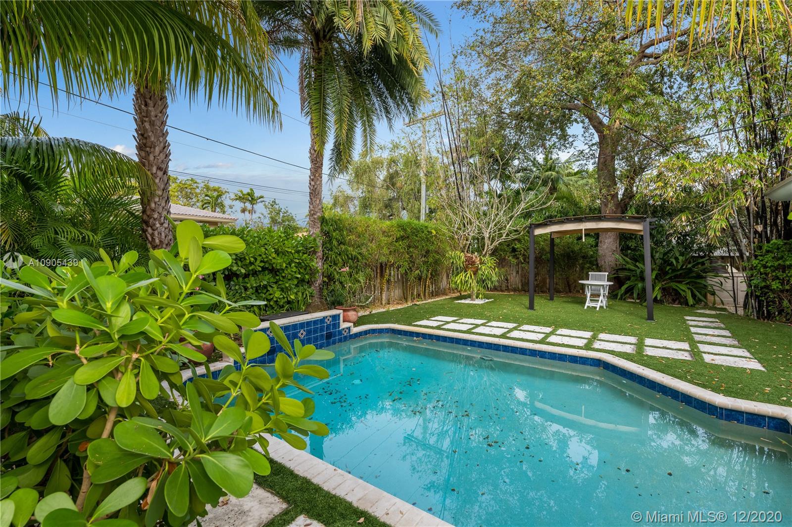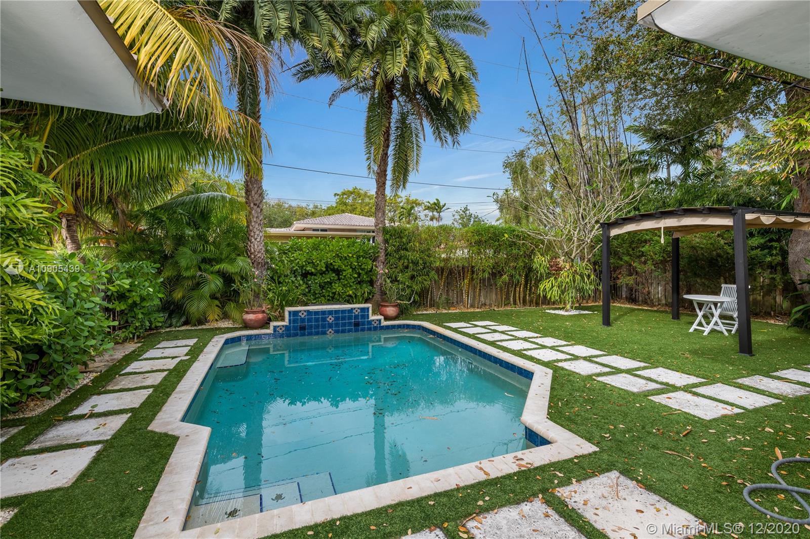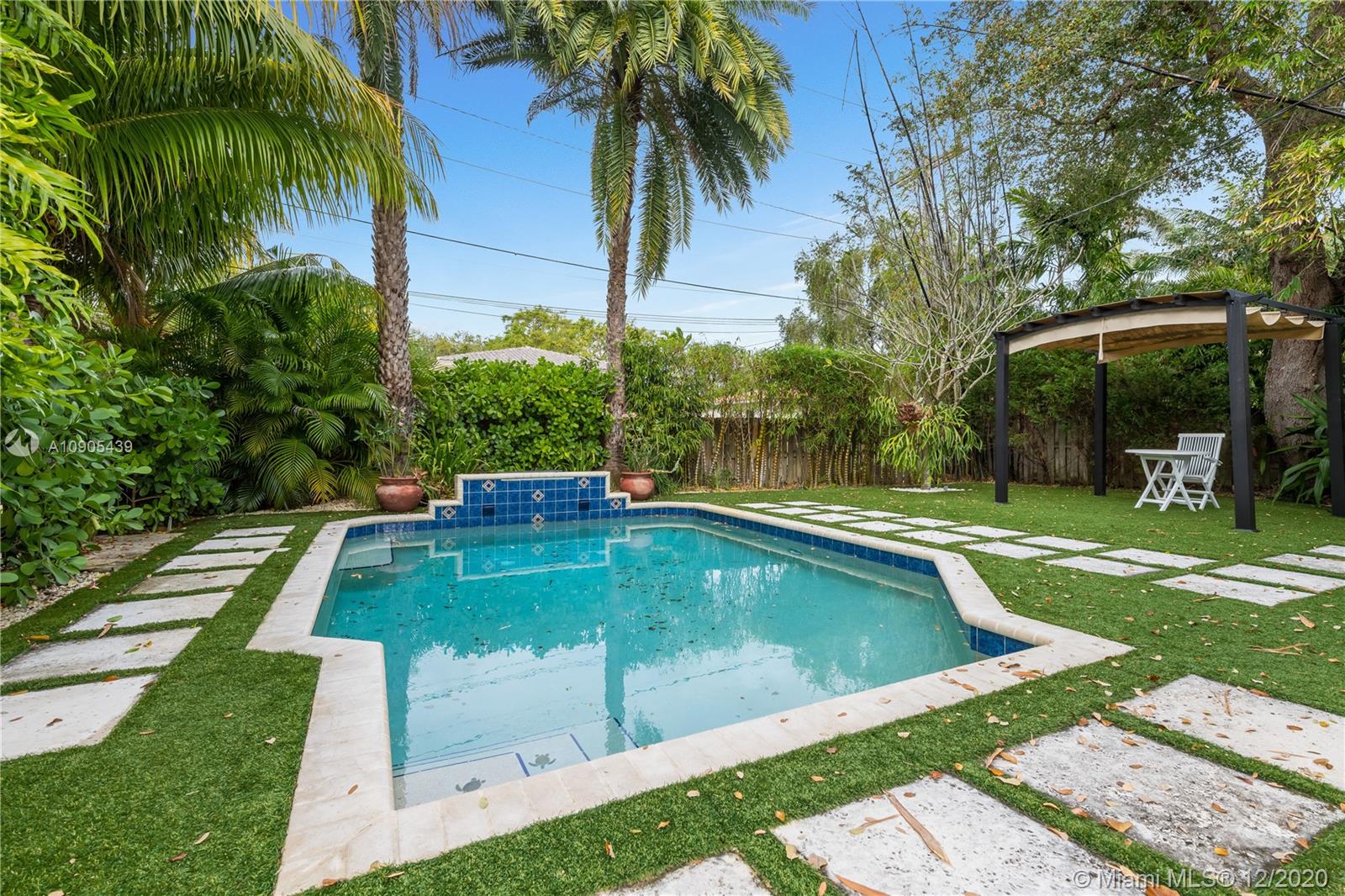 Stunning, totally remodeled 4 bedroom, 3 bath home on a quiet cul-de-sac in Miami Shores Village. This is one of the most desired neighborhoods east of Biscayne Blvd. The house is 3 blocks away from the bay. The area offers a community center with family activities and golf course. Features include an eat-in kitchen with natural white quartz counter tops, island cook top with range/hood, stainless steel appliances, new water heater, dishwasher, refrigerator, microwave, stacked ovens, new washer/dryer. Open floor plan with marble tiles and natural stone. The family room overlooks a picturesque landscaped backyard, with salted pool and artificial turf. Metal roof (2017), security cameras and smart lighting makes this a one of a kind find. Close to Aventura Mall, Design District, and Wynwood.