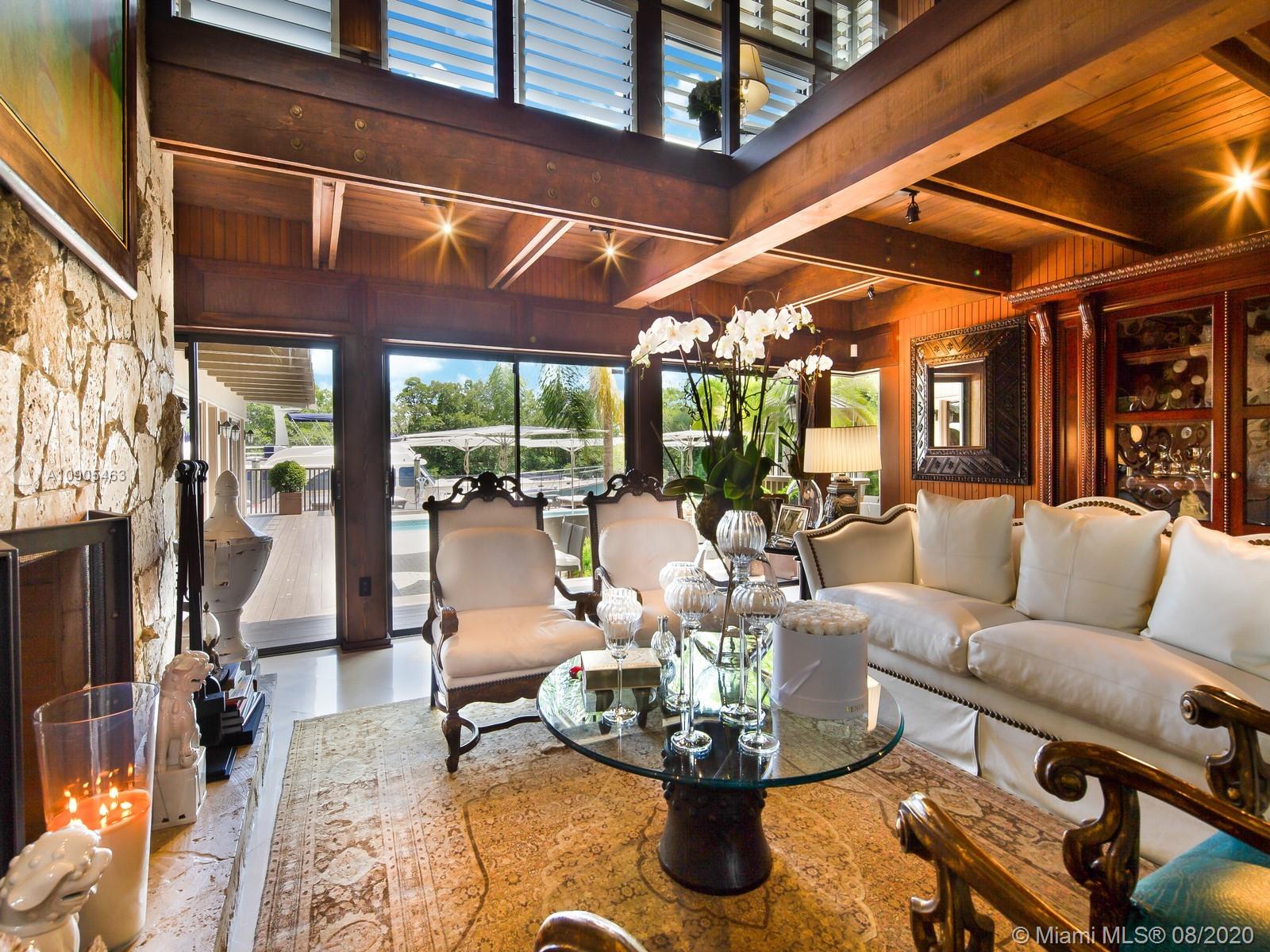 Key Biscayne waterfront in Cape Florida on Pines Canals. Refreshingly scaled for gracious living. This unique custom home designed by architect John Albert Weller features vaulted ceilings throughout, 5 bedrooms 5 full baths 1 powder bath. The understated interiors; all with water views, Gourmet kitchen with Wolfe gas stove, Miele dishwasher, Subzero refrigerator freezer, subzero wine cooler and a subzero ice maker & pantry. The exterior features lush landscaping for privacy with an open layout patio area great for entertaining with a gazebo, pool. The new recently built dock in IPE, can moor a large vessel, has a sun deck, new piles, fortified seawall, no bridges to bay the waterfrontage is 100 ft the lot is over 17,000 sq feet. This rustic home is one of a kind.