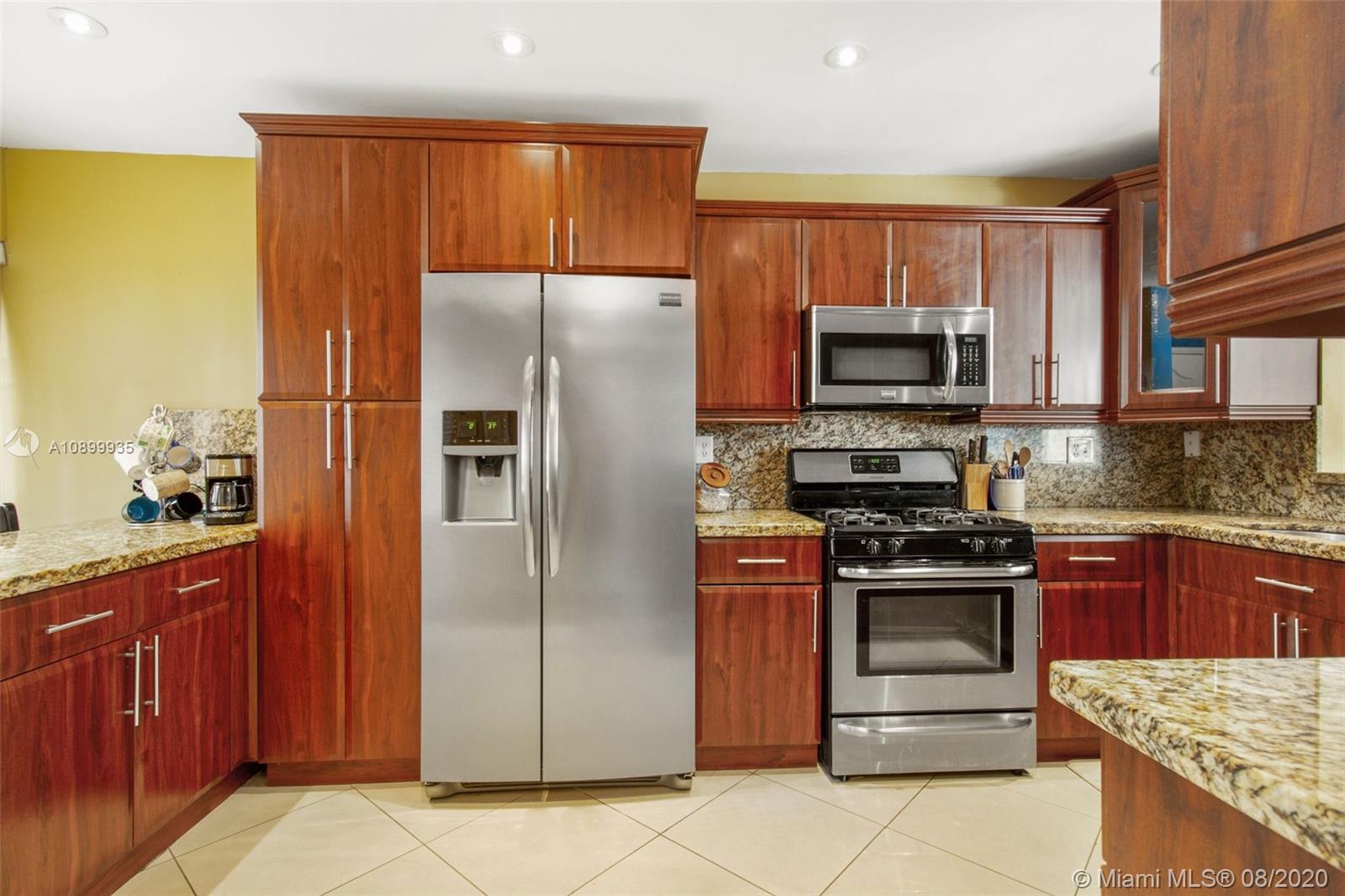 Beautiful and spacious 3 bedrooms & 2 1/2 bathrooms townhome in Doral Place. A sought after gated community inside Doral Park. Located adjacent to the Silver Fox course at Doral International Golf Club, this tastefully updated home features a large eat-in Kitchen featuring wood cabinets, stainless steel appliances, granite counter tops. Tile floors downstairs and laminate floors upstairs. Large master bedroom with en suite, extended closet and gorgeous spa style bathroom. Large private patio. HOA fee includes access to the Doral Park Country Club featuring resort style amenities including; USTA tennis courts and tennis stadium, resort style pool, fitness center, club house with restaurant, children's playground & splash park, basketball, beach volleyball, and near many A+ Rated Schools.