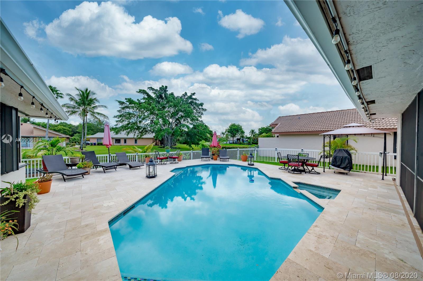 Magnificent, totally remodeled 4 BR + den/office, Split plan, 2.5 bath single story, located in Pine Ridge. This meticulously maintained home has New impact front door, as well as some impact windows & addl. doors. The rest, accordion shutters. New flat roof over huge screened back patio. Pool has new Marcite w/shimmering Mermaid tile, New pump, & New Travertine patio. New back fencing/gorgeous water view. Perfect for entertaining. New wood floors in BR's/office, the rest tile. New Tankless Water heater, New A/C. No popcorn ceiling. Gorgeous remodeled Kitchen with quartz countertops, SS appliances, center island, Huge pantry & breakfast bar. Designer baths with free standing tub in Master & both showers seamless glass. Barn door into Master Bath. Custom lighting thru-out. Move in Ready!