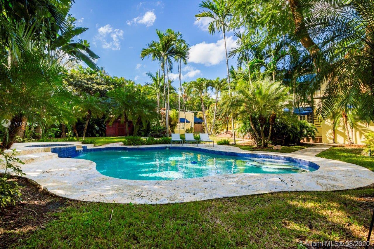 Resort-style living on one of the best elevated streets in gated Morningside. Mediterranean oasis w/ detached guesthouse on a lushly landscaped 19,150 sq ft double lot w/ 2 separate addresses & folios. Wrought iron portico, impact windows, 2 butler pantries w/wine cooler & eat-in gourmet kitchen opening to terrace, & authentic details throughout. Amazing huge 2nd floor master suite w/sitting area, high ceilings & giant master closet + bath. 2 beds down w/sunny Florida room, living, separate dining. Pool, garden, jacuzzi & fountain make for a true entertainer's dream. Detached 1 bd/1 ba guesthouse w/kitchen & covered porch. Fantastic location near Cushman School, Morningside park, tennis, boat ramp, playground & dog park. No rental restrictions! Short-term allowed.