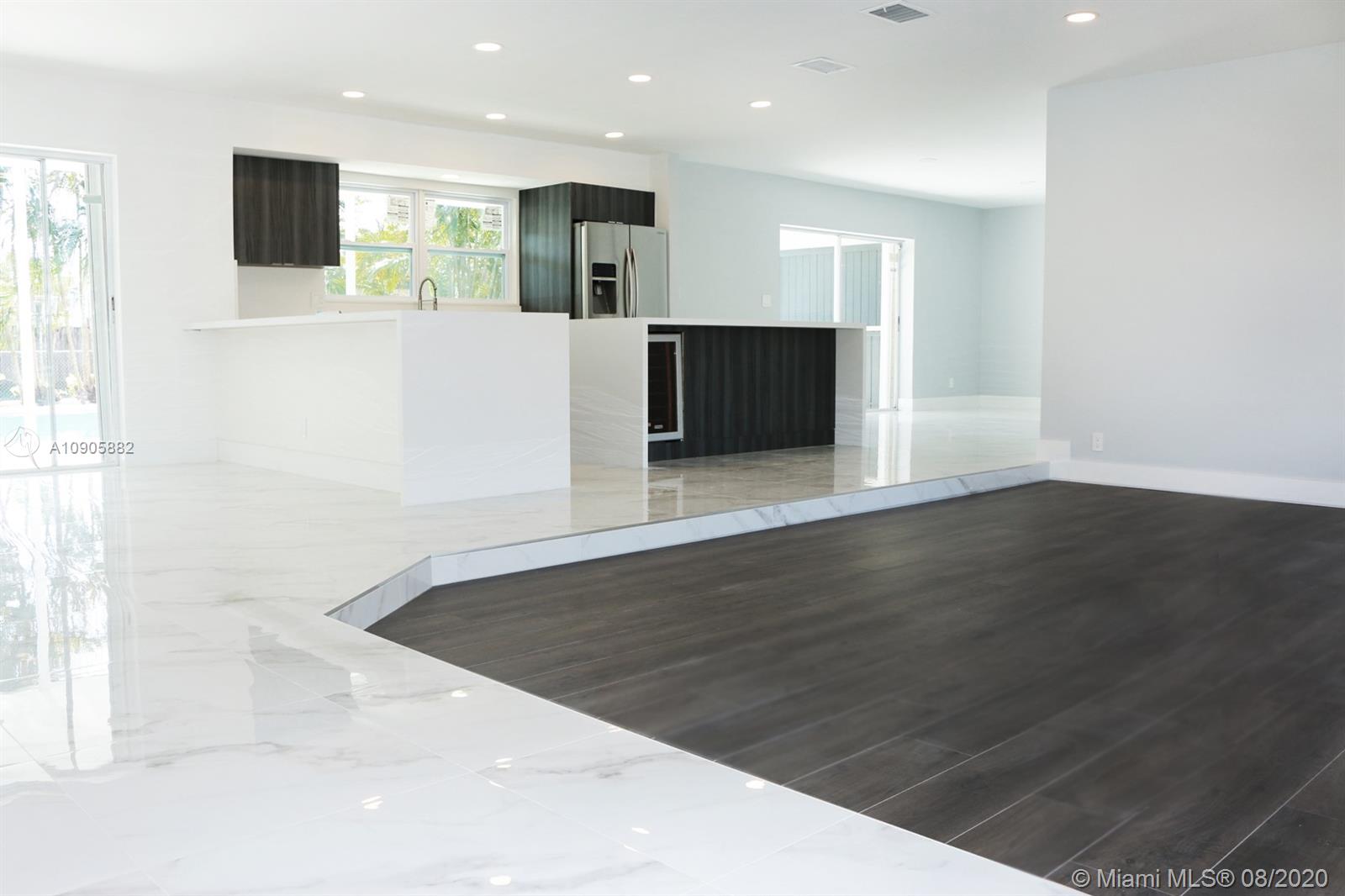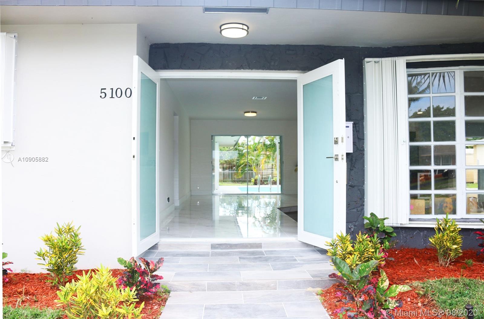 Amazing high quality complete new 4bed/3bath with double car garage. Open-style kitchen with real Spanish high quality wood custom Cabinetry and center Island on Quartz counter top with falls Stand and brand new stainless steel appliances. Gorgeous. Modern 24¨x 24¨ Porcelain Carrara Style combined with wood. Stunning master Bathroom with 24¨x 12¨ porcelain walls and double shower. Modern wood cabinet with quartz and Italian faucets, complete new walking closets in master bedroom. Large backyard and pool. Totally hurricane proof, driveway and laundry bonus.Private fourth room with bathroom and kitchen to use as a play room, guest room or rent income. All new electricity withLed Everything has been done with all permit that city of Hollywood required (electrical, structural, plumbing).