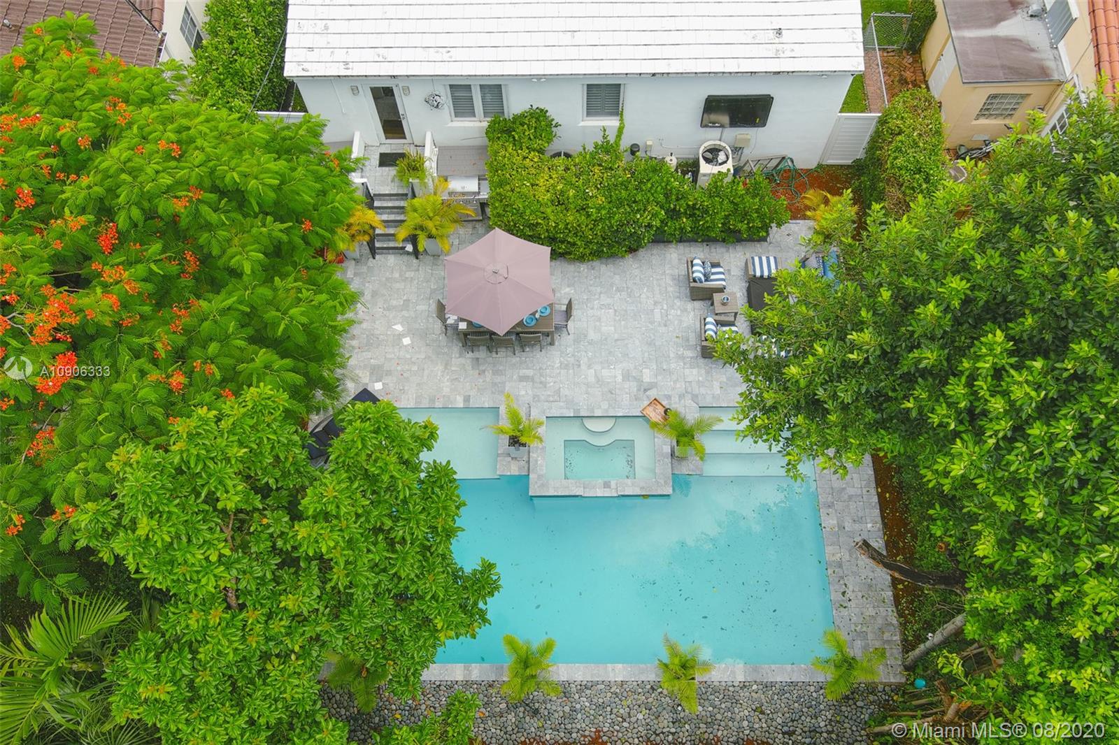 Lush and elegant tropical back yard pool oasis complementing a three bedroom two bath home from the 1940's that has been completely renovated but has kept the charm. The home boasts all the updated tech (Nest, Ring) while still featuring the original front door and hardwood floors. Heated Saltwater Pool and Spa, fire pit, mounted outdoor Smart TV to watch from the lounge chairs or while taking a swim. Living room features an original fireplace and vintage front door. Impact throughout including garage door except front door (has shutters). Everything is 5 years old or less, Roof, Plumbing, HVAC, Electrical, Kitchen, Bathrooms, Pool/Spa, plus a one car garage and NO septic! Showings by appointment and only to serious qualified Buyers.