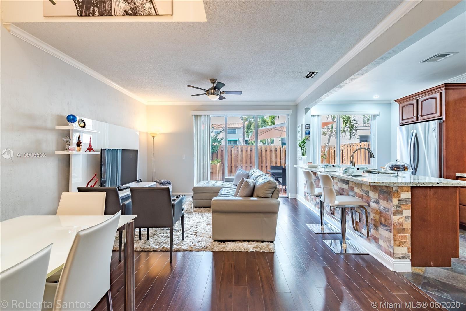 Beautiful 3/2.5 Townhome with 1 car garage converted to 4th Bedroom in a great location, walking distance to Sawgrass Mills Mall, OASIS & fine dinning restaurants, near IKEA, BB&T Center for concerts, sports events and close to major highways. The home has been updated, it has wood floors throughout the house and slate floor in the kitchen, granite countertops, stainless steel appliances, full size washer and dryer, master bedroom with walk in closet, both bathrooms with enclosed glass showers, private patio...great for the family pet, patio also has a storage unit and direct access to swimming pool. VIVINT security system with alarm/cameras capability which you can also control the AC. The garage can be easily converted back if needed.