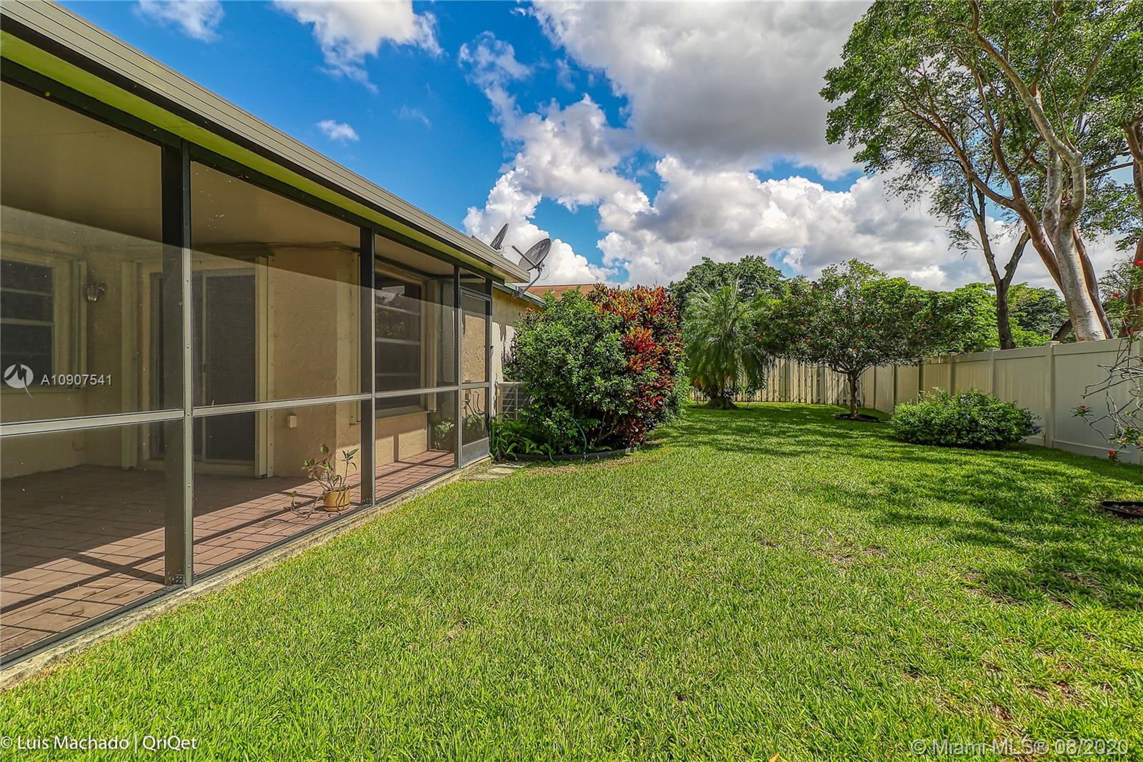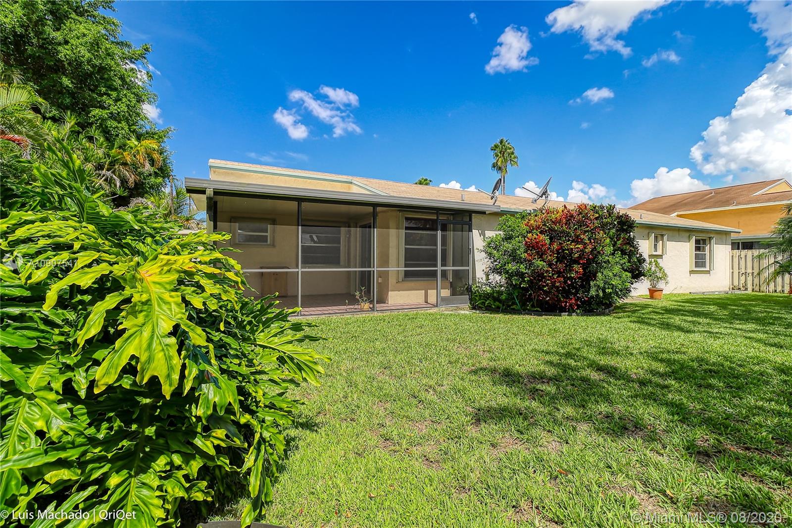 Come and see this great 3 bedroom 2 bath home. Nice newer wood laminate flooring throughout the house, master bathroom has been tastefully remodeled. Kitchen features oak wood cabinets and unique granite counter tops. Cover patio opens up to the nice a great size fully fenced yard were you can entertain and have the kids play securely. Roof was redone after Wilma. House located across from community pool.